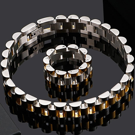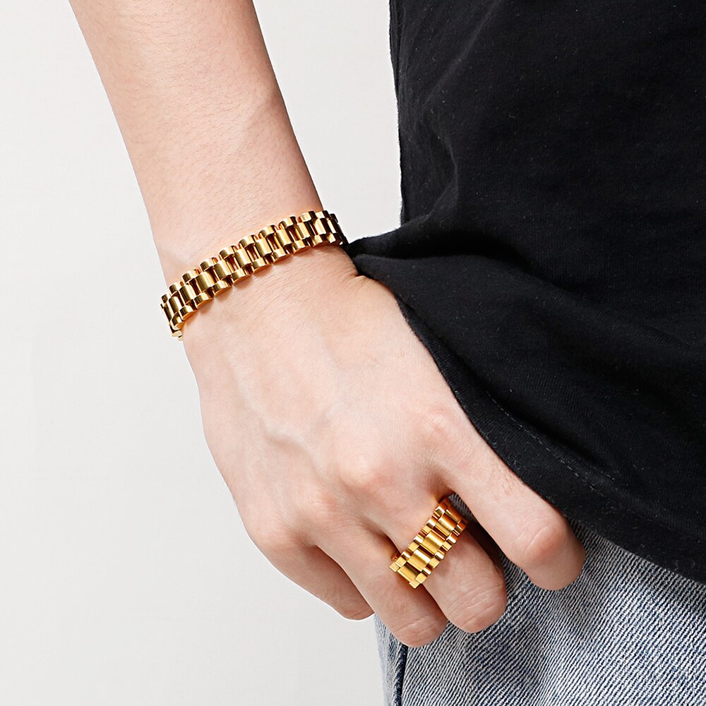 Pulsera de acero inoxidable chapada en oro para hombre y mujer, cadena de reloj de 10 mm de ancho, pulseras para mujer, accesorios de joyería para niños, regalo.