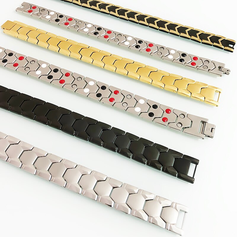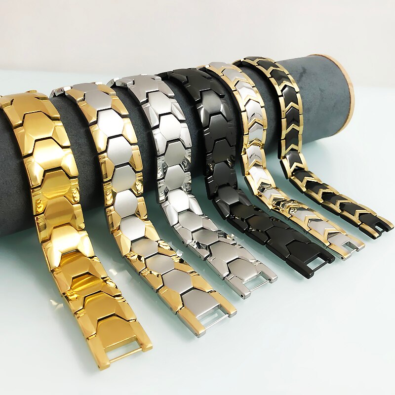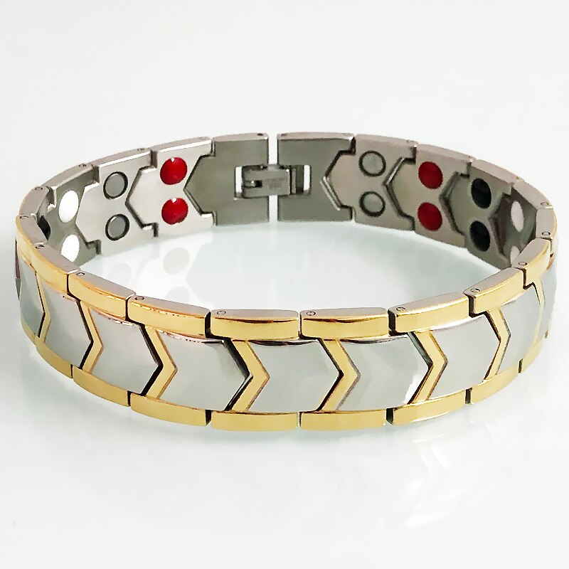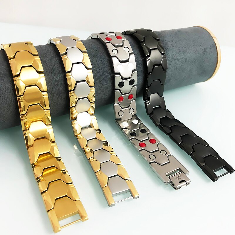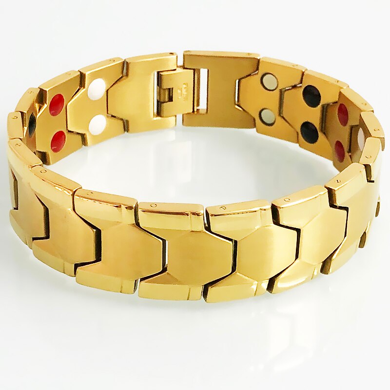 Pulsera y brazalete magnético de acero inoxidable chapado en oro para hombre, con cadena de metal, estilo Germaniu Bio Health Care, joyería femenina.
