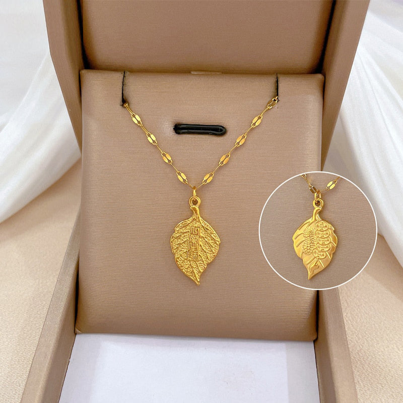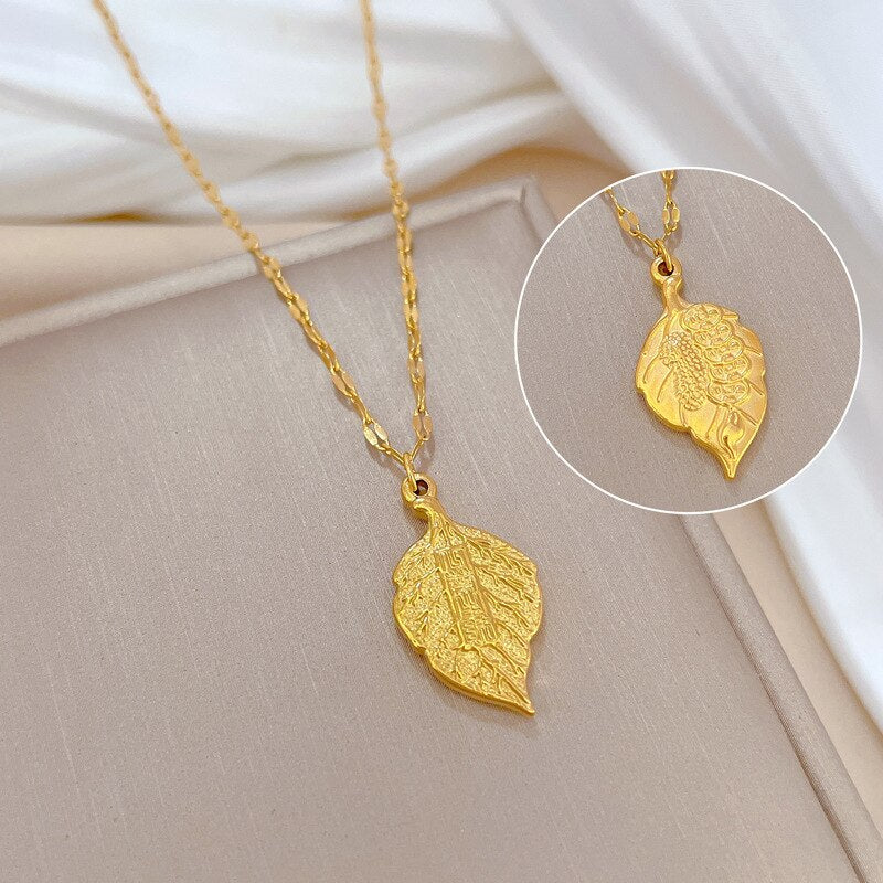 Collar con colgante de hoja de planta en oro 585, acero inoxidable 316L, color dorado y plateado, para mujer, joyería de lujo para fiestas.