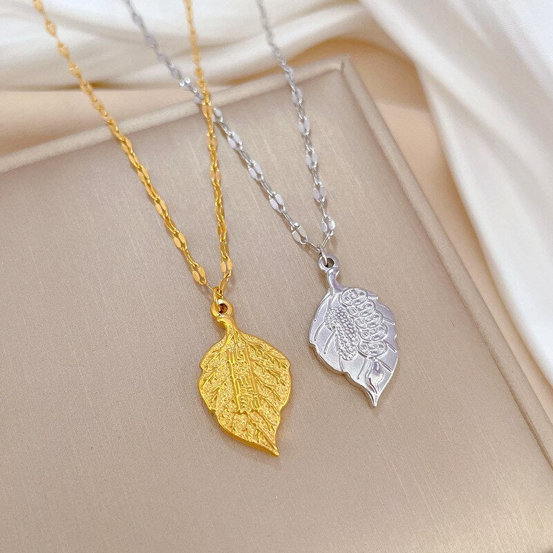 Collar con colgante de hoja de planta en color dorado y plateado para mujer