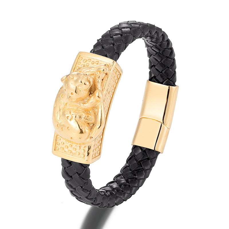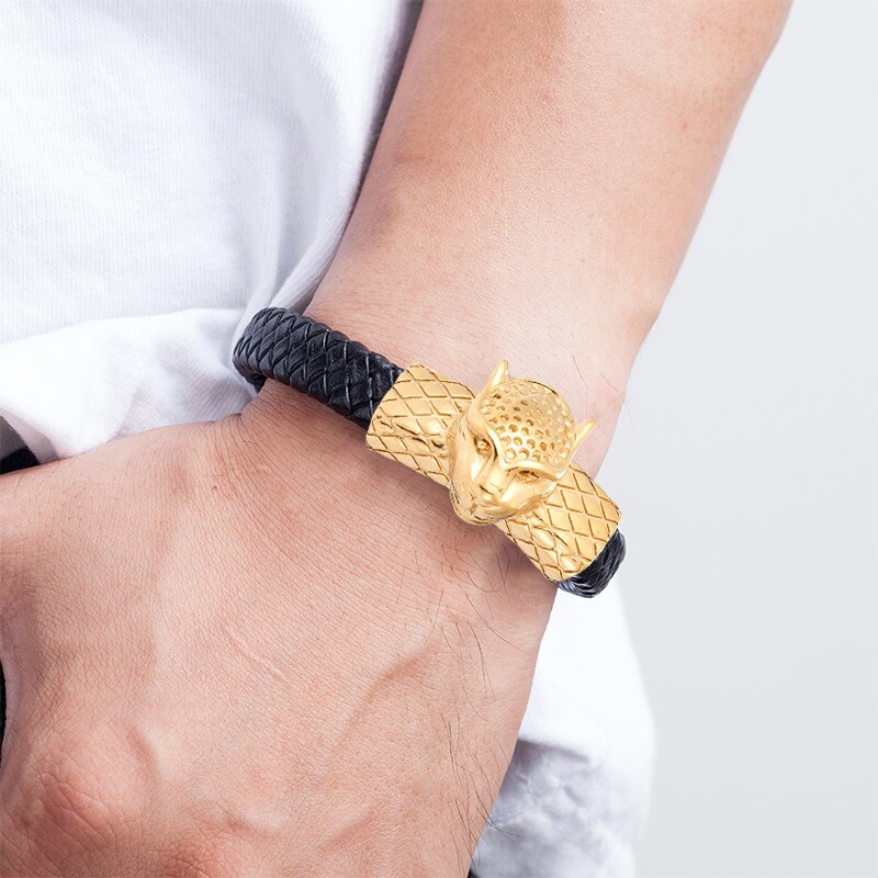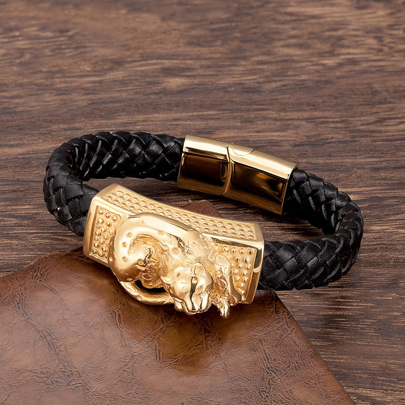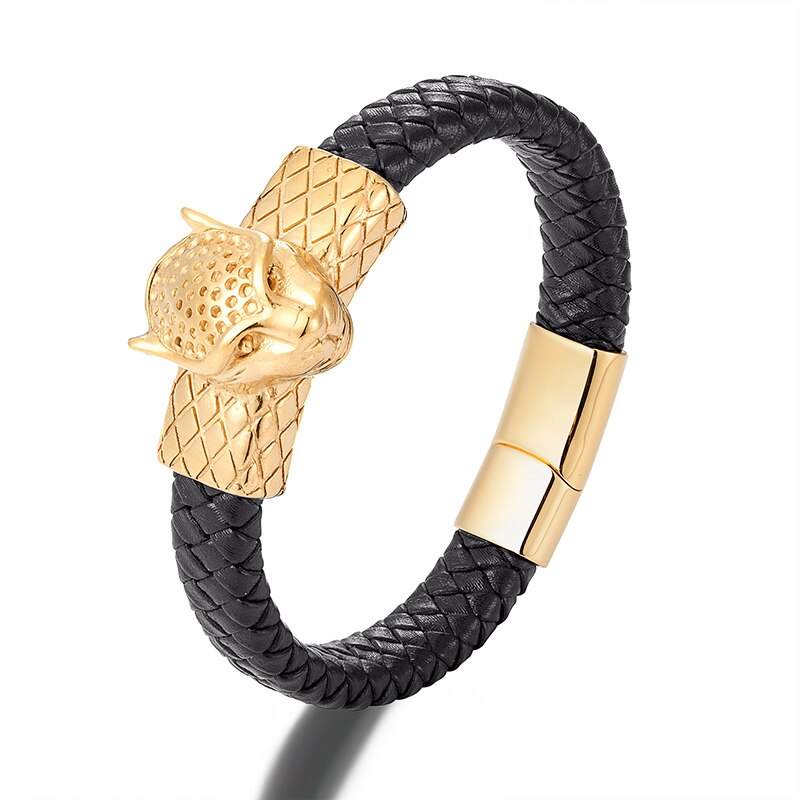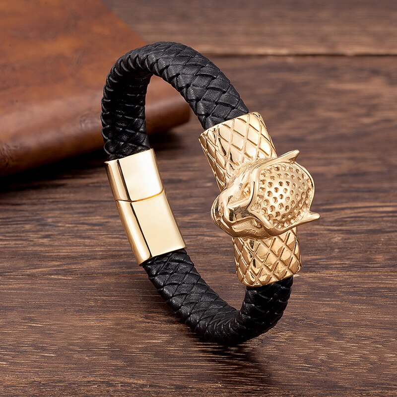 Pulsera de oro, pulsera de acero inoxidable, pulsera de hombre, pulsera punk, joyería, pulsera de cuero genuino,