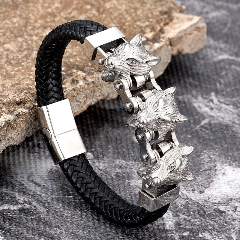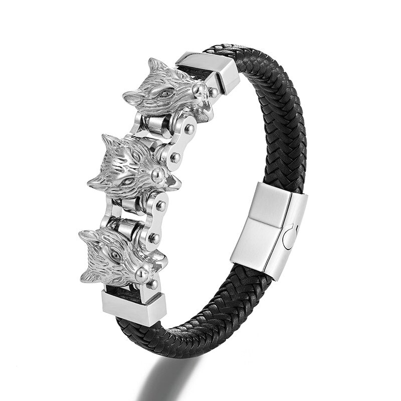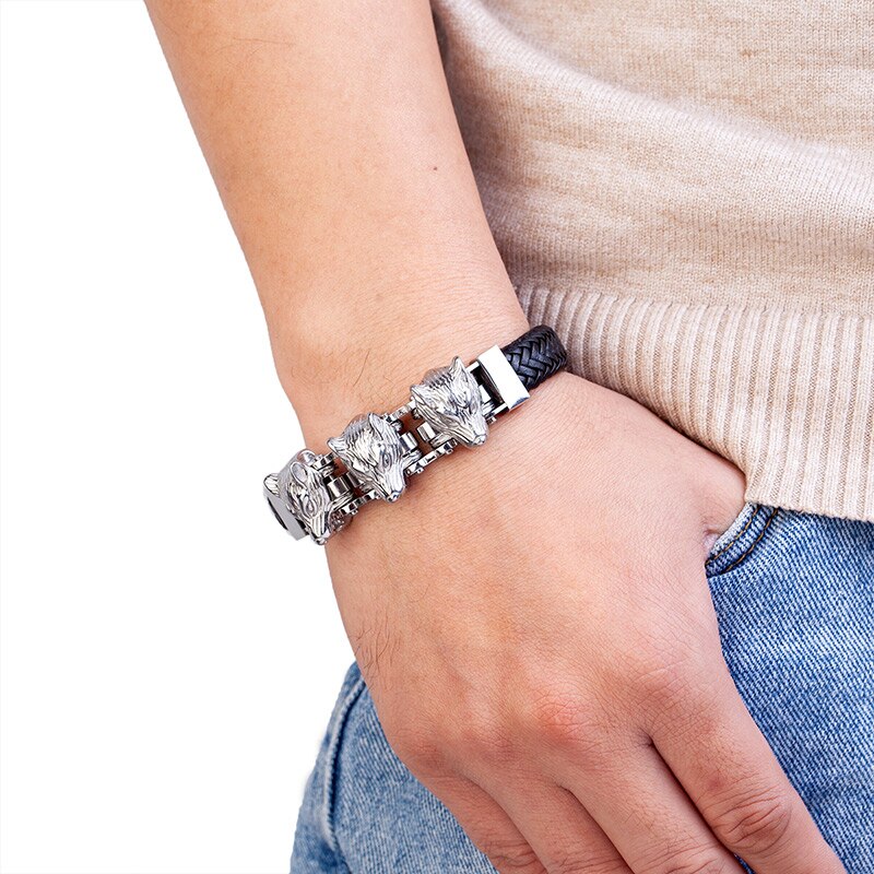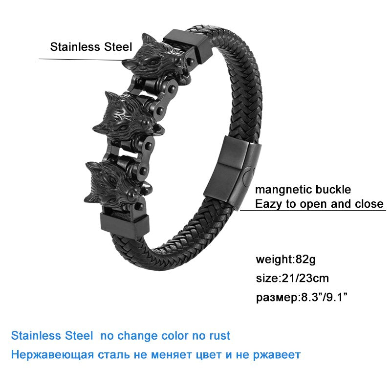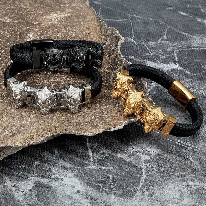 Pulsera de oro, pulsera de lobo, pulsera de acero inoxidable, pulsera de hombre, pulsera de cuero, pulsera punk, accesorios de mano, pulsera magnética, pulsera de moda, pulsera de hombre, joyería para hombre, pulsera al por mayor, pulsera de amigo, pulsera de regalo
