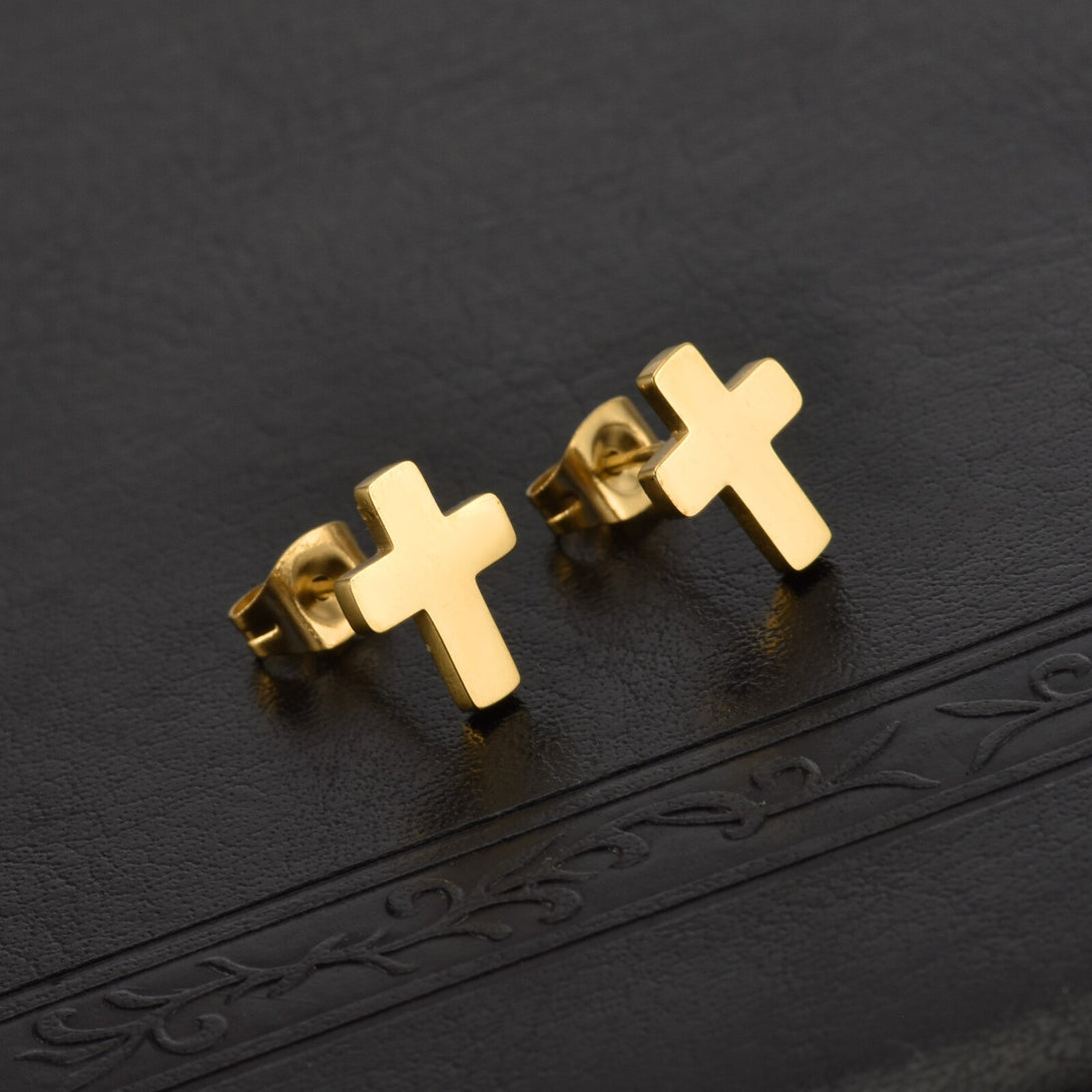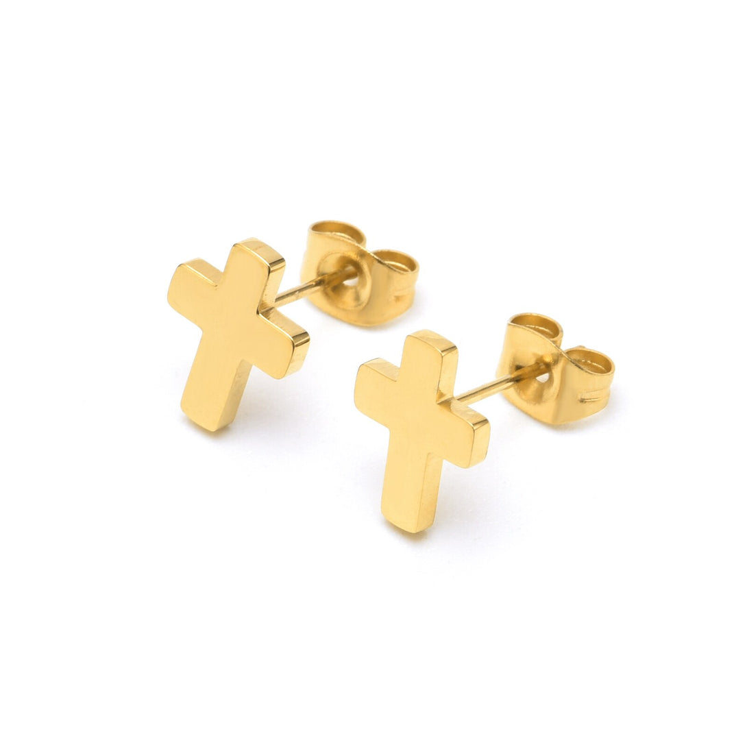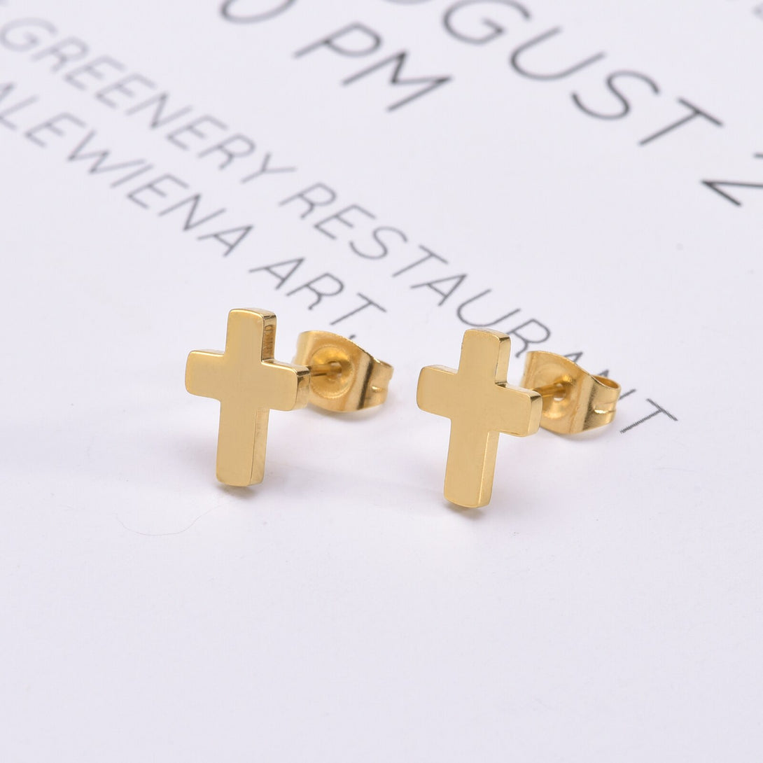 Pendientes de acero inoxidable con forma de cruz dorada para hombre y mujer, para cartílago, piercing en la oreja, accesorios de joyería de moda.