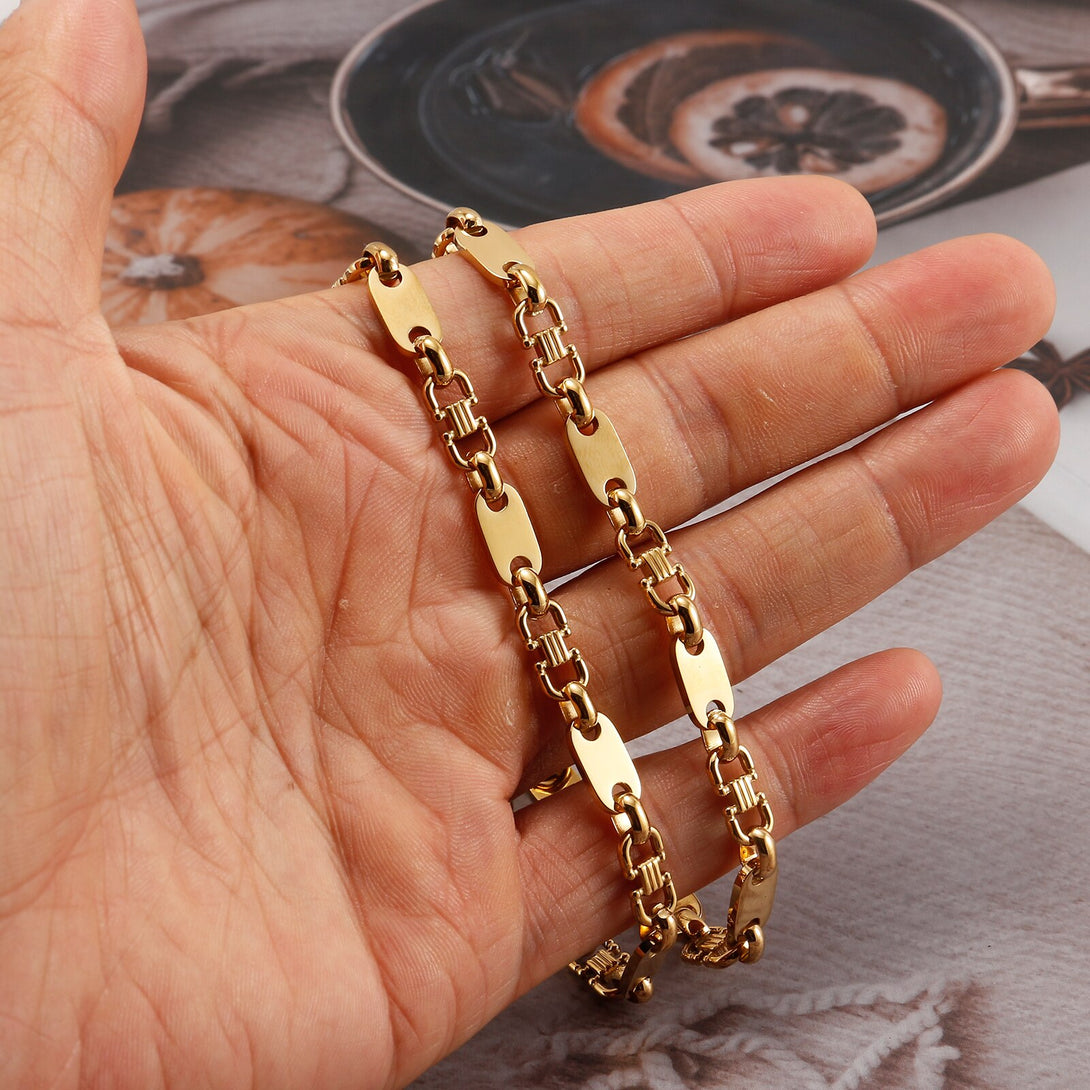 Collar dorado de doble D para mujer y hombre, de acero inoxidable, estilo hip hop, con eslabones cubanos.