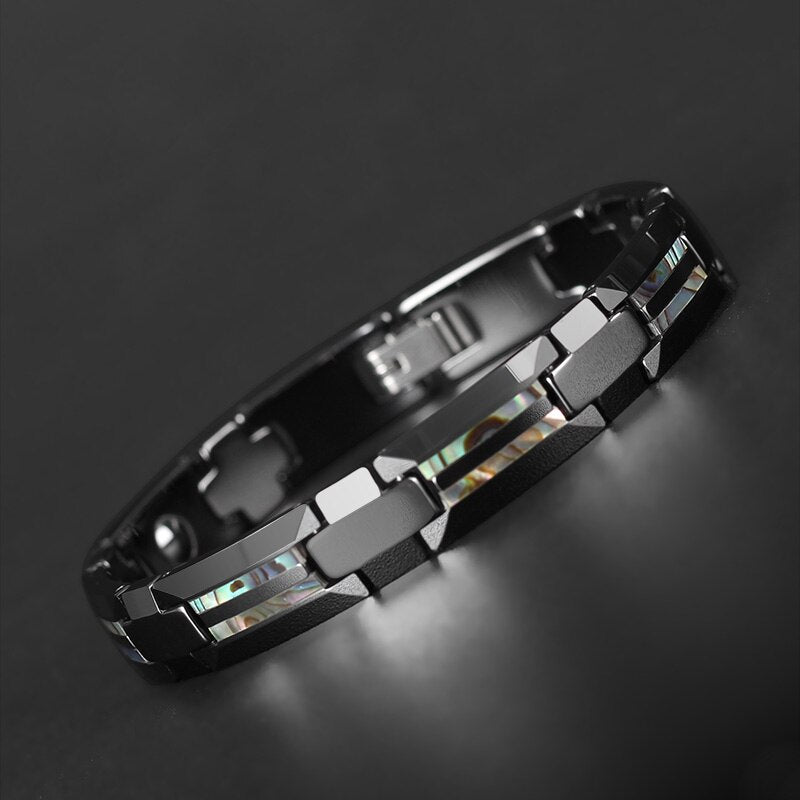 Pulsera magnética de lujo para hombre, con concha natural de cerámica negra y tungsteno, ideal para la salud.
