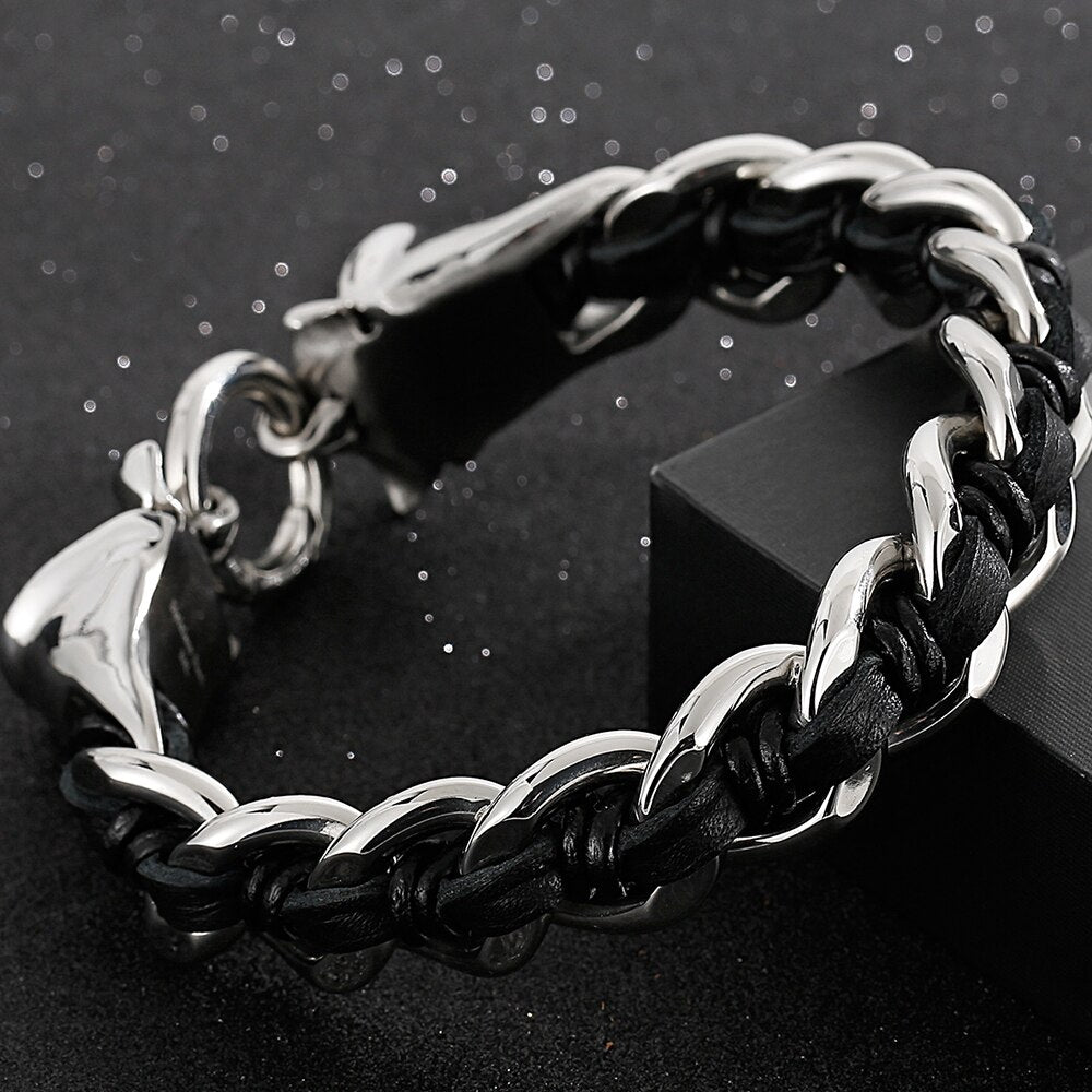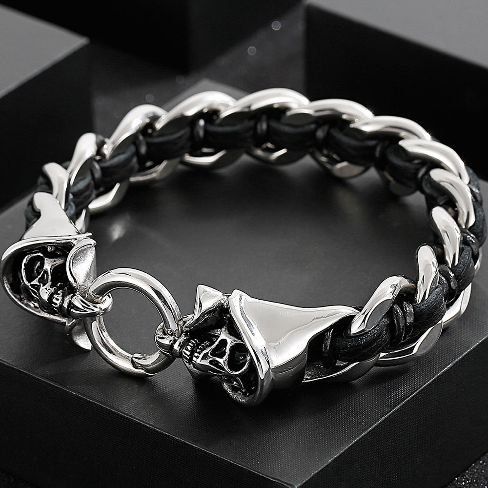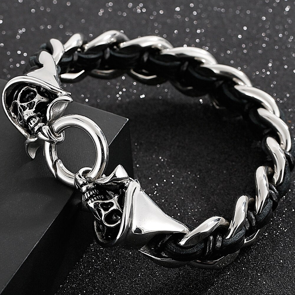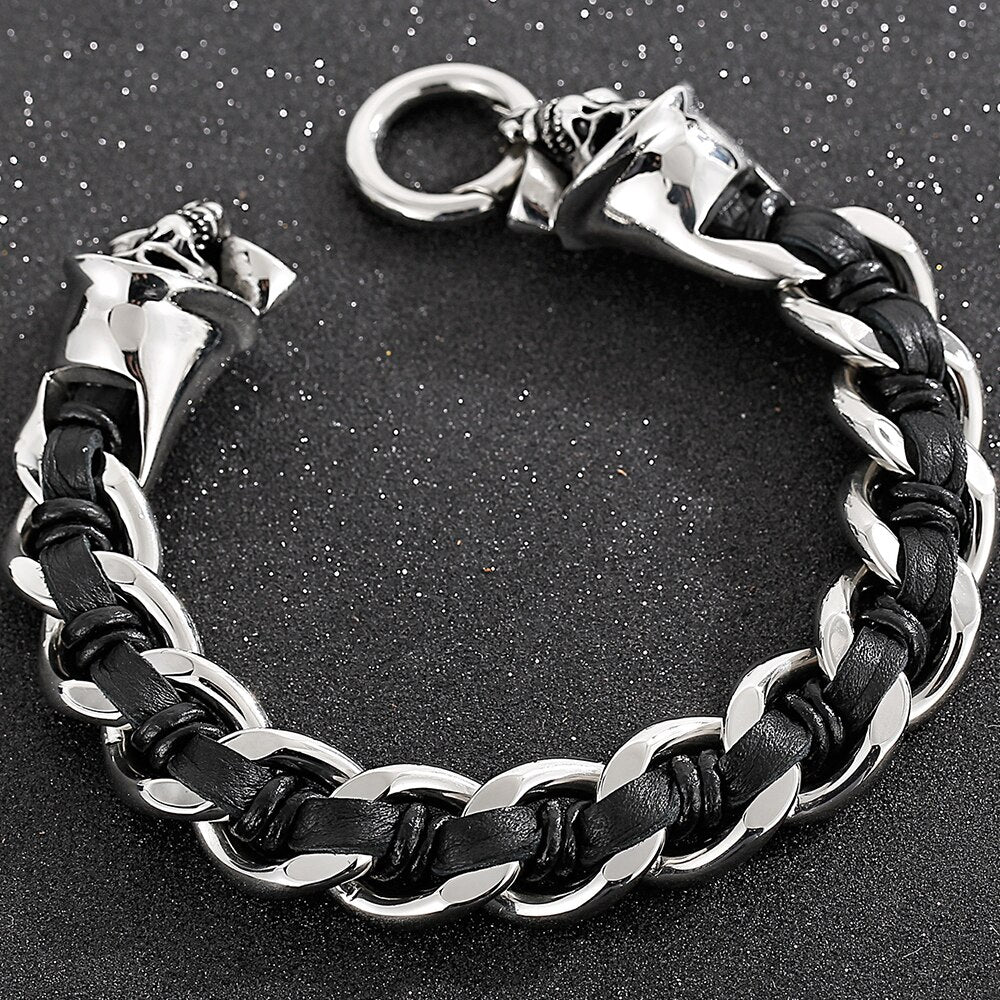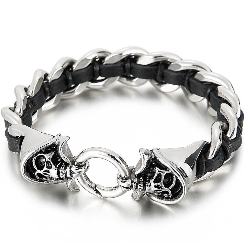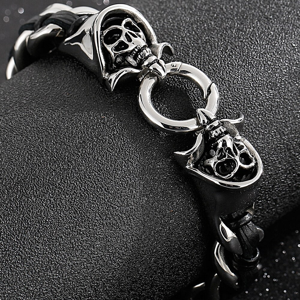 Pulsera gótica con calavera para hombre y niño, talla grande, 24 cm (9,4"), Leatherman, joyería para hombre, accesorios de mano.