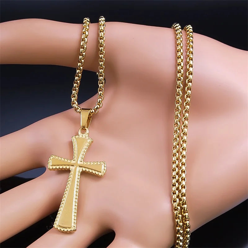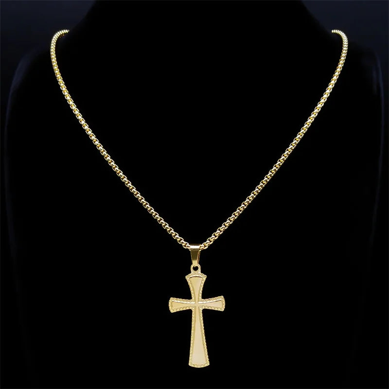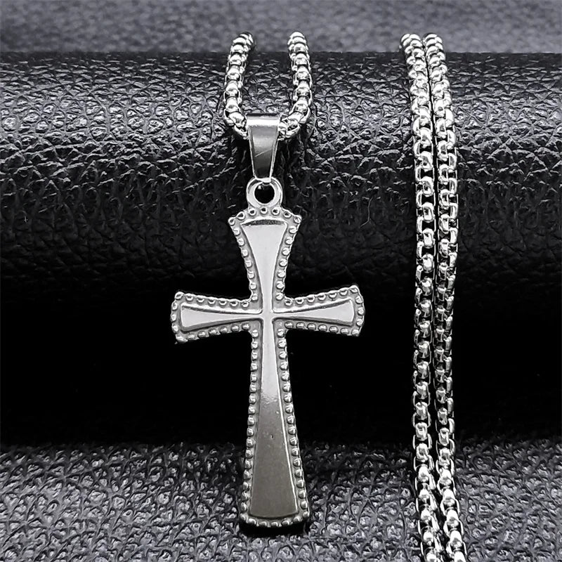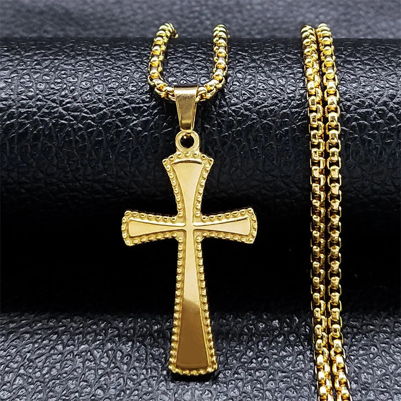 Collar de cruz gótica de acero inoxidable de color negro, regalo punk para fiestas.