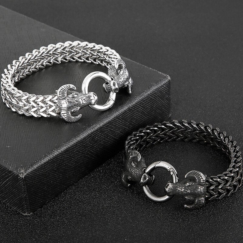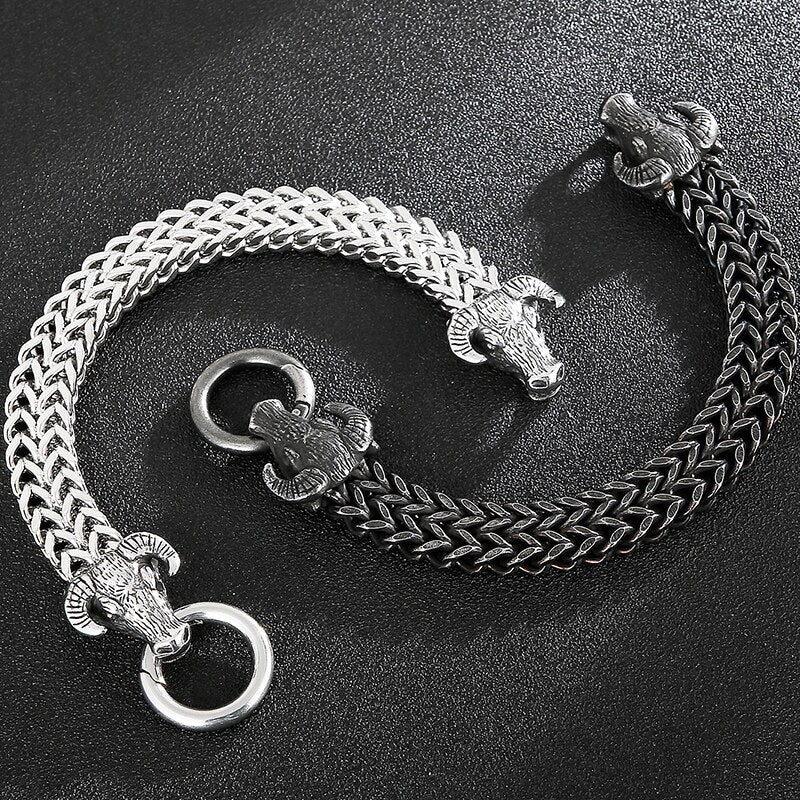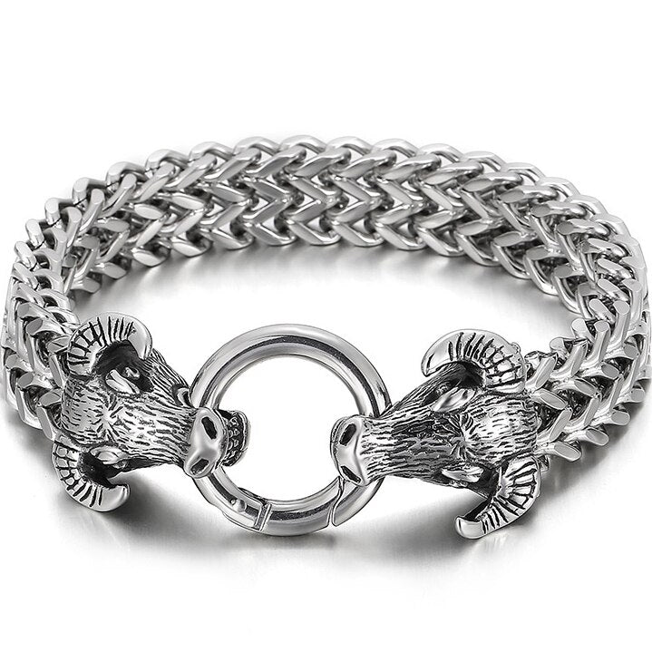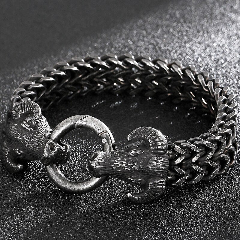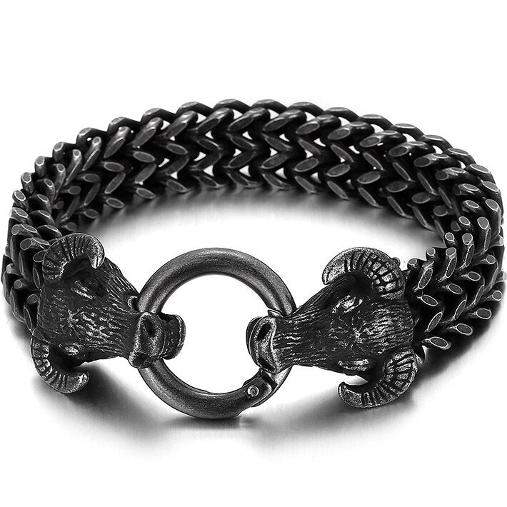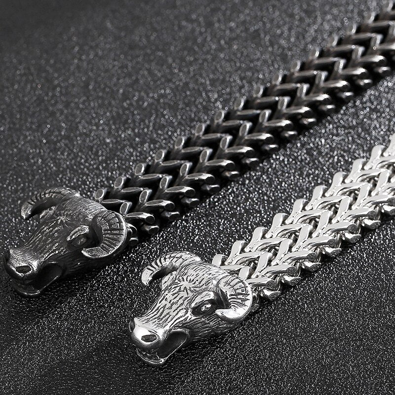 Pulsera gótica con doble cabeza de toro para hombre, cadena de eslabones de 13 mm, estilo franco