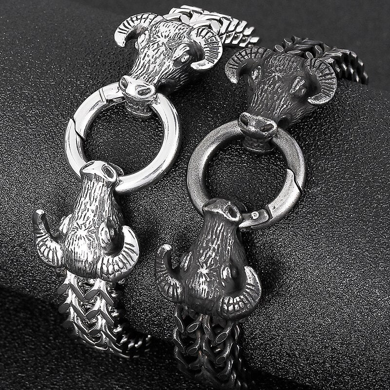 Pulsera gótica con doble cabeza de toro para hombre, cadena de eslabones de 13 mm, con bolsa de regalo.