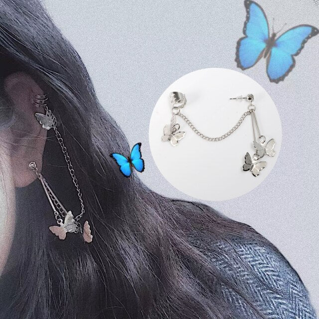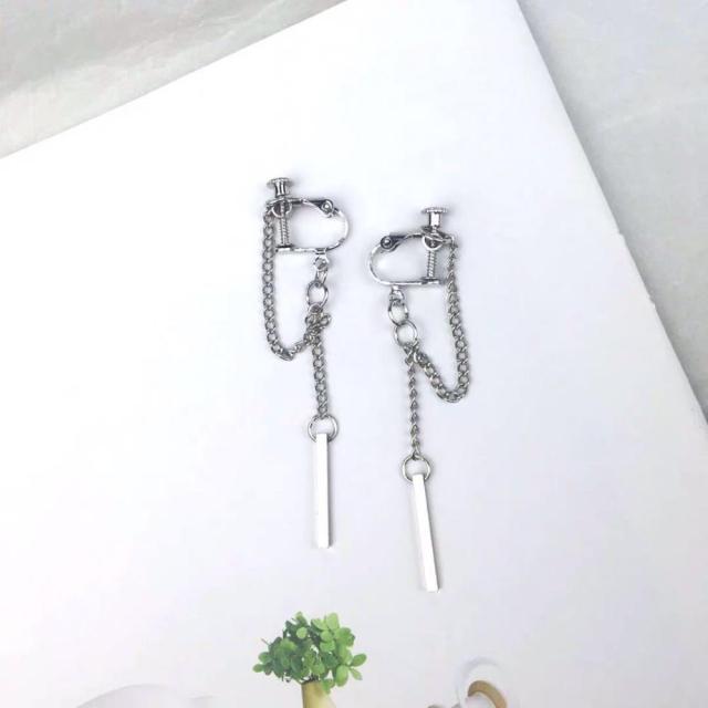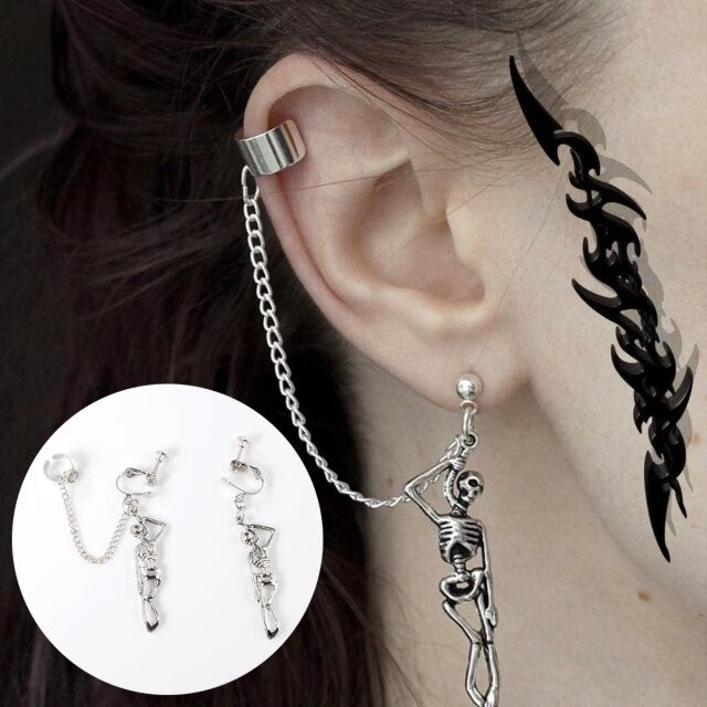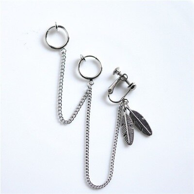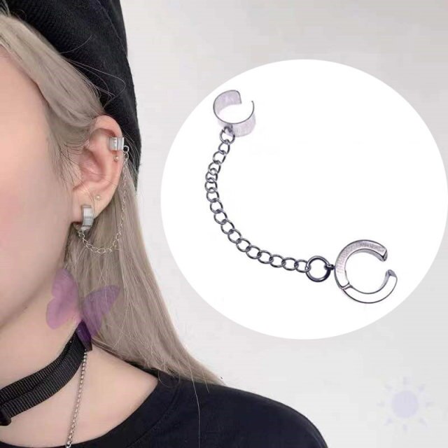 Pendientes de moda: piercing gótico falso para cartílago, con clip para mujer y hombre, con forma de puño de oreja, cruz, ángel, con cadena y borla, para una sola oreja.