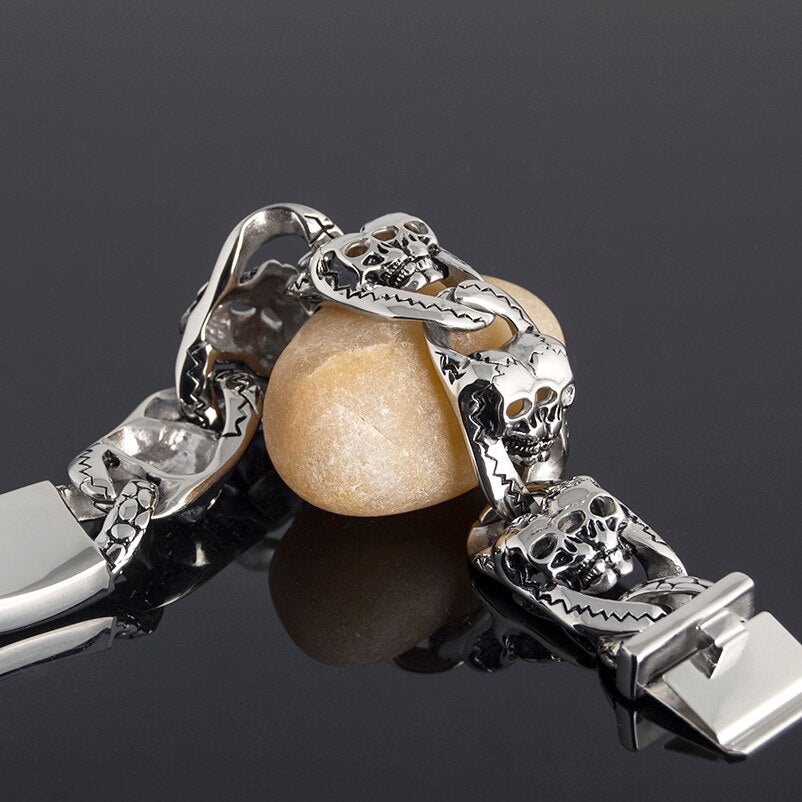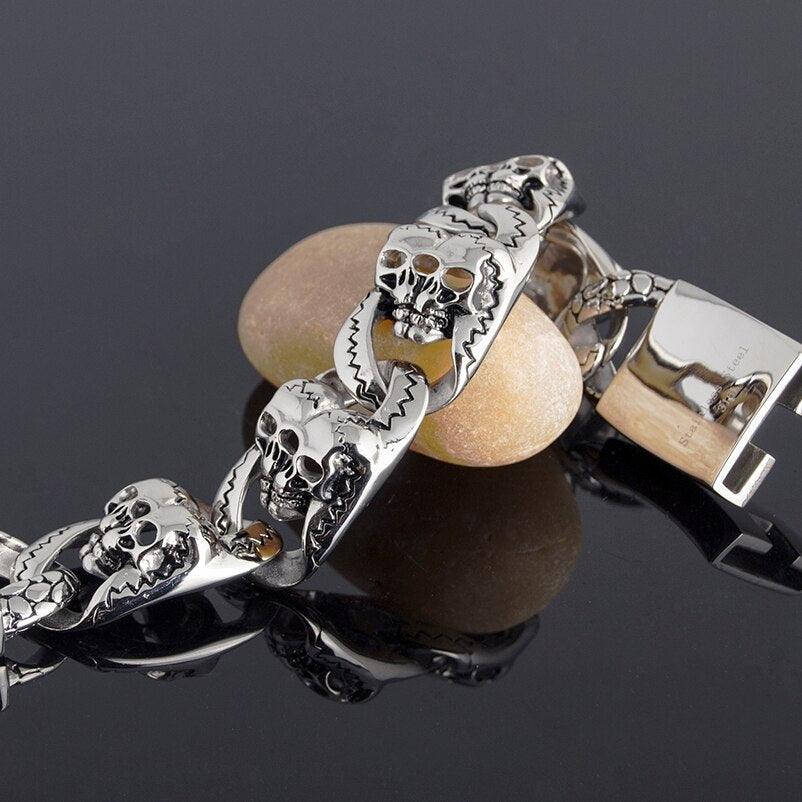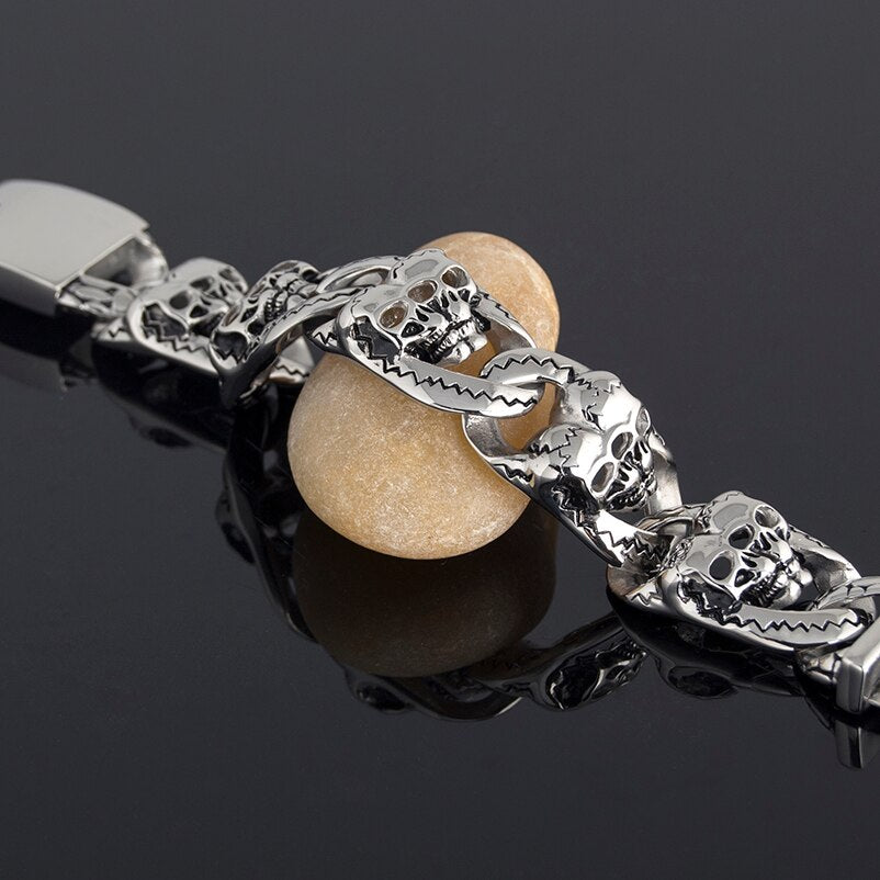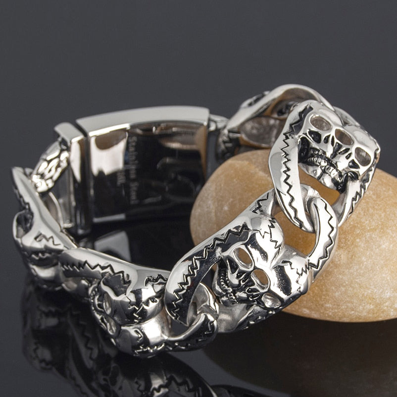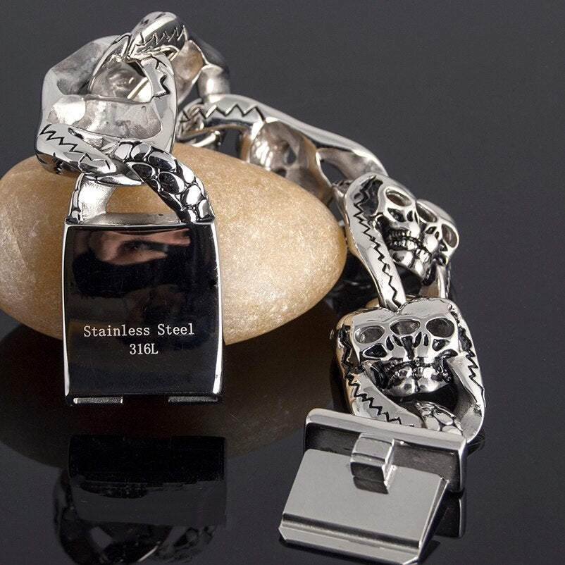 Pulsera gótica de acero inoxidable 316L para hombre, brazalete con calavera, estilo punk rock, 26 mm de ancho y 8 pulgadas.