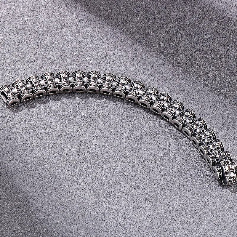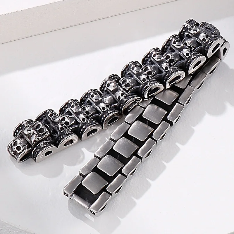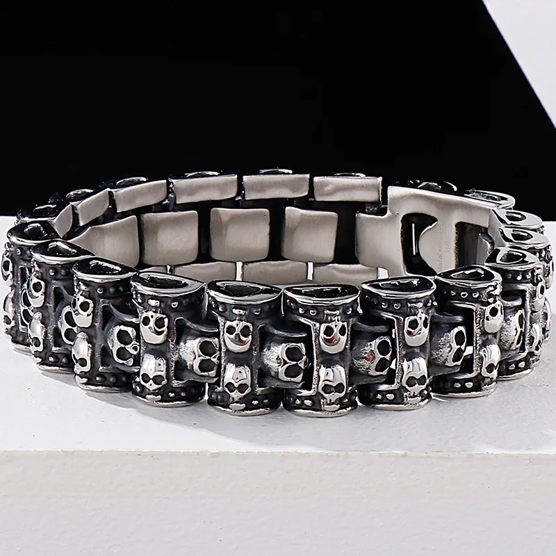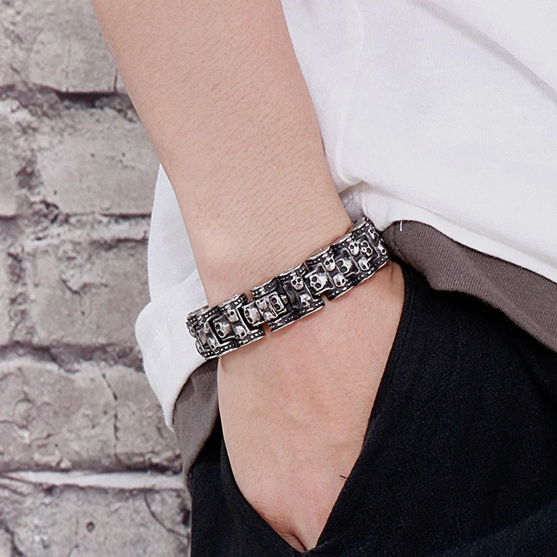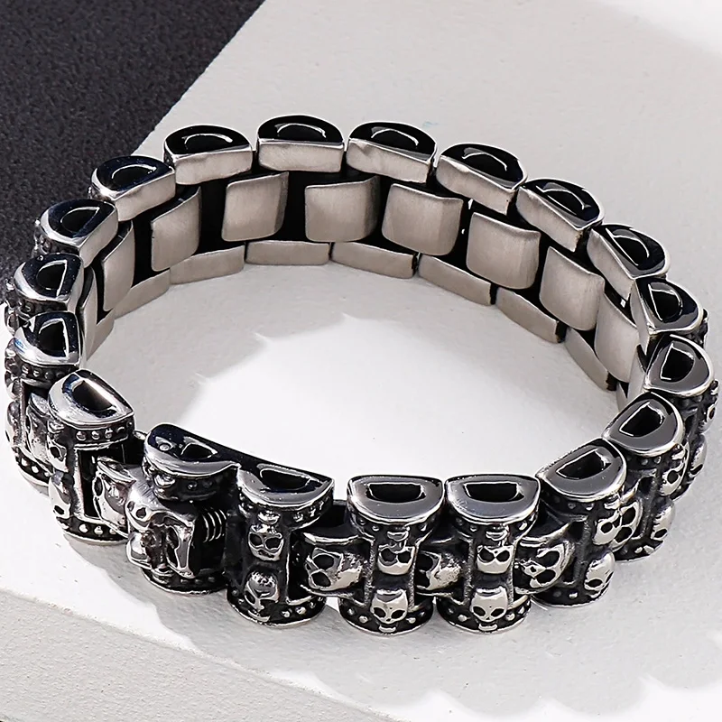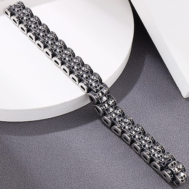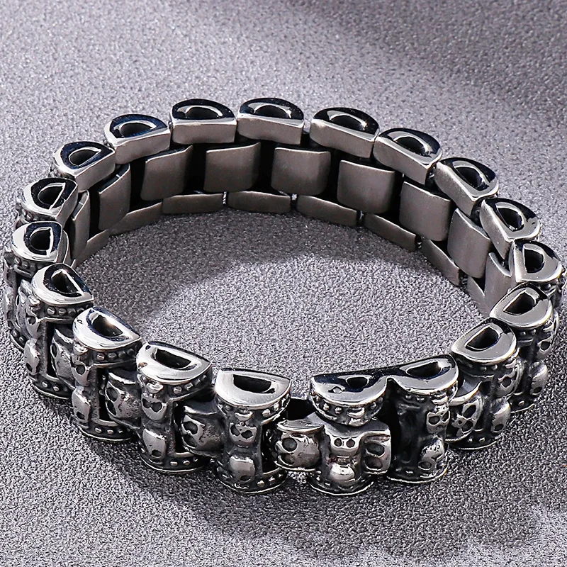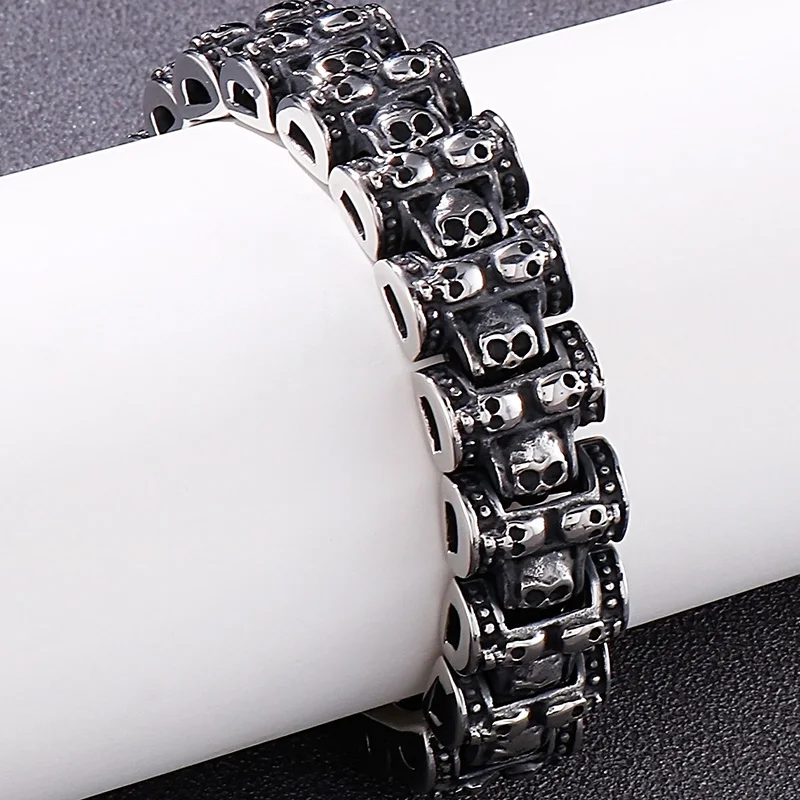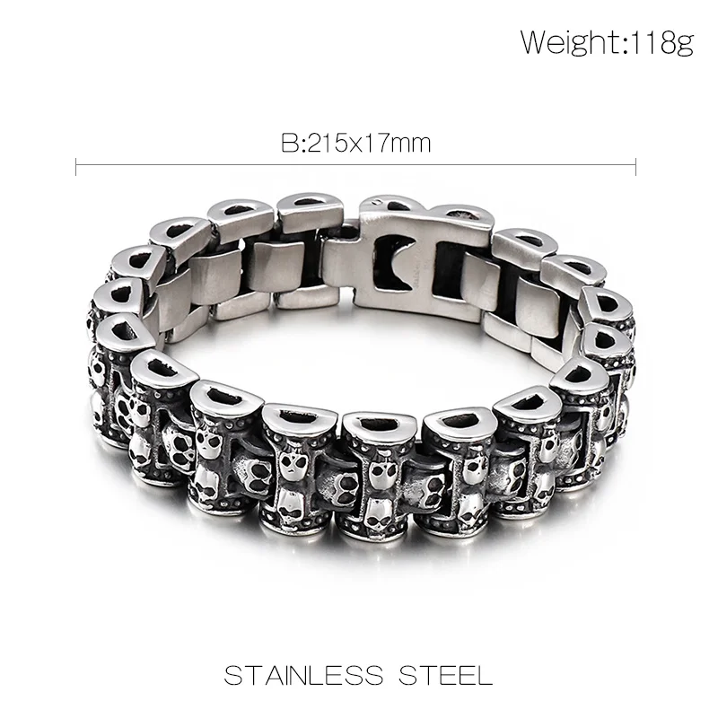 Pulsera gótica de acero inoxidable con cabeza de calavera para hombre, pesada y de estudio, cadena de calaveras de 17 mm, pulseras de mano, joyería masiva para motociclistas.