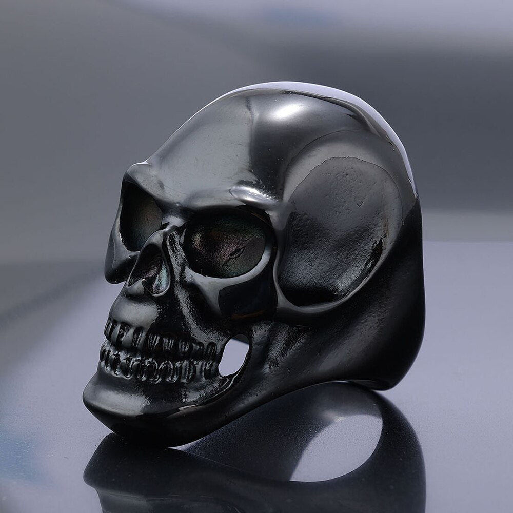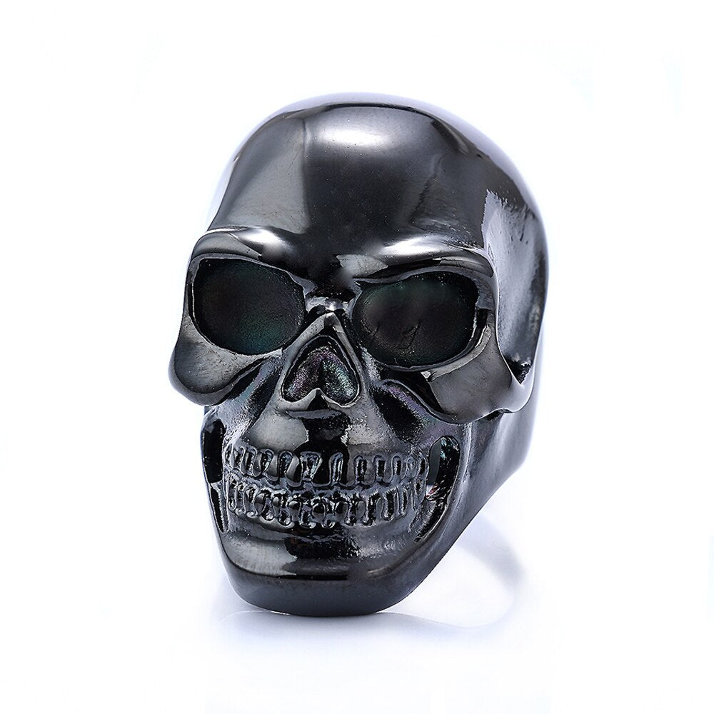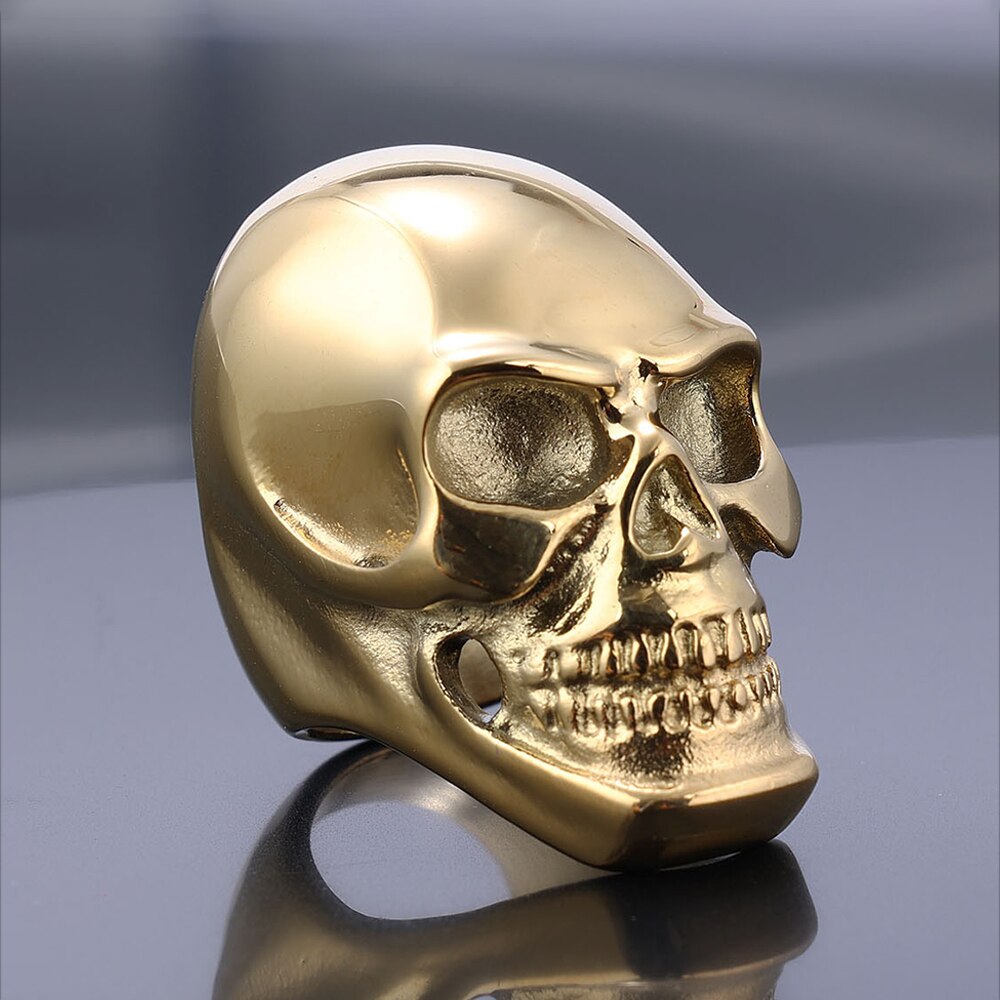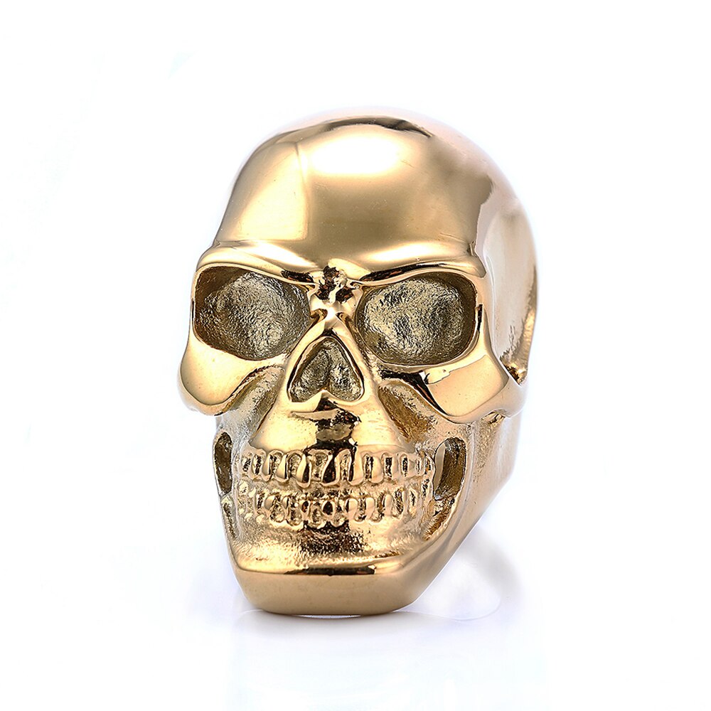 Anillo de acero inoxidable con calavera gótica retro para hombre y niño, estilo motociclista, estilo hip hop callejero, color negro y dorado, joyería para Halloween