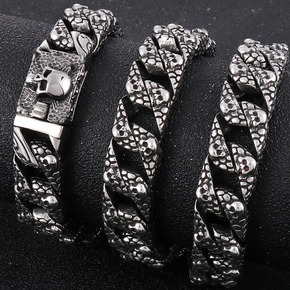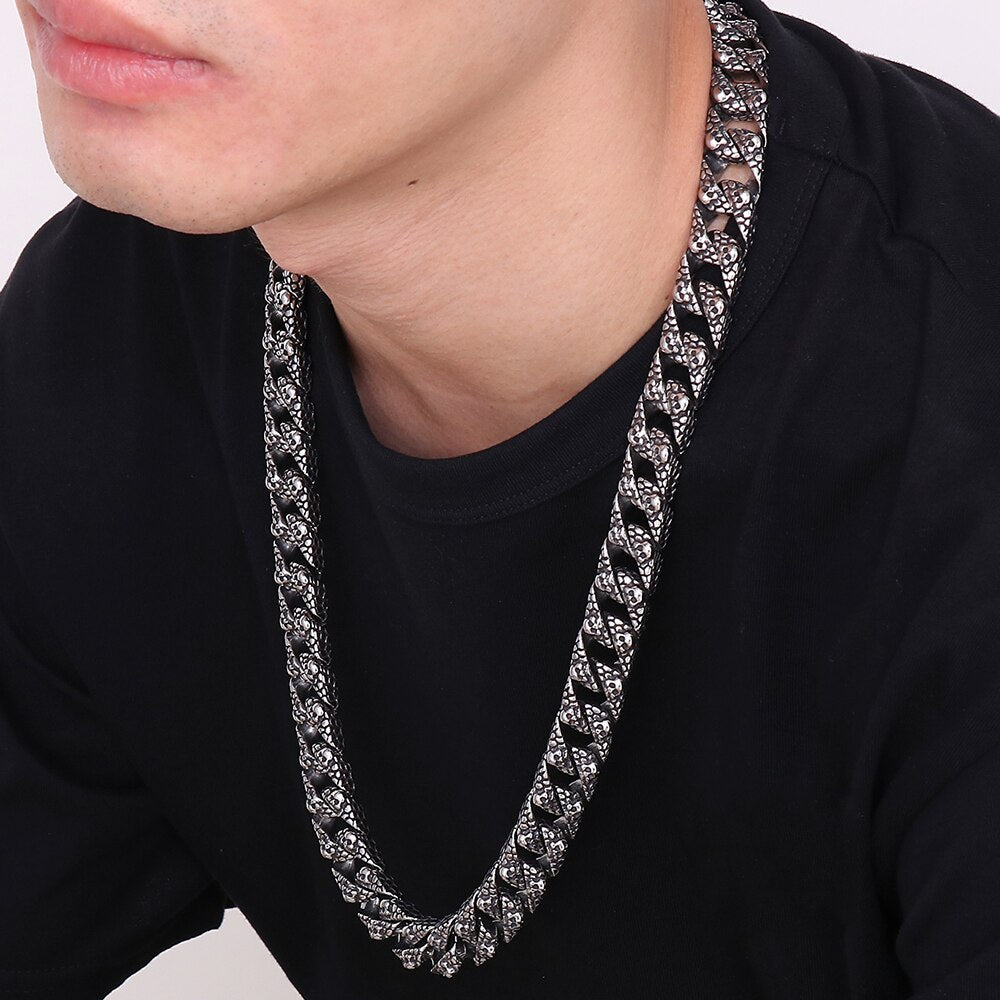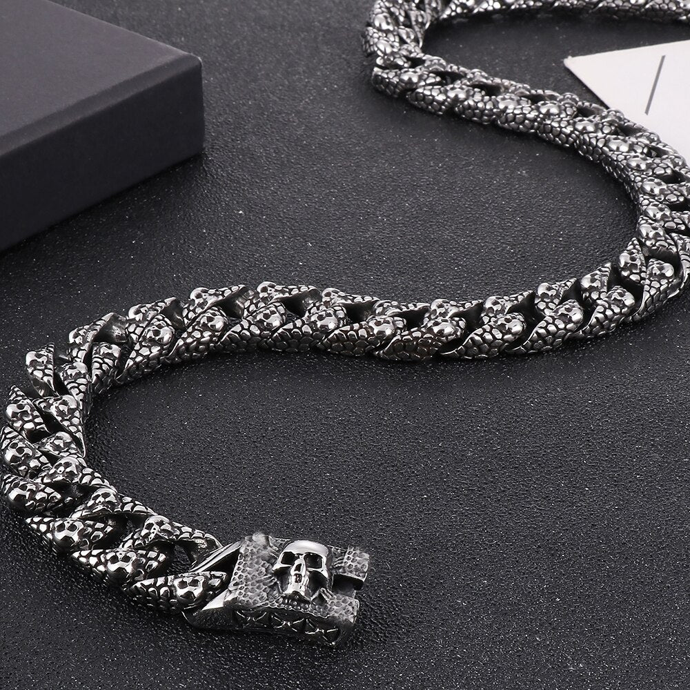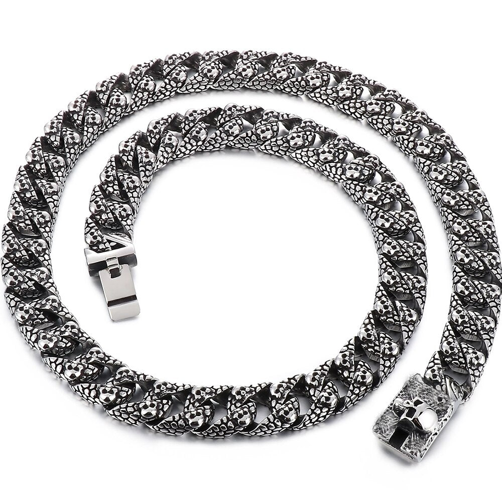 Collar de cadena de eslabones con esqueleto gótico para hombre, de acero inoxidable, estilo punk, para Halloween, accesorios de joyería.