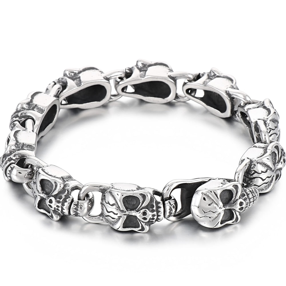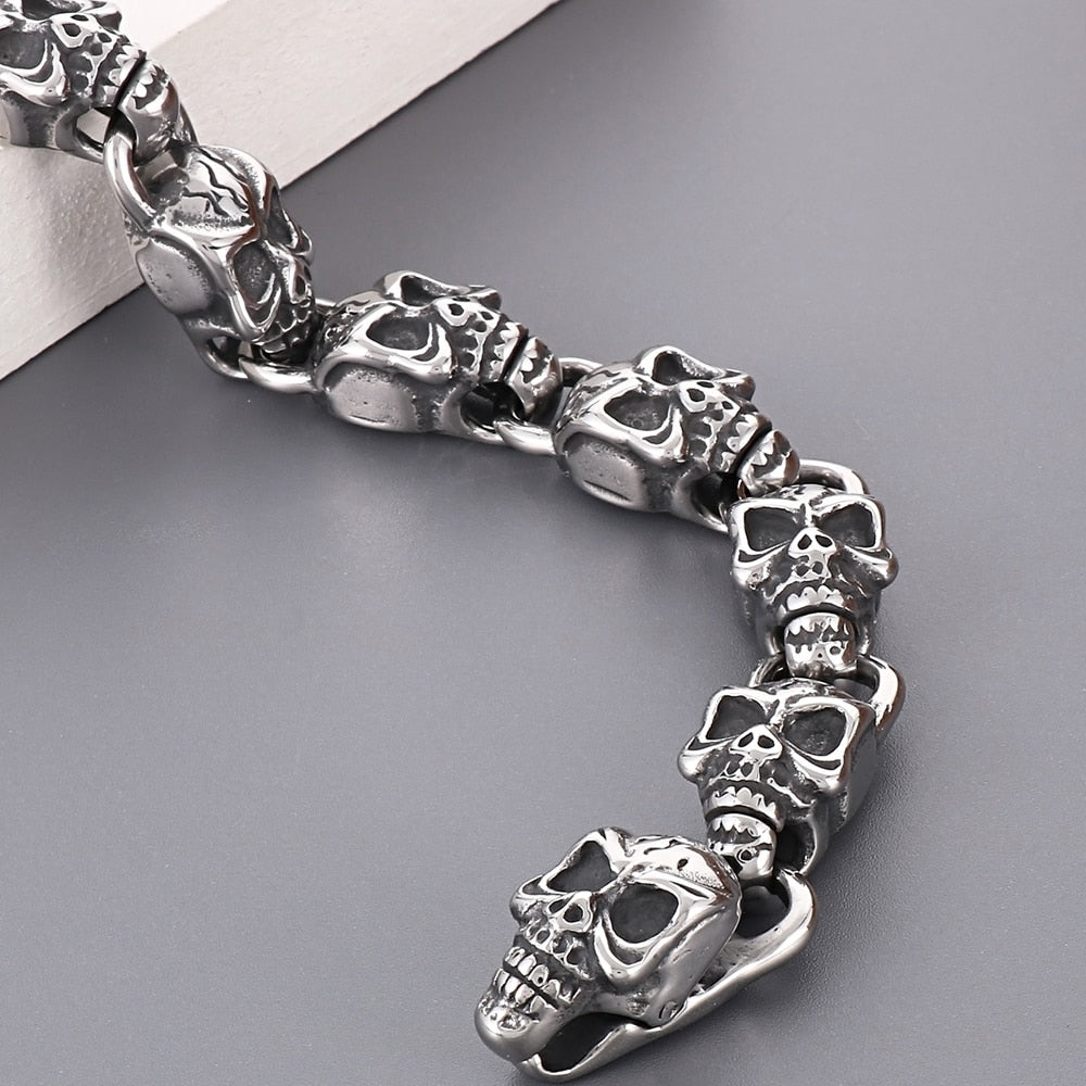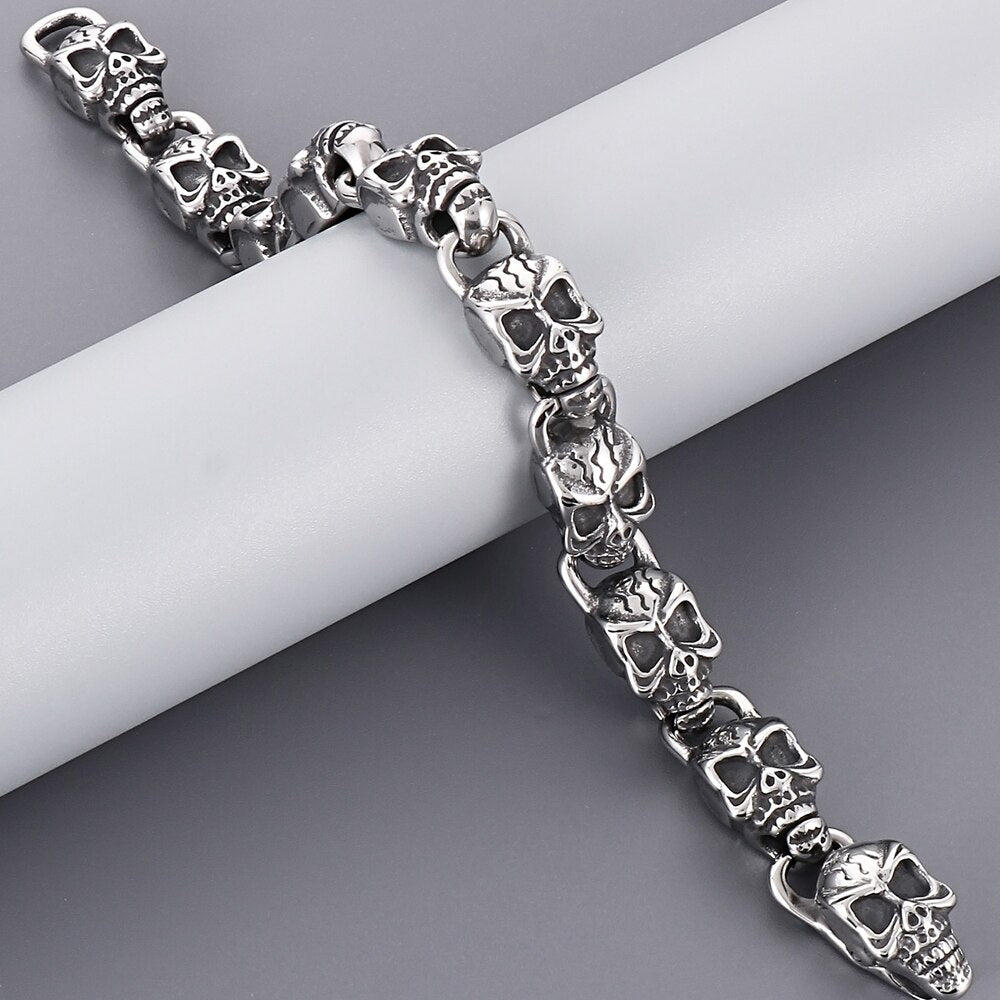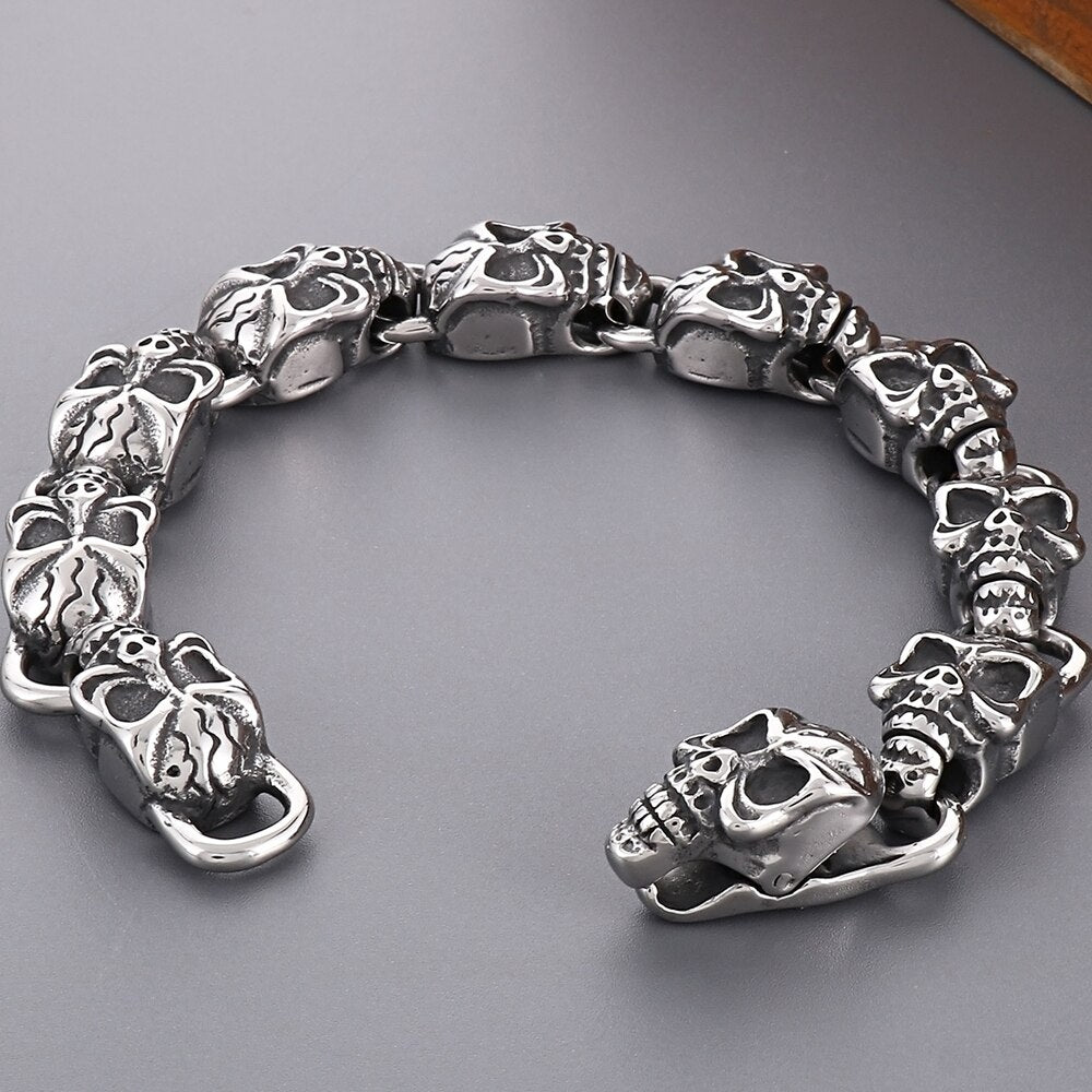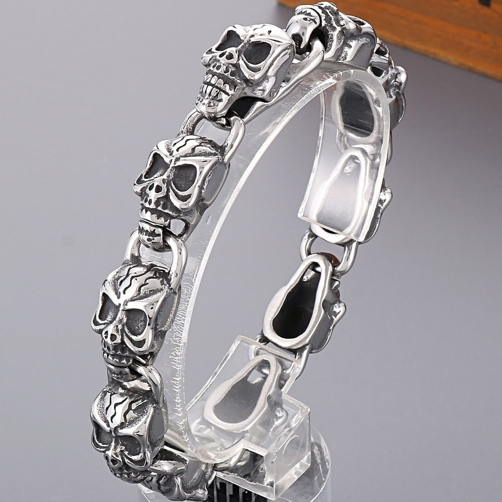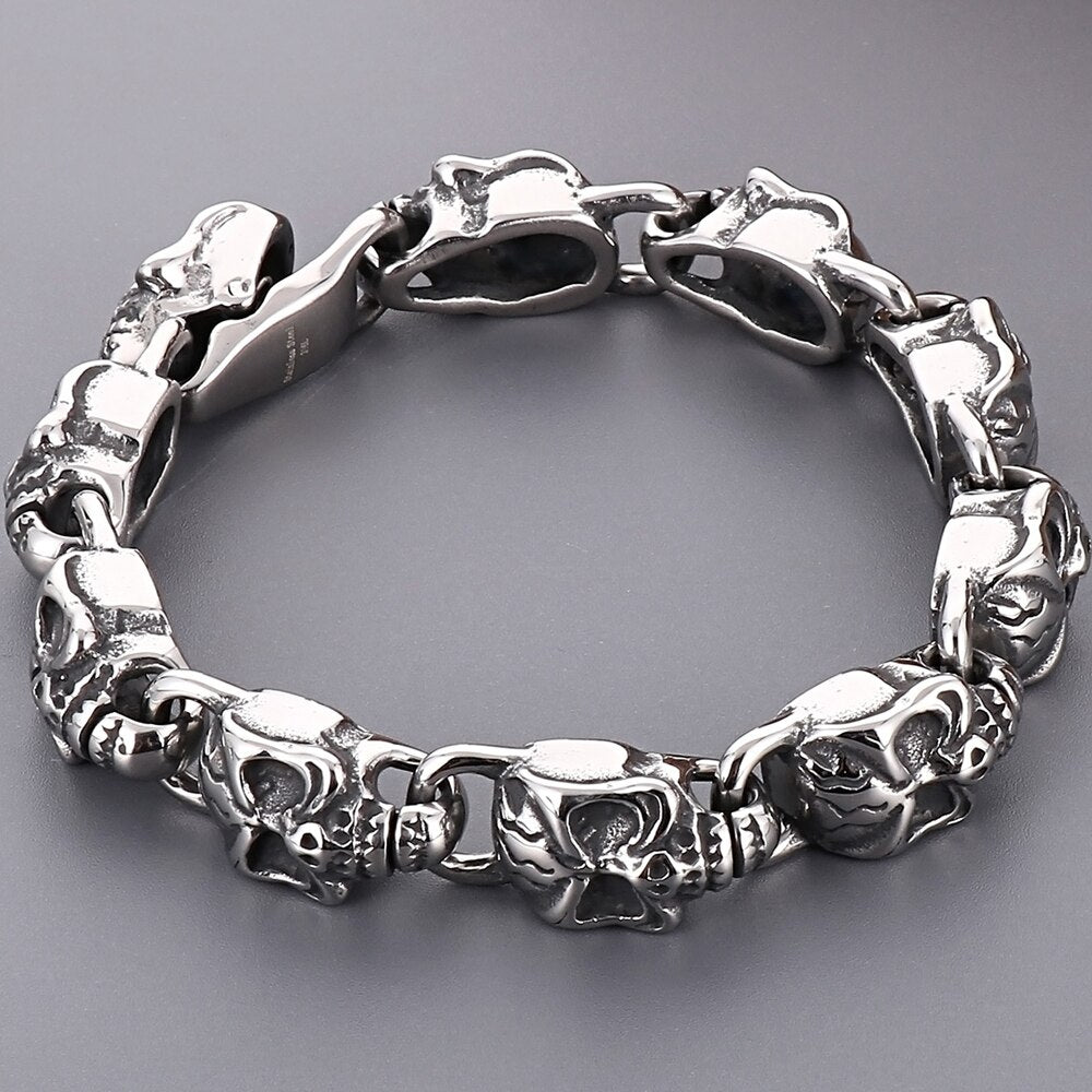 Pulsera de eslabones de esqueleto gótico para hombre, de acero inoxidable macizo, accesorios de joyería para muñeca, pulseras para hombre, estilo punk rock con calavera.