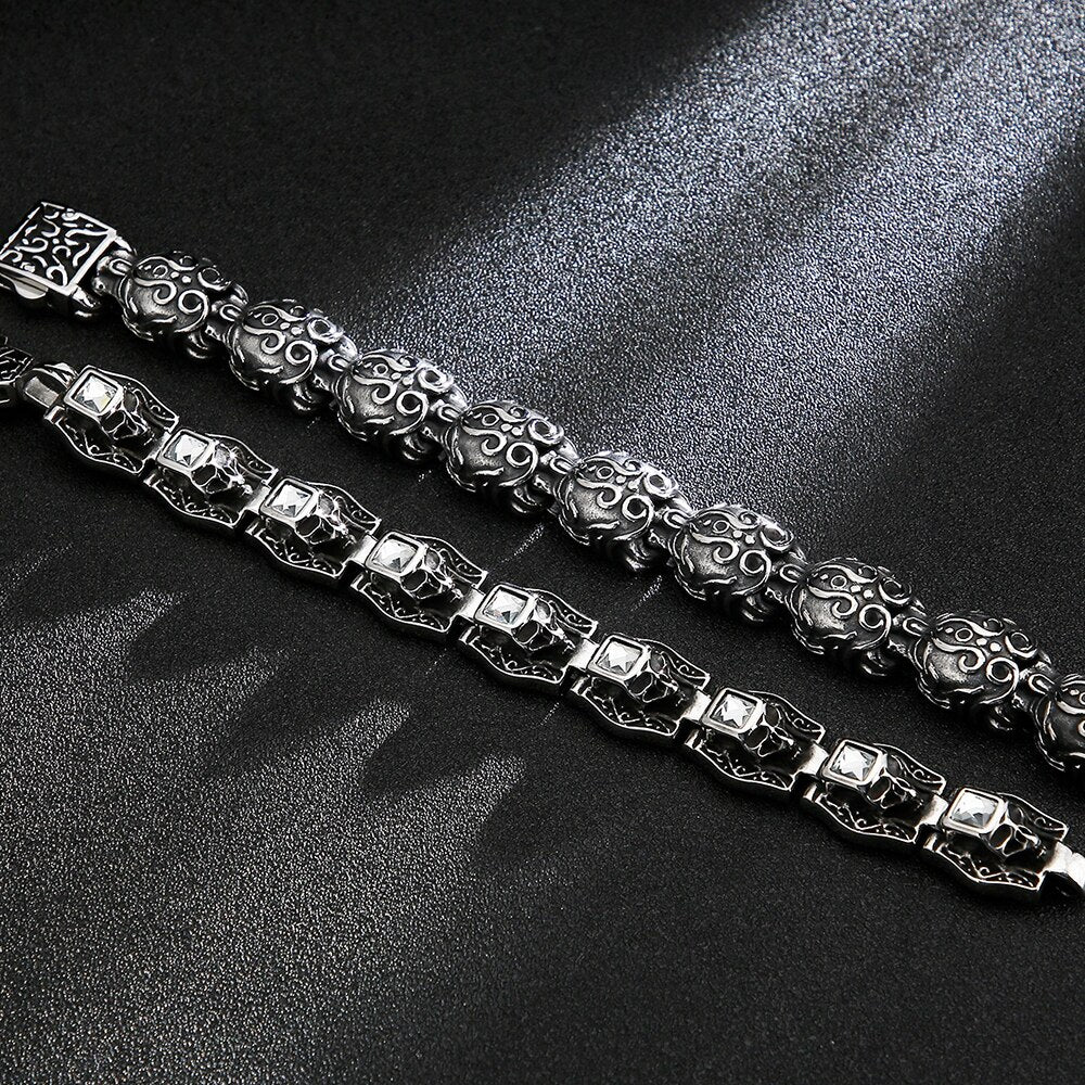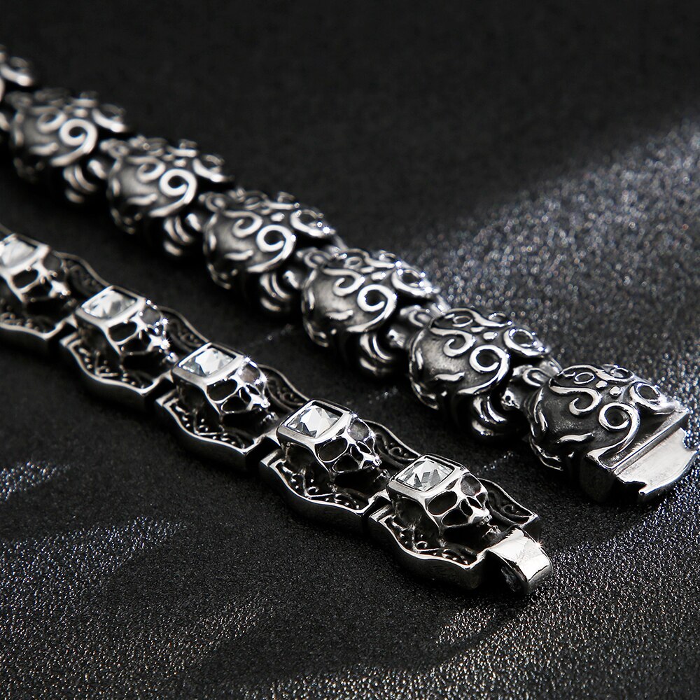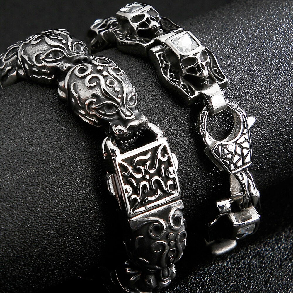Pulseras de calavera para hombre de acero inoxidable: pulseras de cadena de esqueleto para hombre.