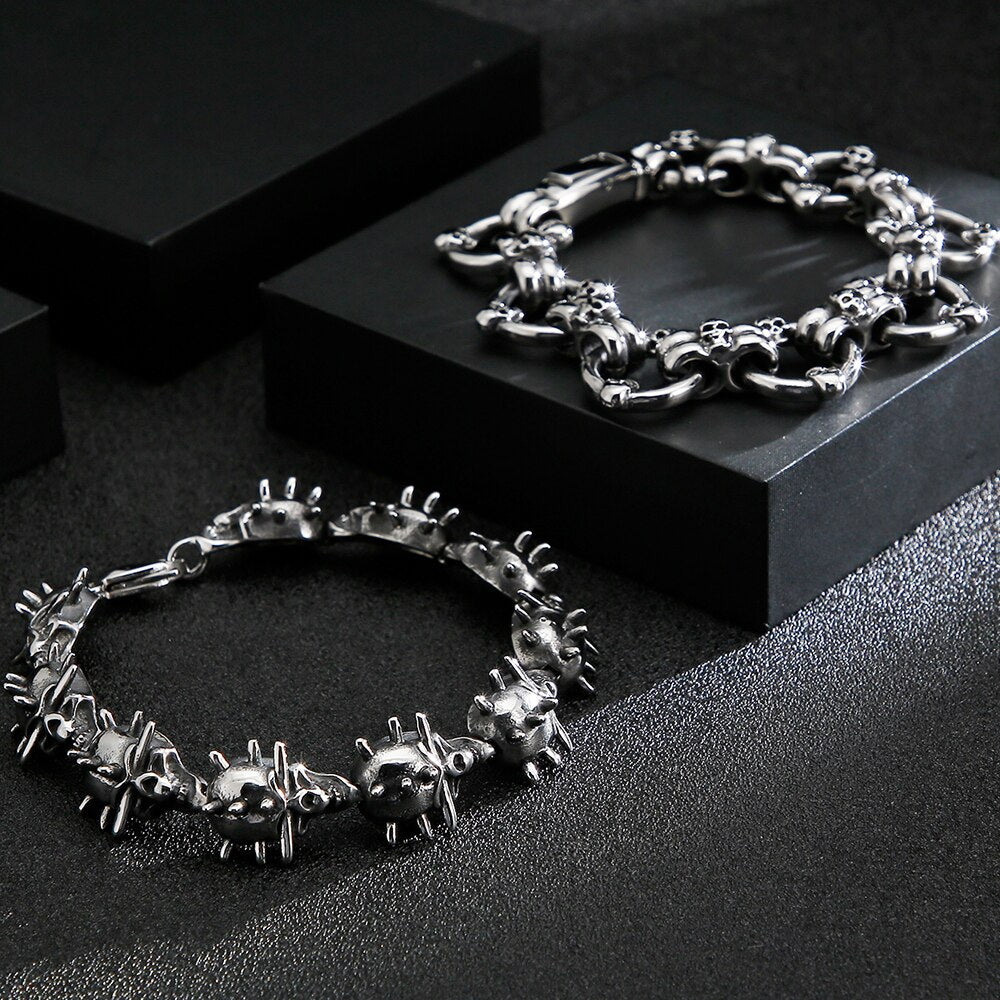 Pulseras de calavera para hombre de acero inoxidable: Pulseras de cadena de esqueleto para hombre.