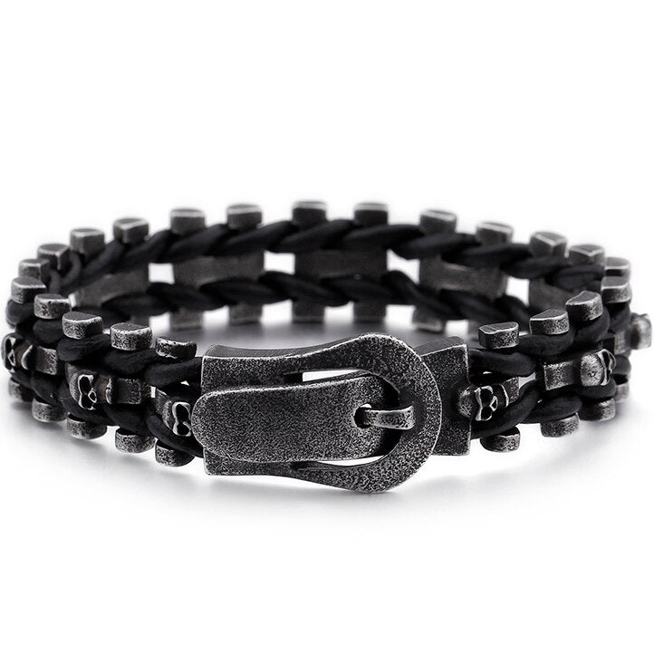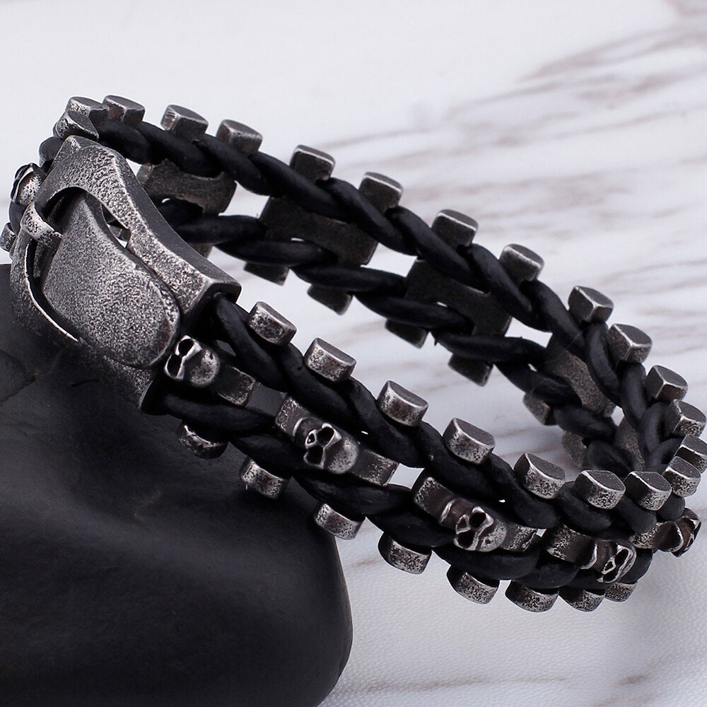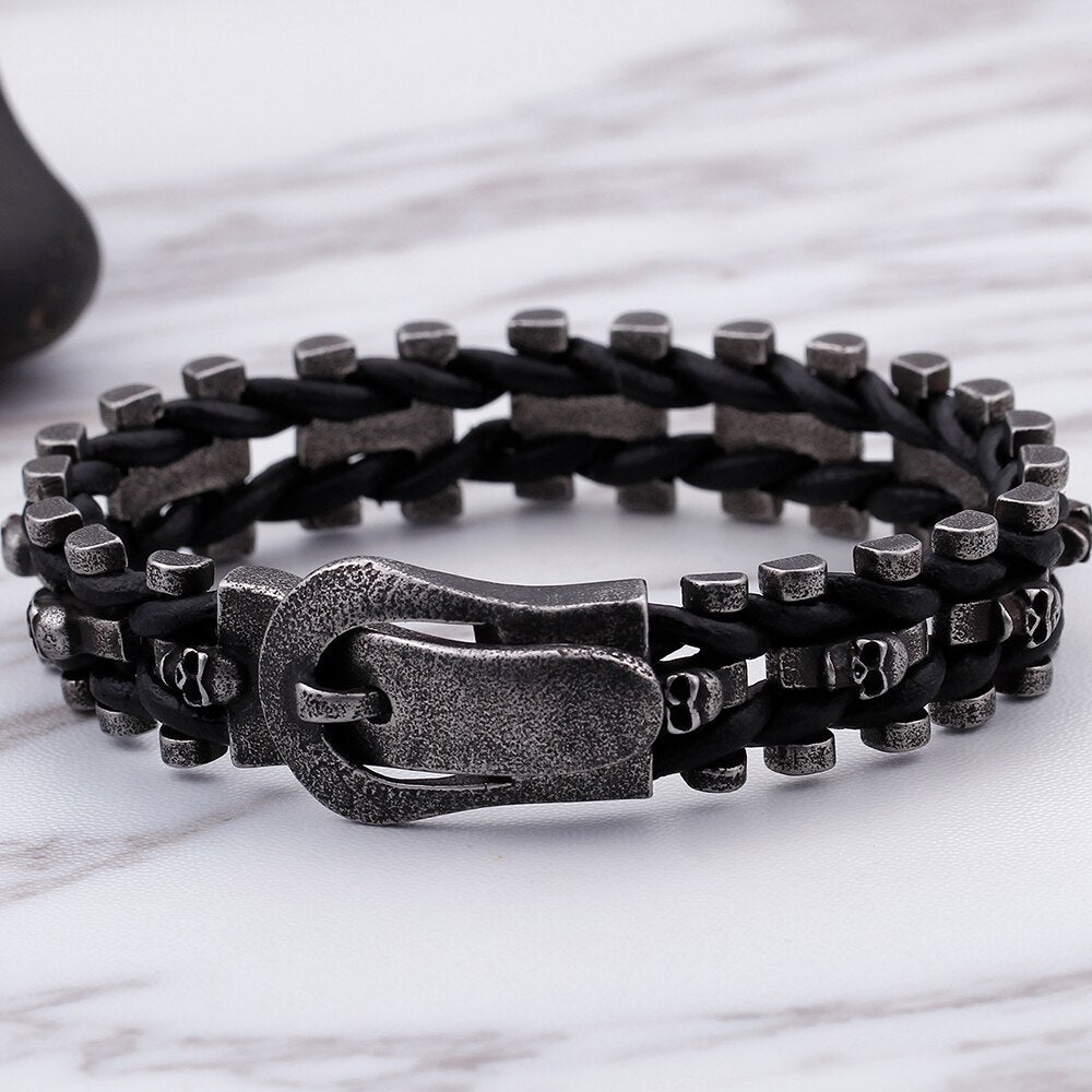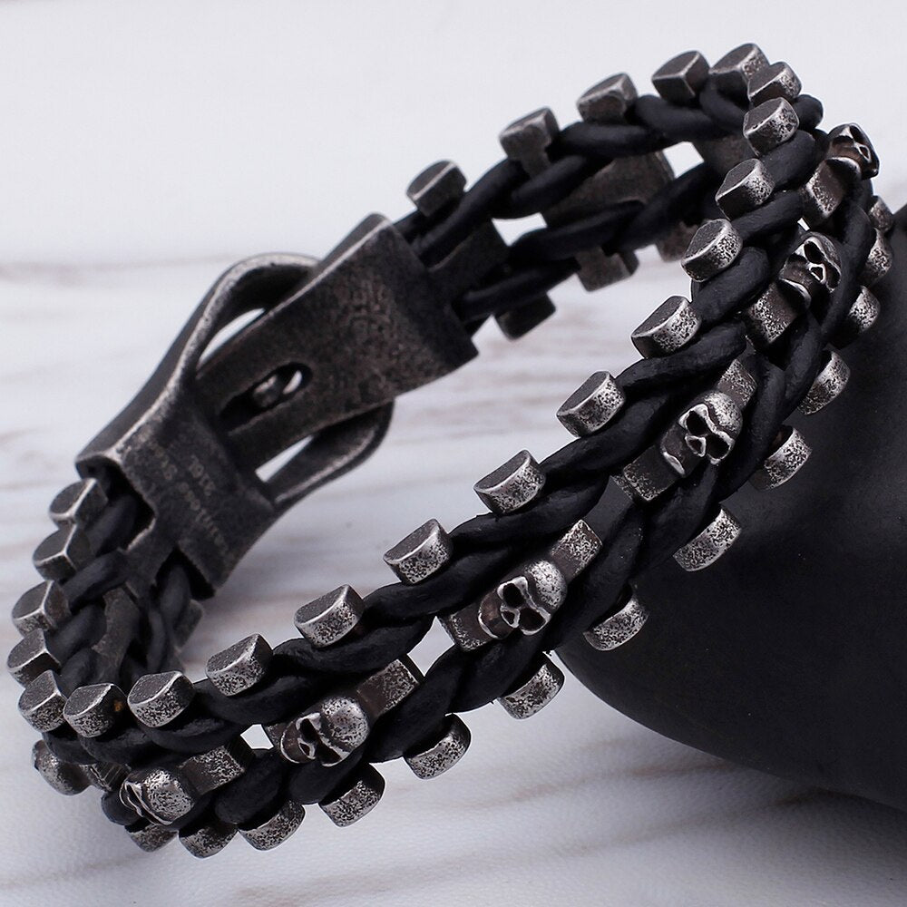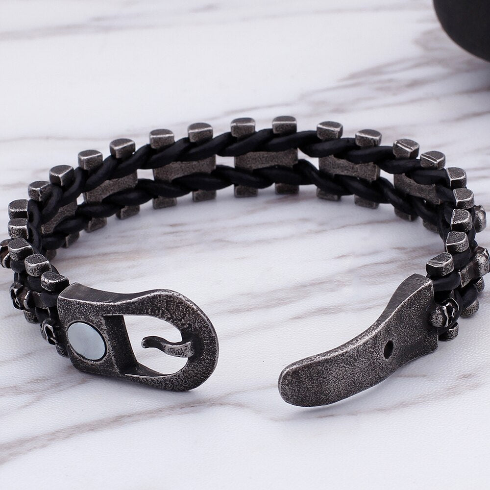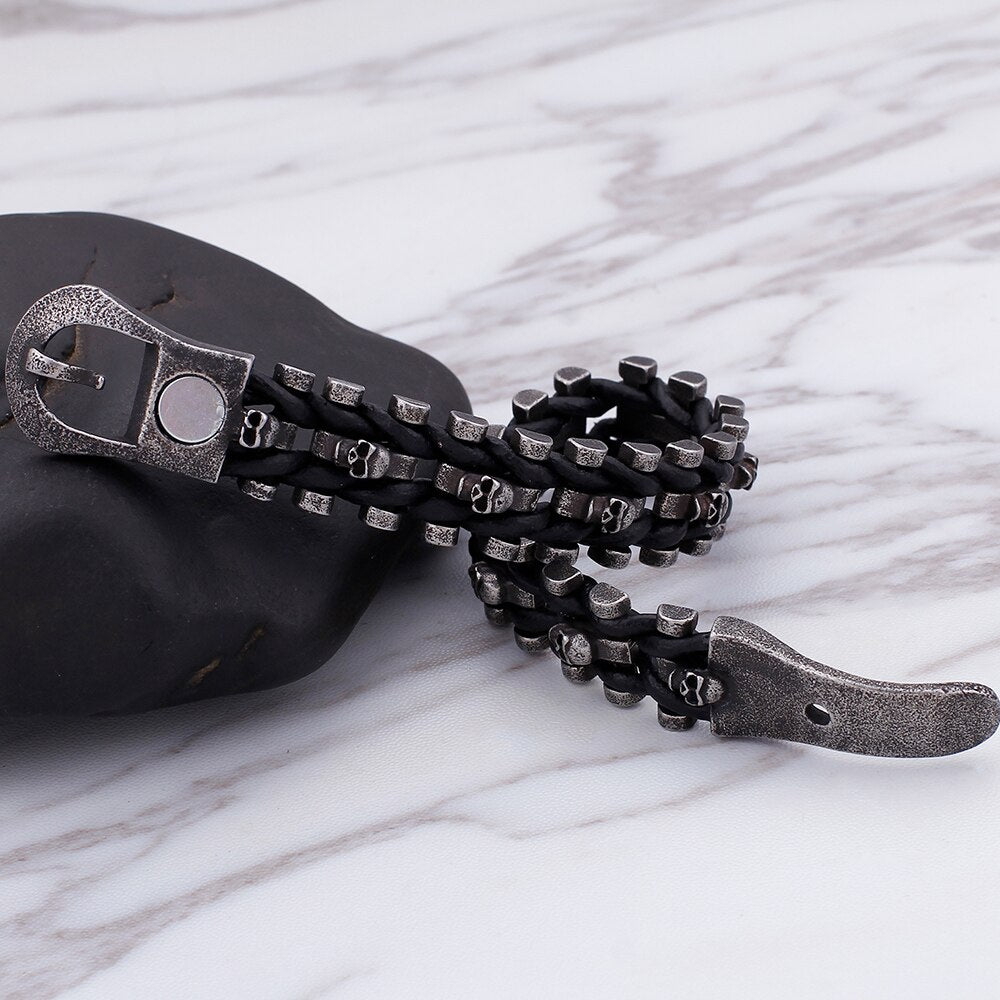 Pulsera gótica con calavera para hombre, de cuero, con hebilla magnética, ideal como regalo de graduación.