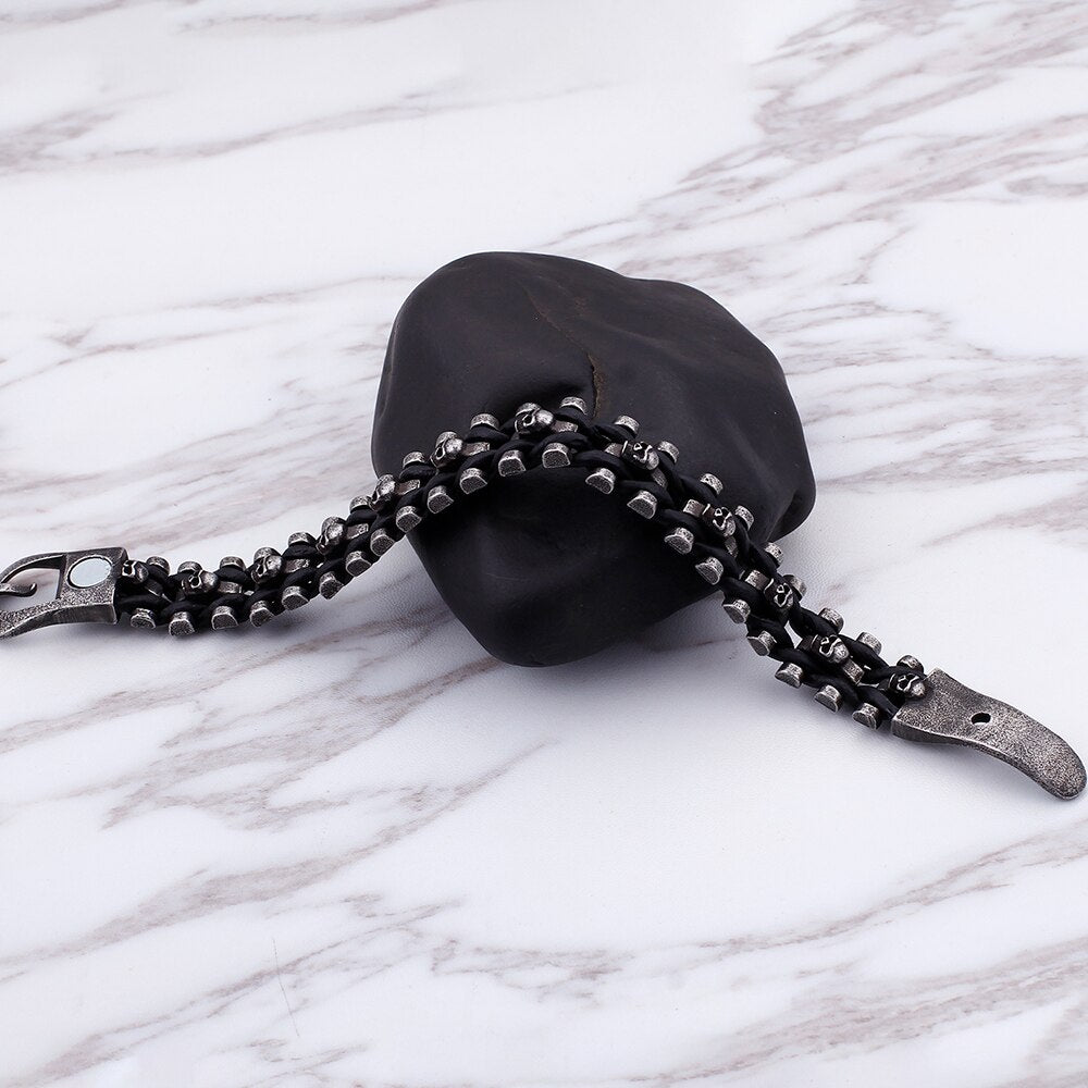 Pulsera de calavera para hombre: pulseras de cuero