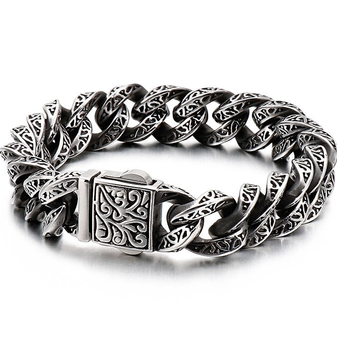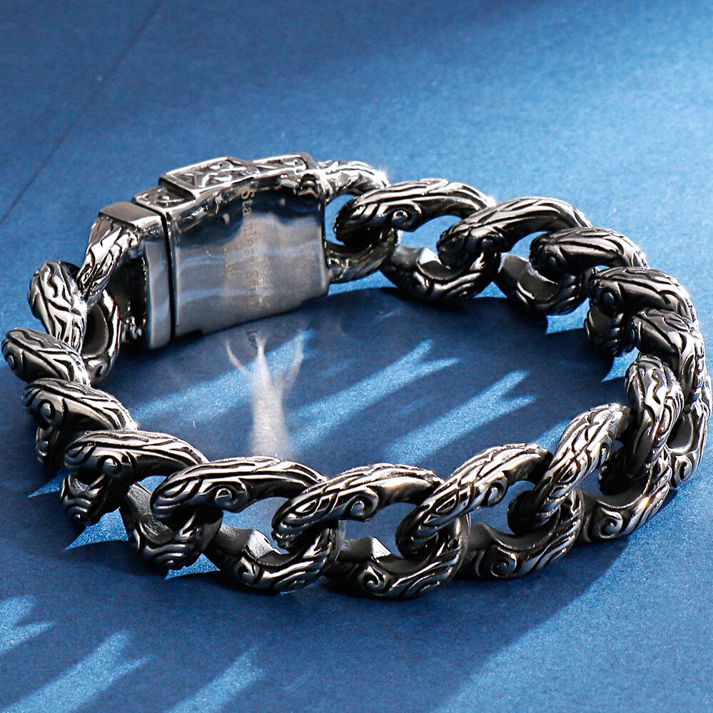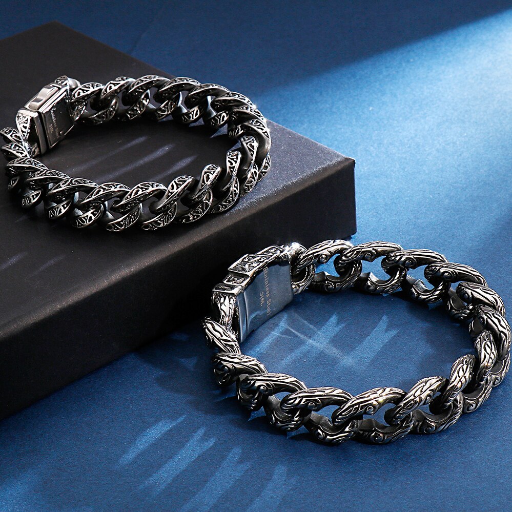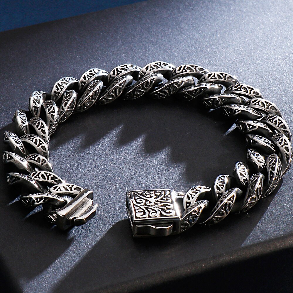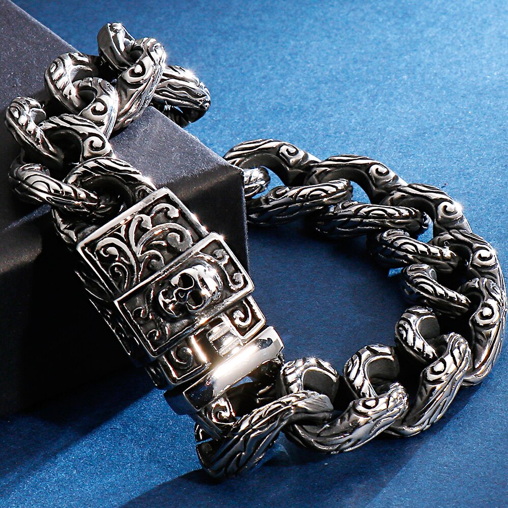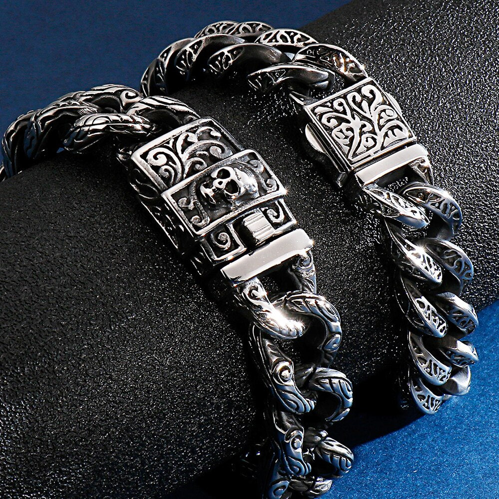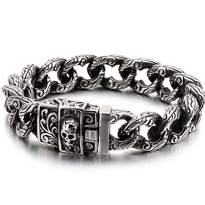 Pulsera de cadena con cabeza de calavera gótica para hombre, pulsera de acero inoxidable con dije de motociclista.