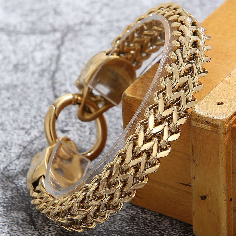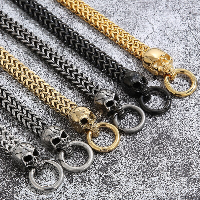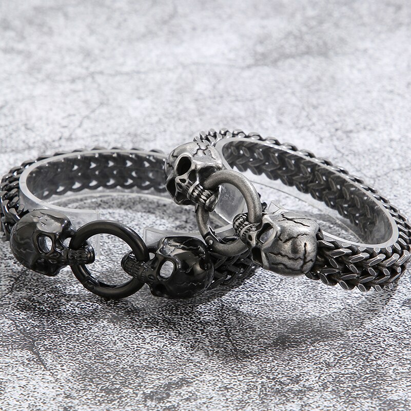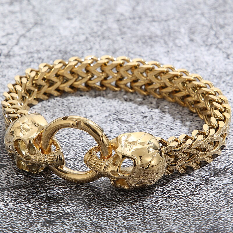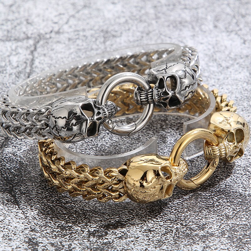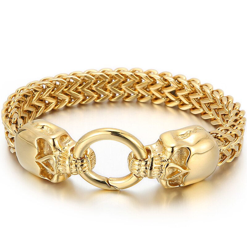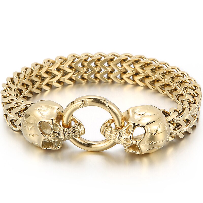 Pulsera con dije de calavera gótica para hombre, estilo punk rock, estilo motero, de acero inoxidable chapado en oro, accesorios de joyería.