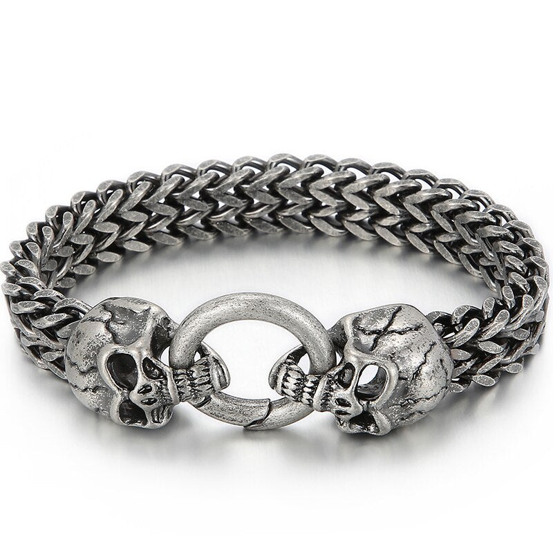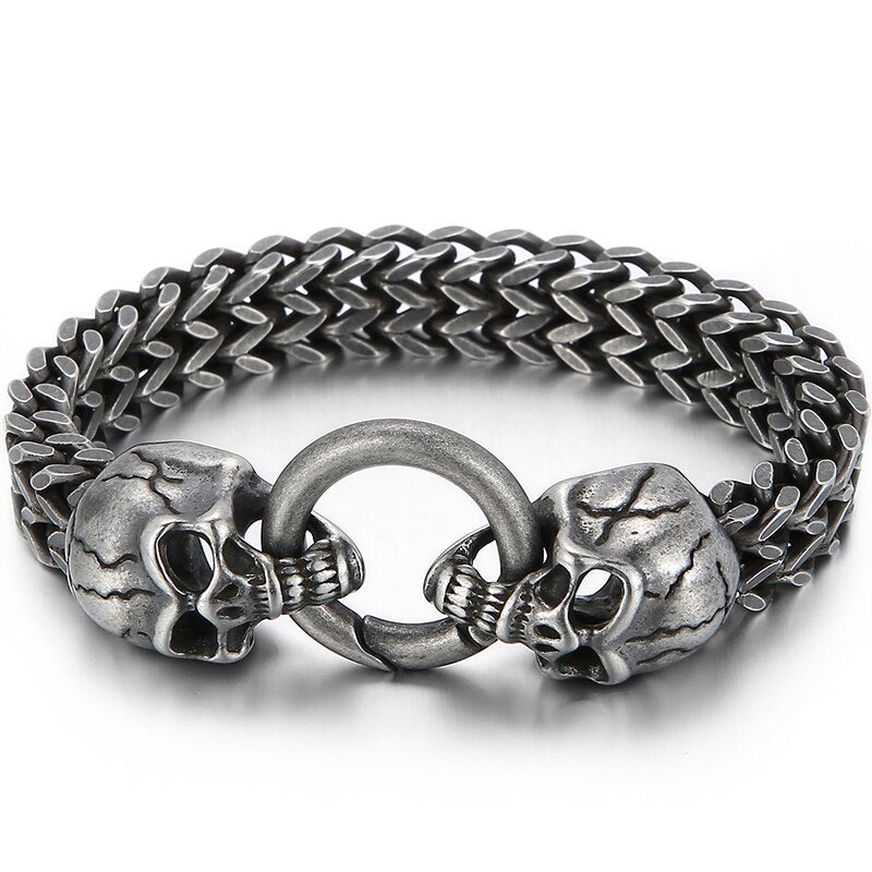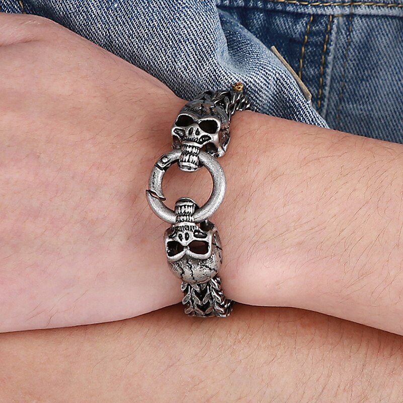 Pulsera con dije de calavera gótica para hombre, estilo punk rock y motero.