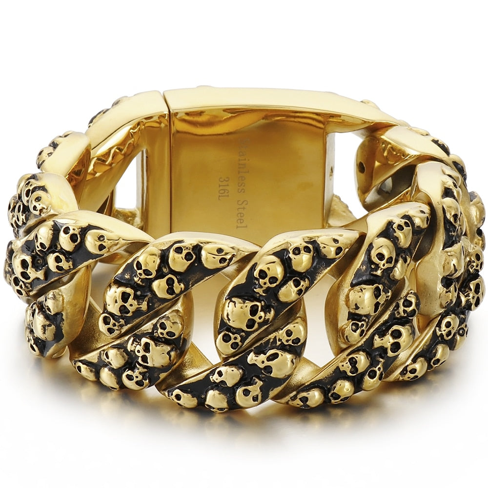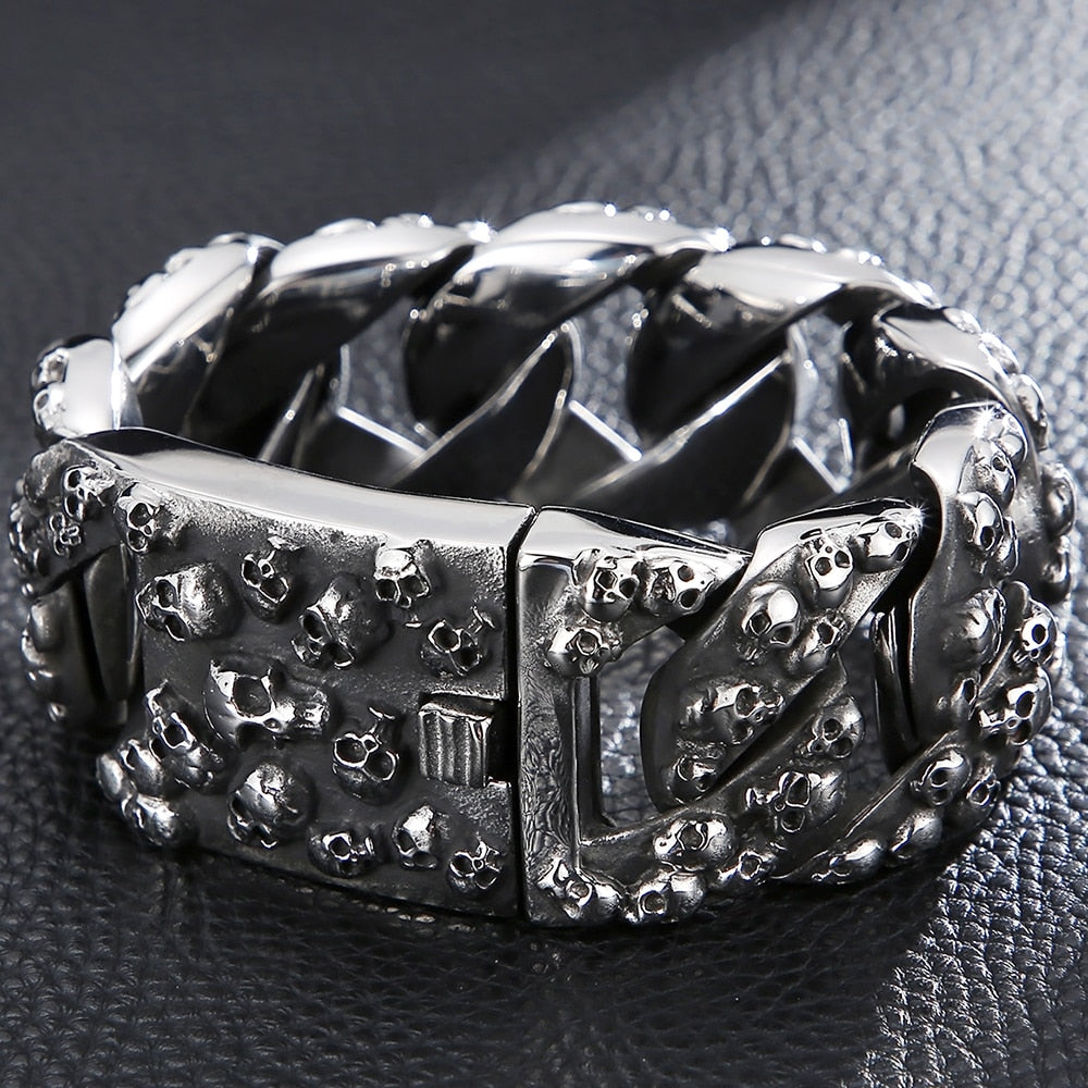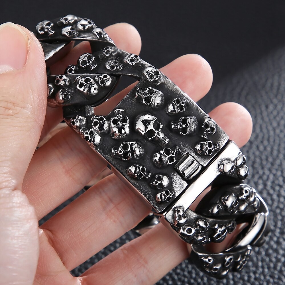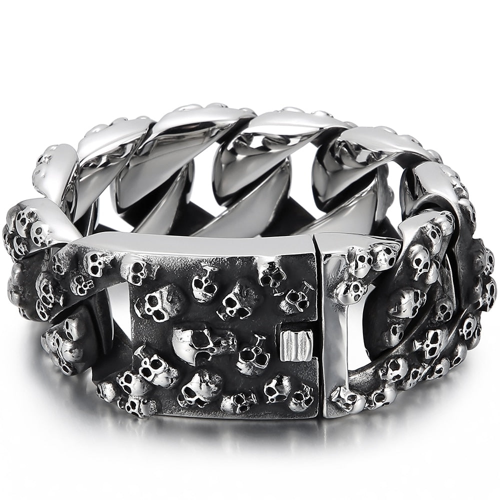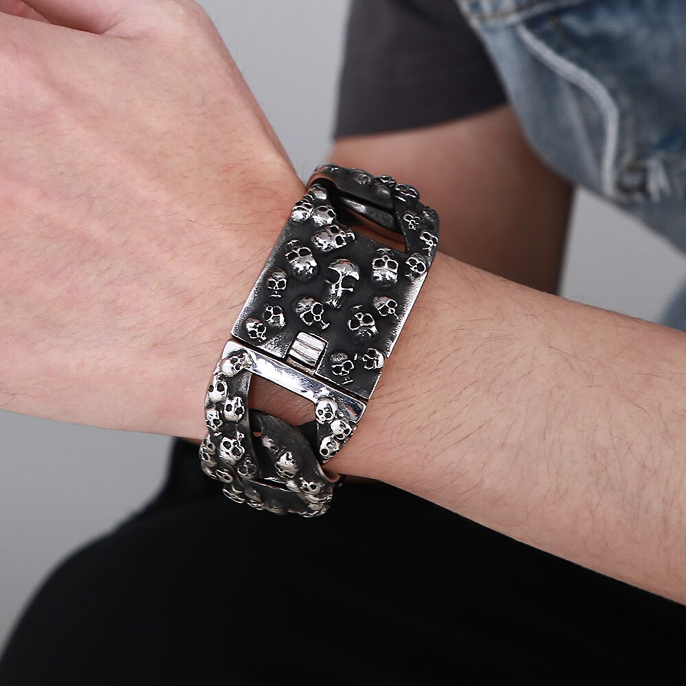 Pulseras de cadena con calavera gótica para hombre, joyería steampunk de motociclista, pulsera enorme de acero inoxidable para hombre, envío directo