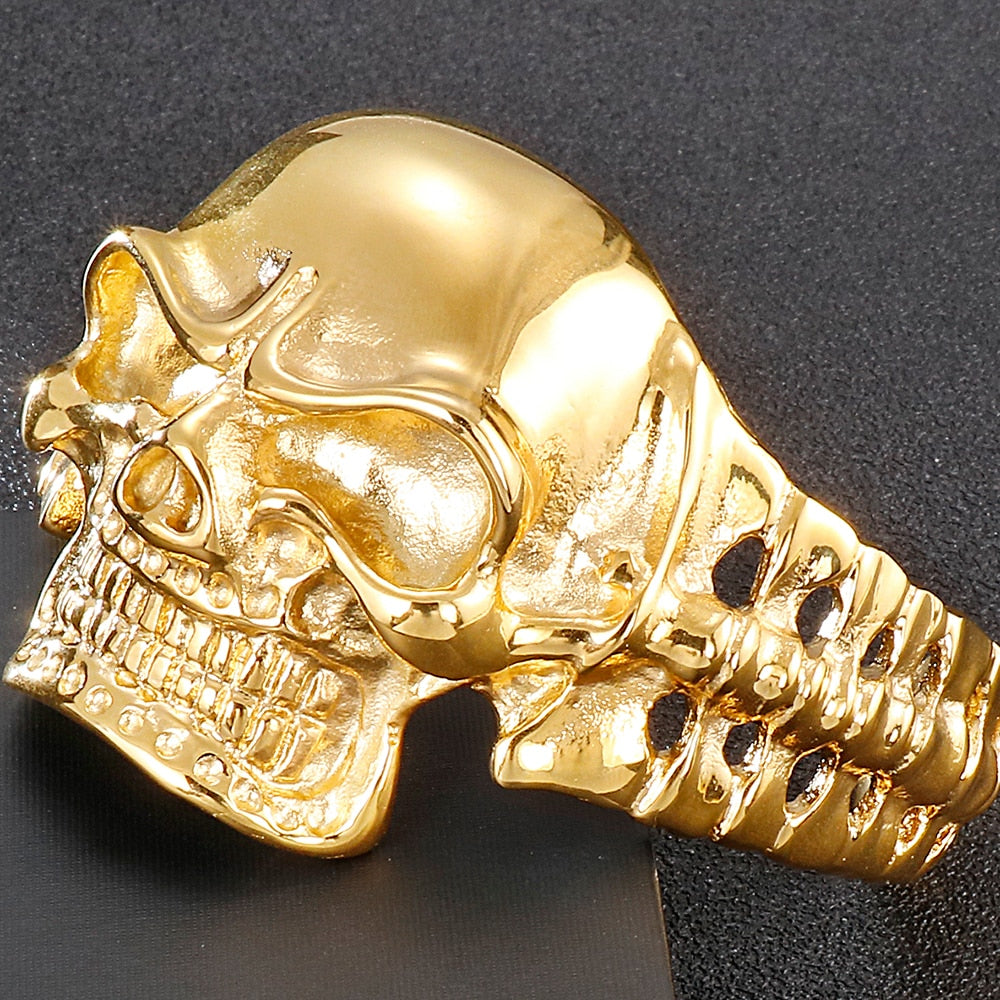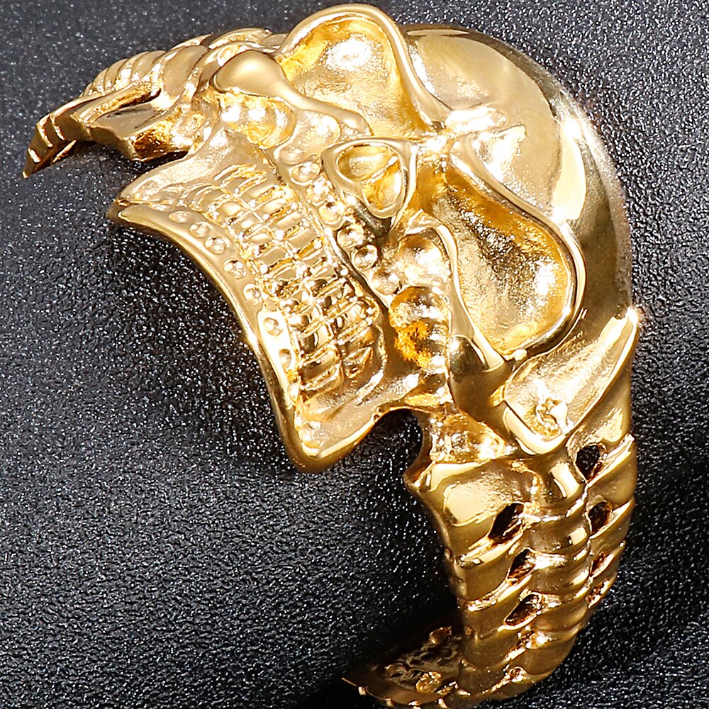 Pulsera de acero inoxidable chapada en oro de lujo para hombre con diseño de calavera gótica.