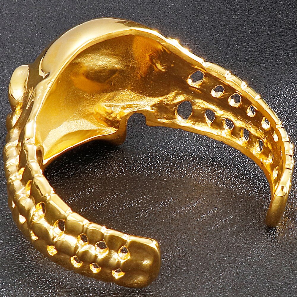 Pulsera de puño abierto con calavera gótica para hombre, brazalete de acero inoxidable chapado en oro de lujo, accesorio de joyería para hombre, brazalete para hombre.