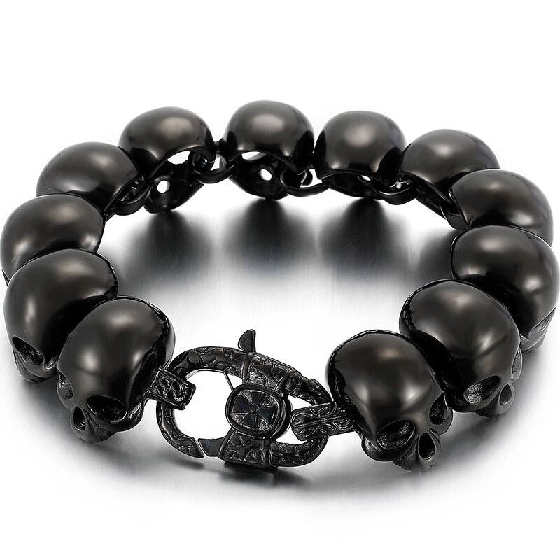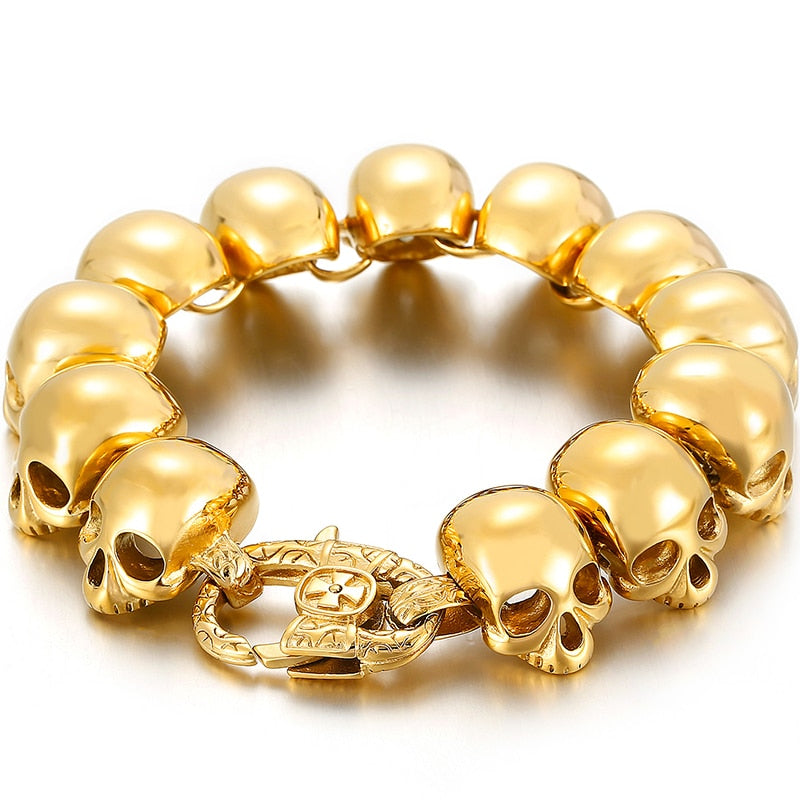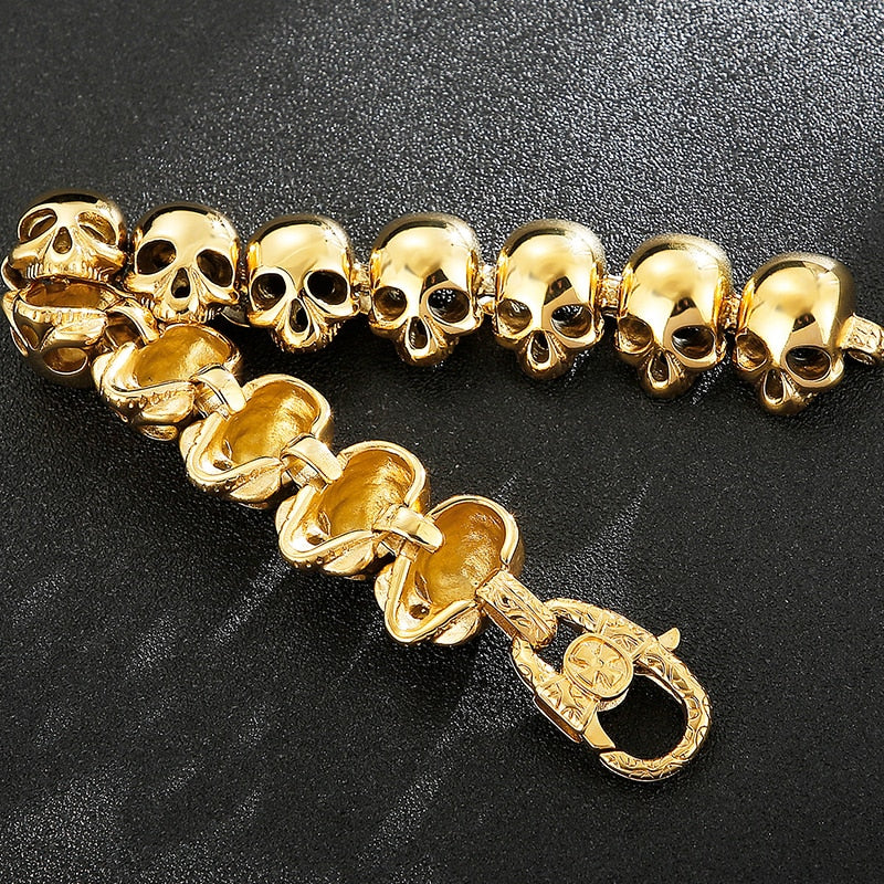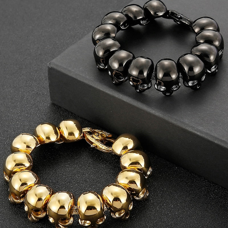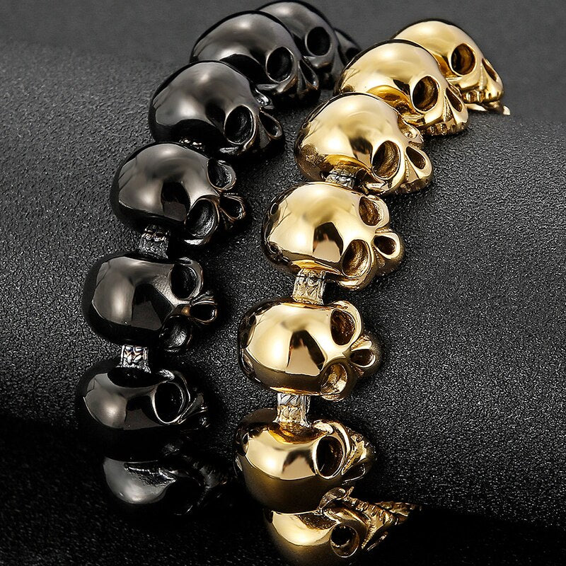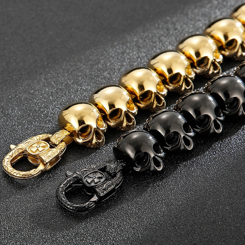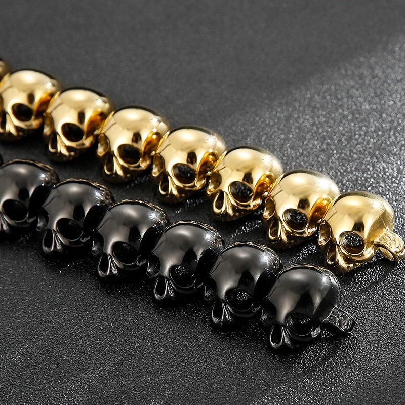 Pulseras de cadena con calaveras góticas para hombre, de lujo, de acero inoxidable chapado en oro negro, para hombre.