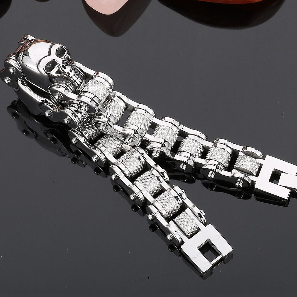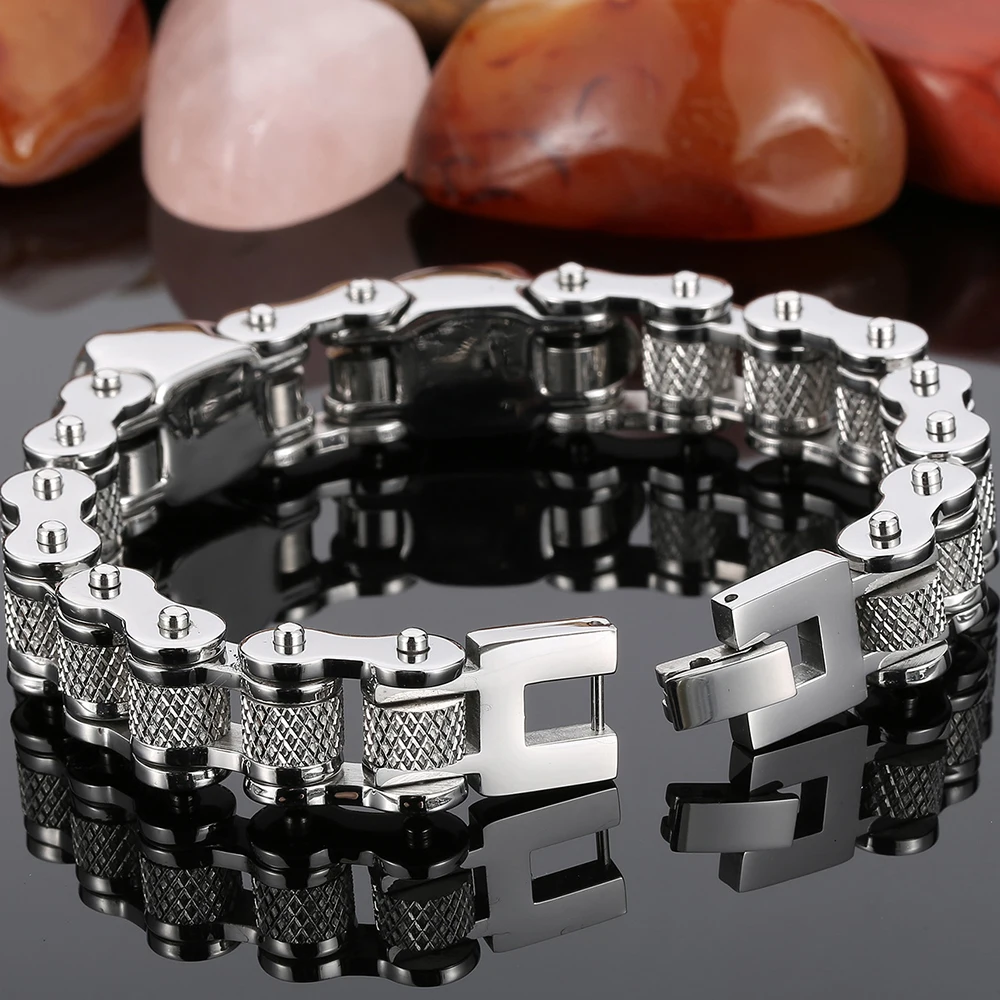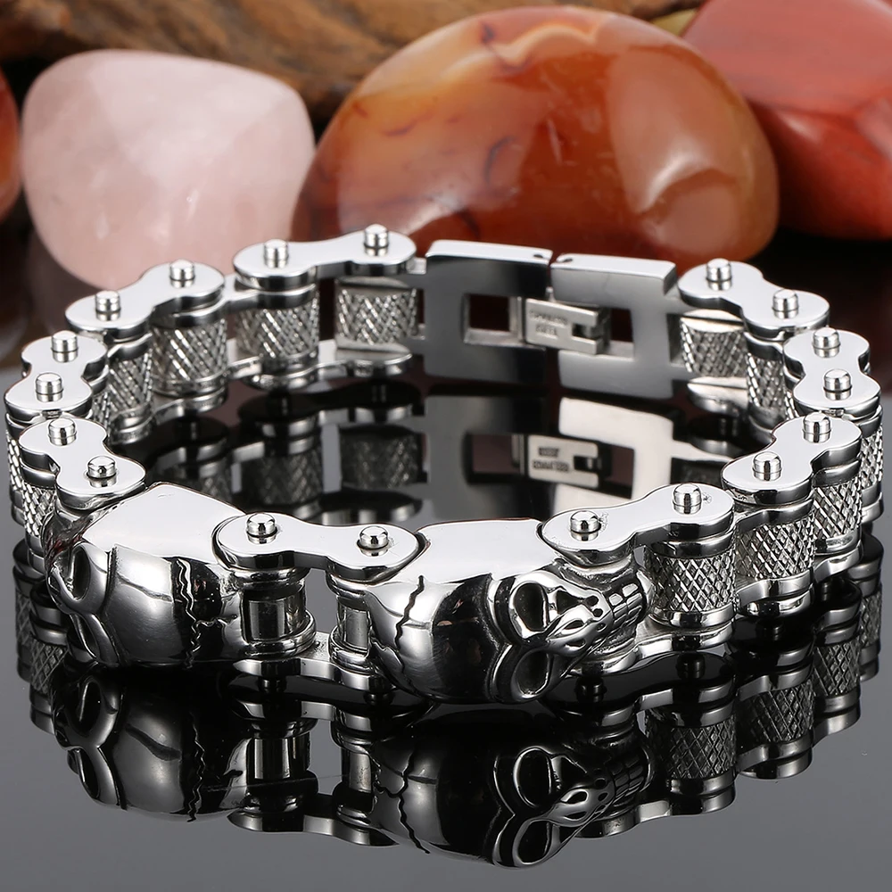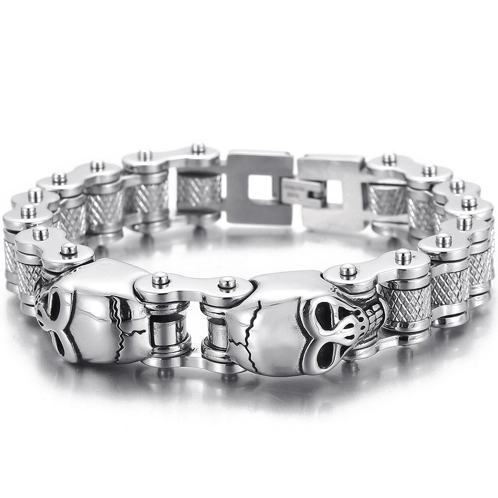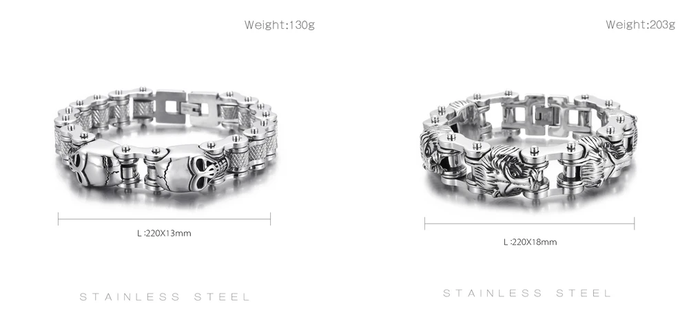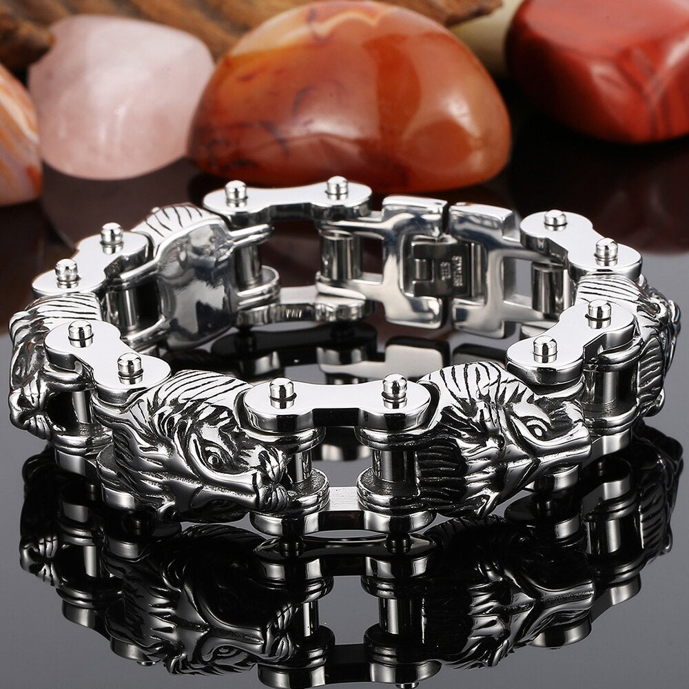Pulsera con dije de calavera gótica con cabeza de león para hombre, de acero inoxidable, cadena de mano enorme de 13/18 mm, para motocicleta o bicicleta, joyería