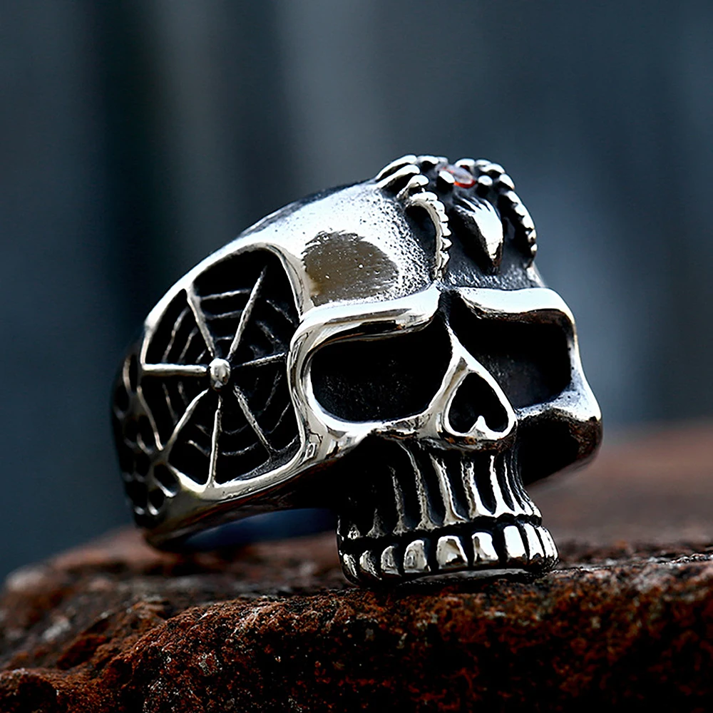 Anillos góticos de acero inoxidable con calavera para hombres y mujeres, diseño único, anillo de banda de motocicleta.