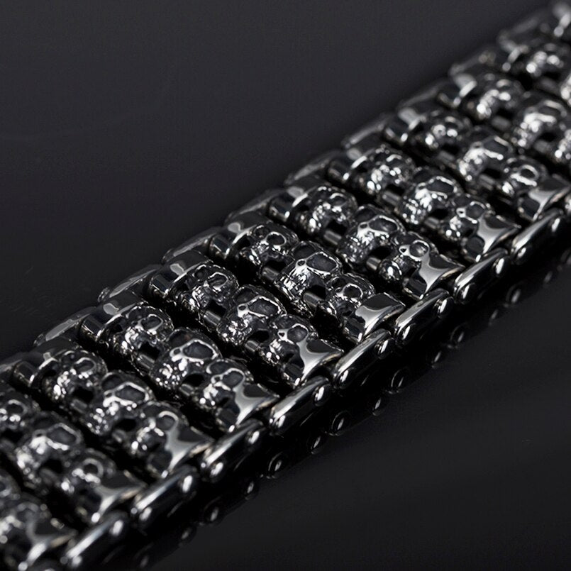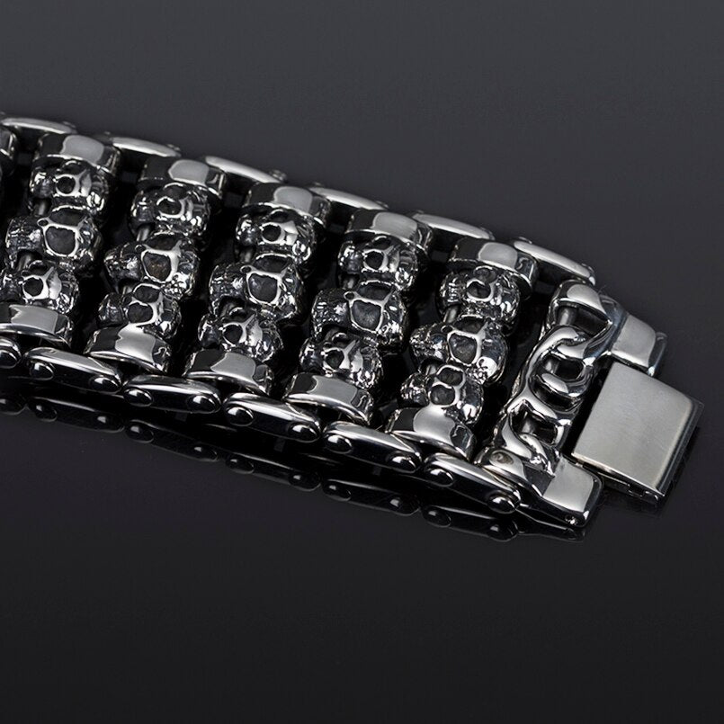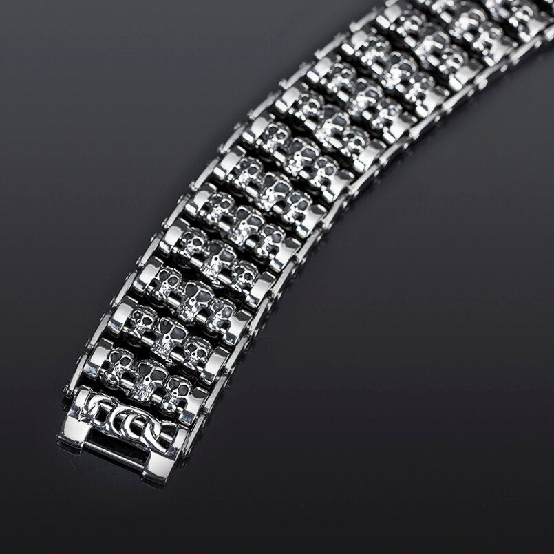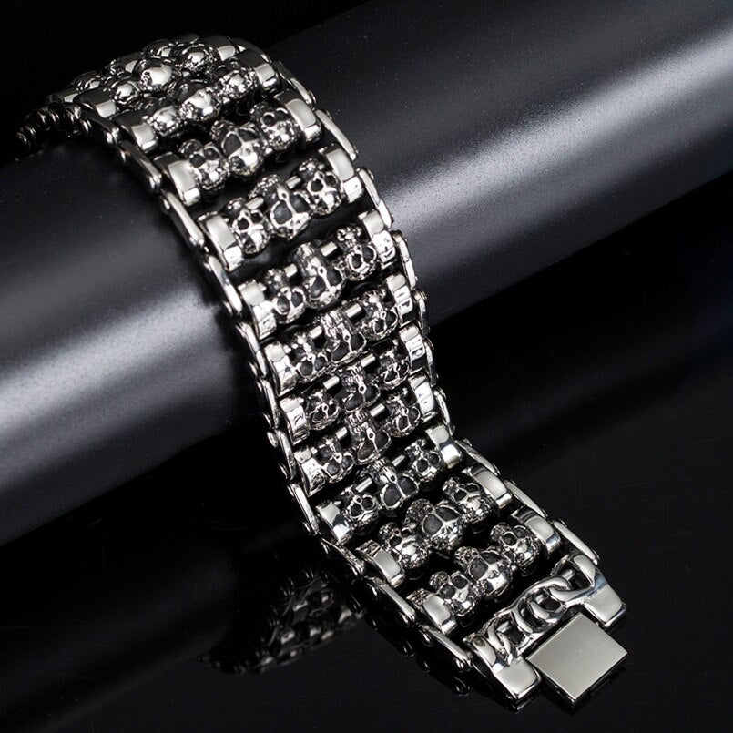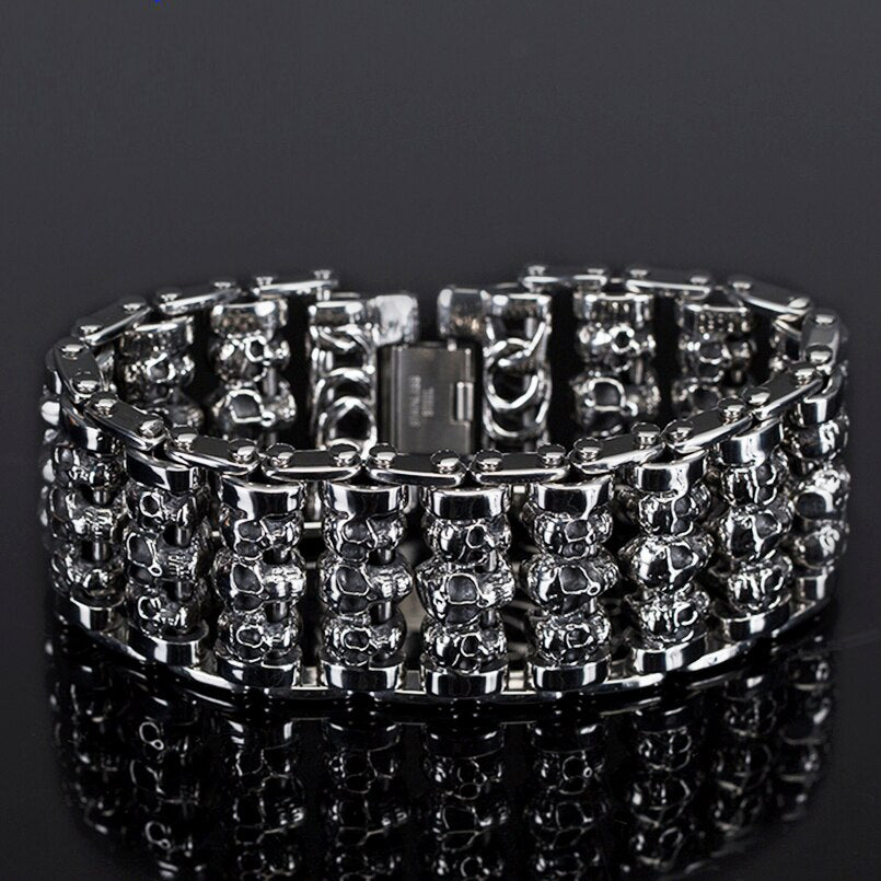 Pulsera de acero inoxidable macizo estilo gótico con calavera para hombre, estilo punk rock, esqueleto masivo, joyería de motociclista, pulseras de amistad para hombre