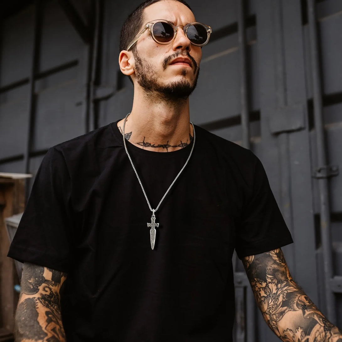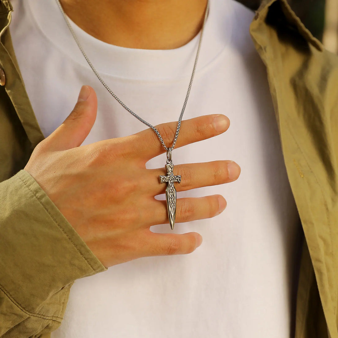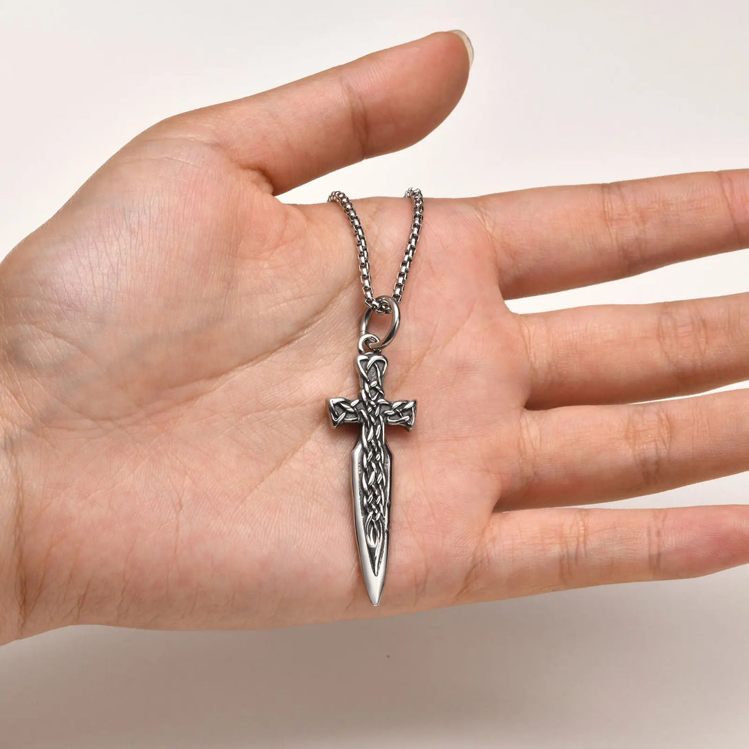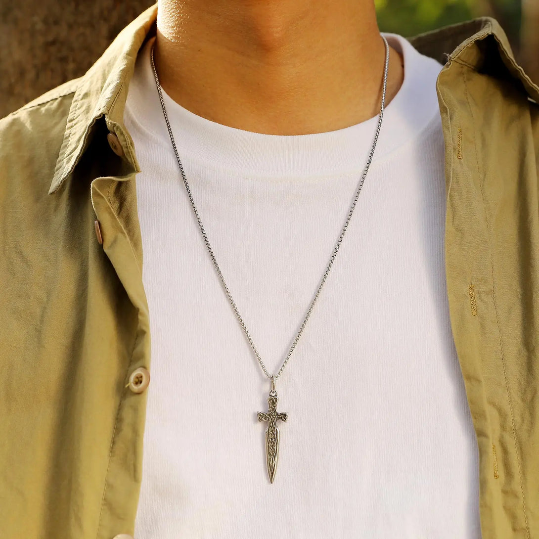 Collares góticos con forma de espada para hombres y niños, colgantes de acero inoxidable con cadena de caja, joyería rock punk, regalos de aniversario.