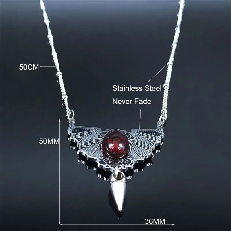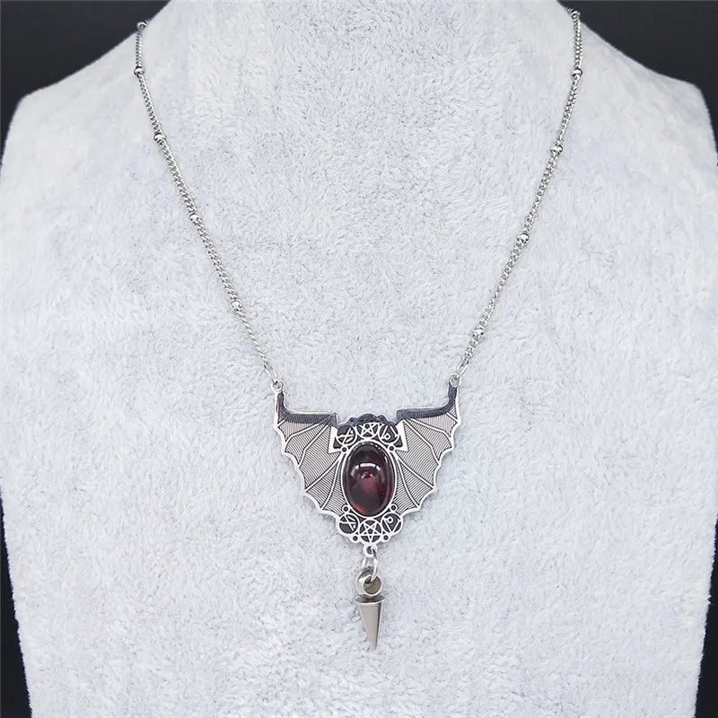 Estilo: Collar de acero inoxidable con alas de murciélago vampiro gótico para mujer