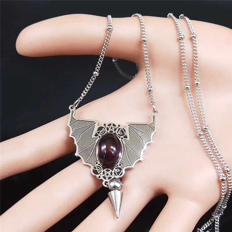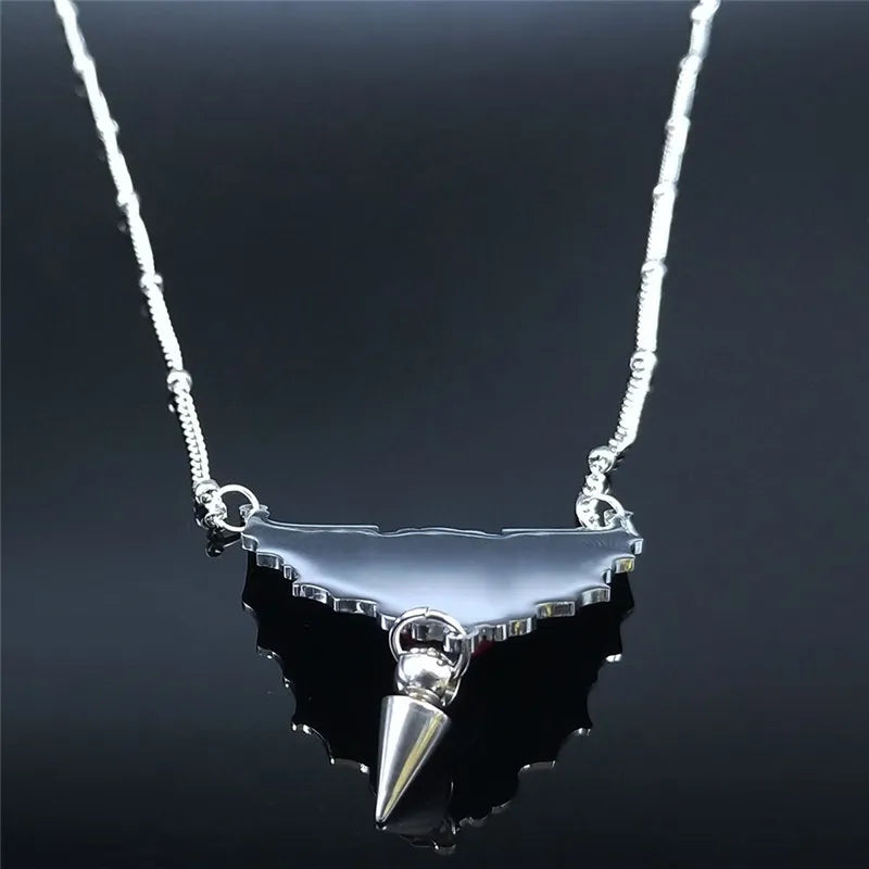Collar gótico de acero inoxidable con alas de murciélago vampiro para mujer, color plata, regalo de bruja, collares, cadena de joyería de hip hop.
