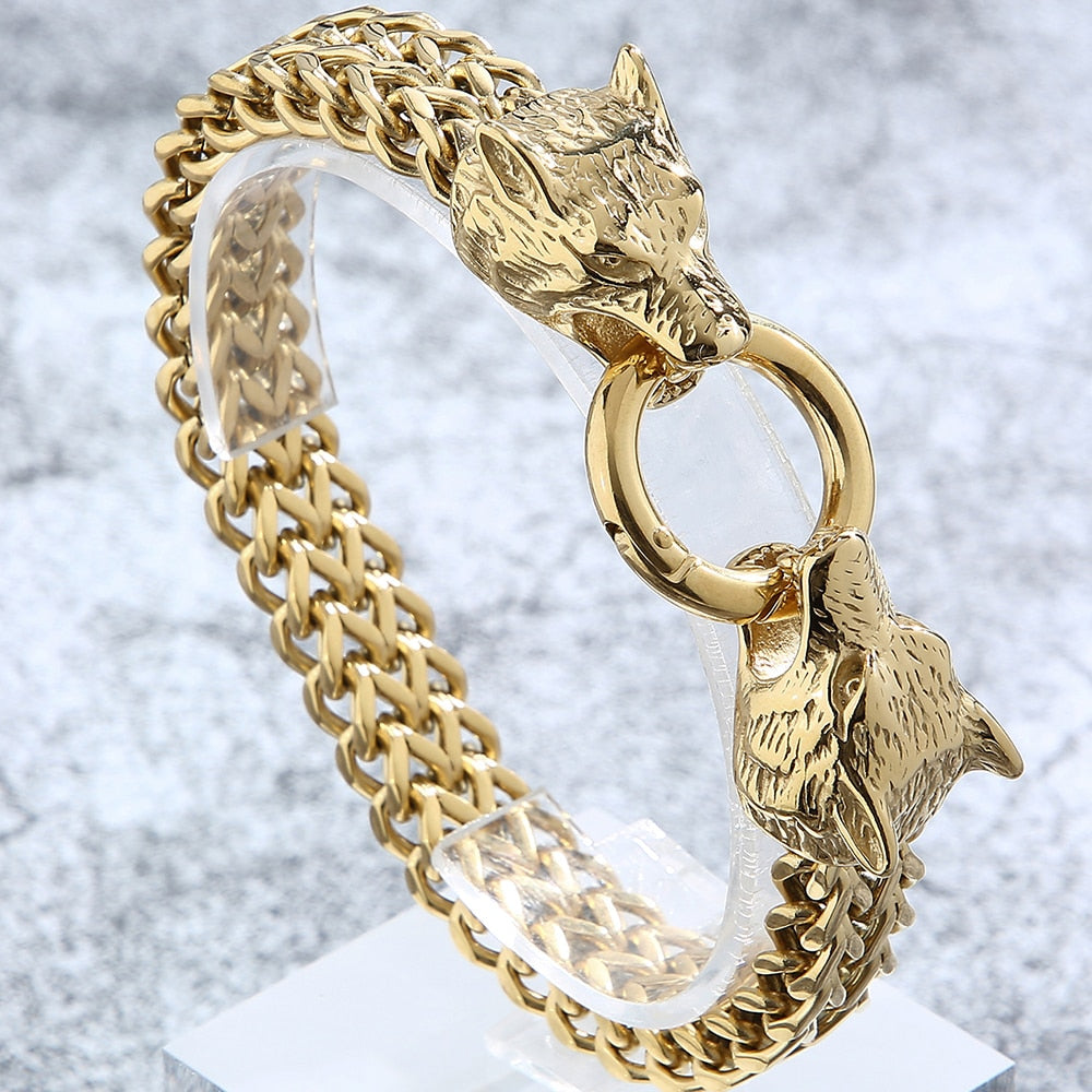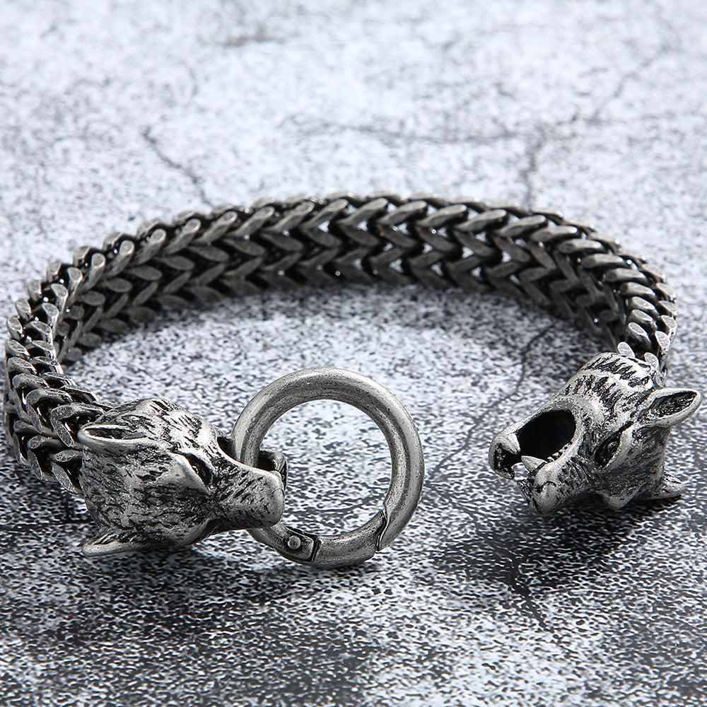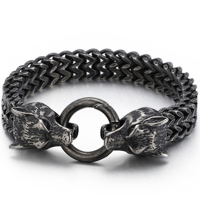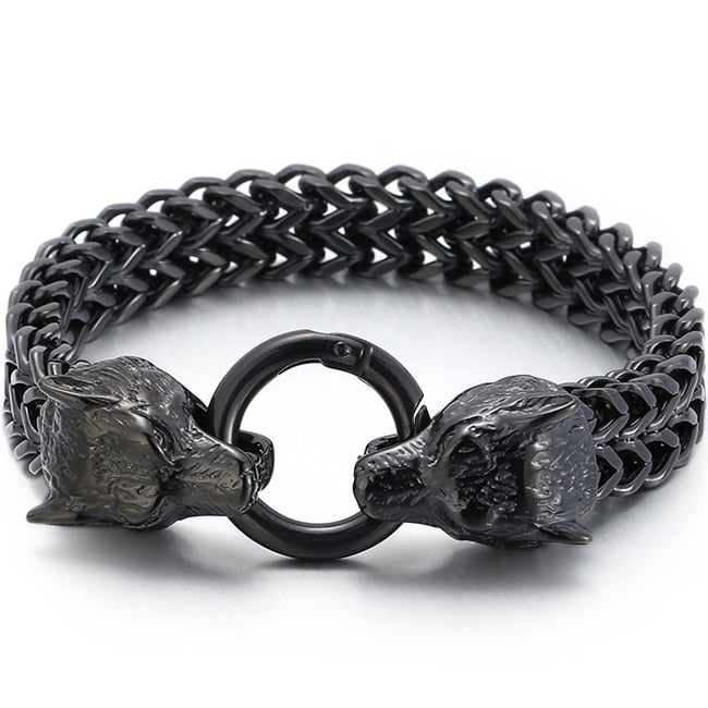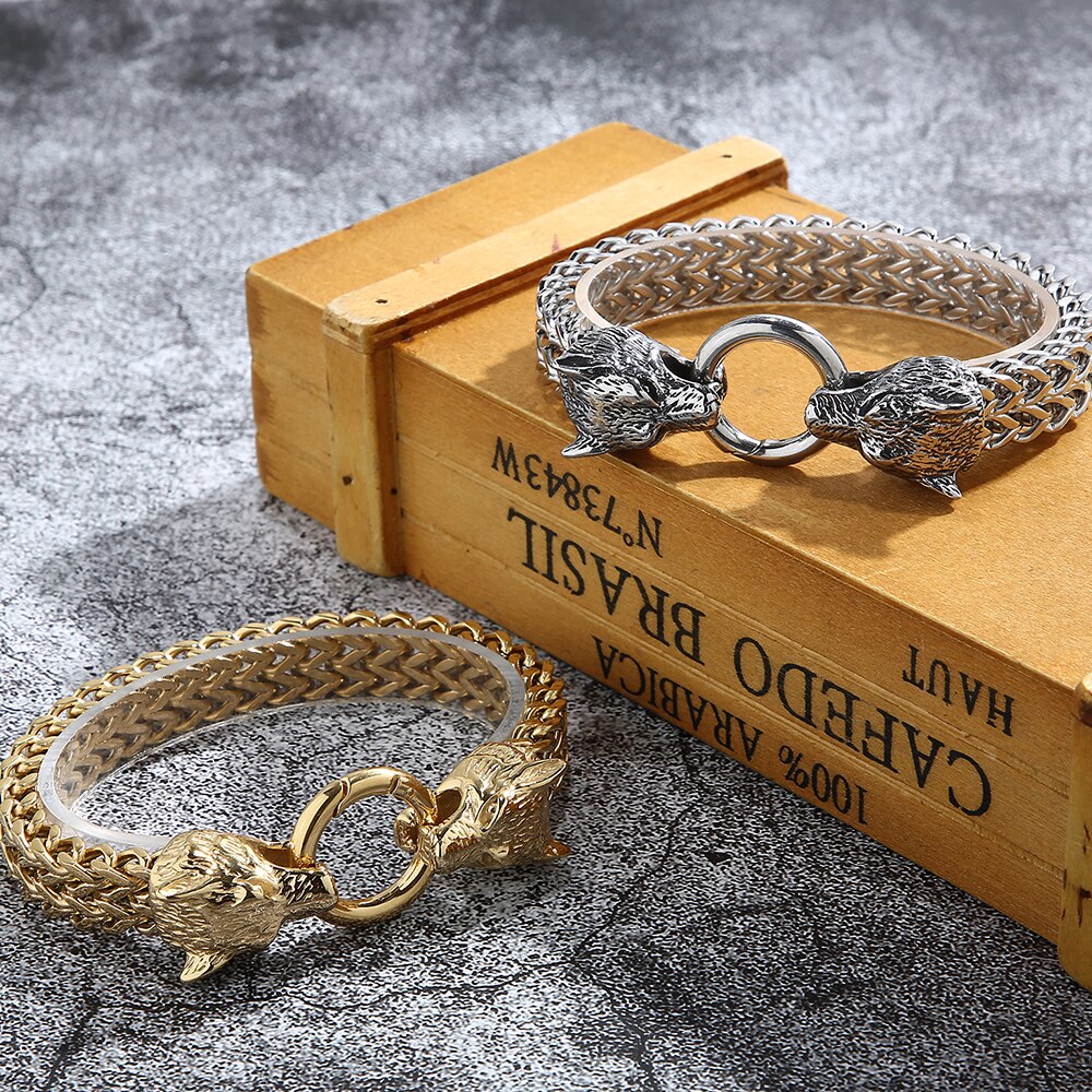 Pulsera gótica con cabeza de lobo para hombre, de acero inoxidable, de 19 a 23 cm, estilo vikingo rockero.