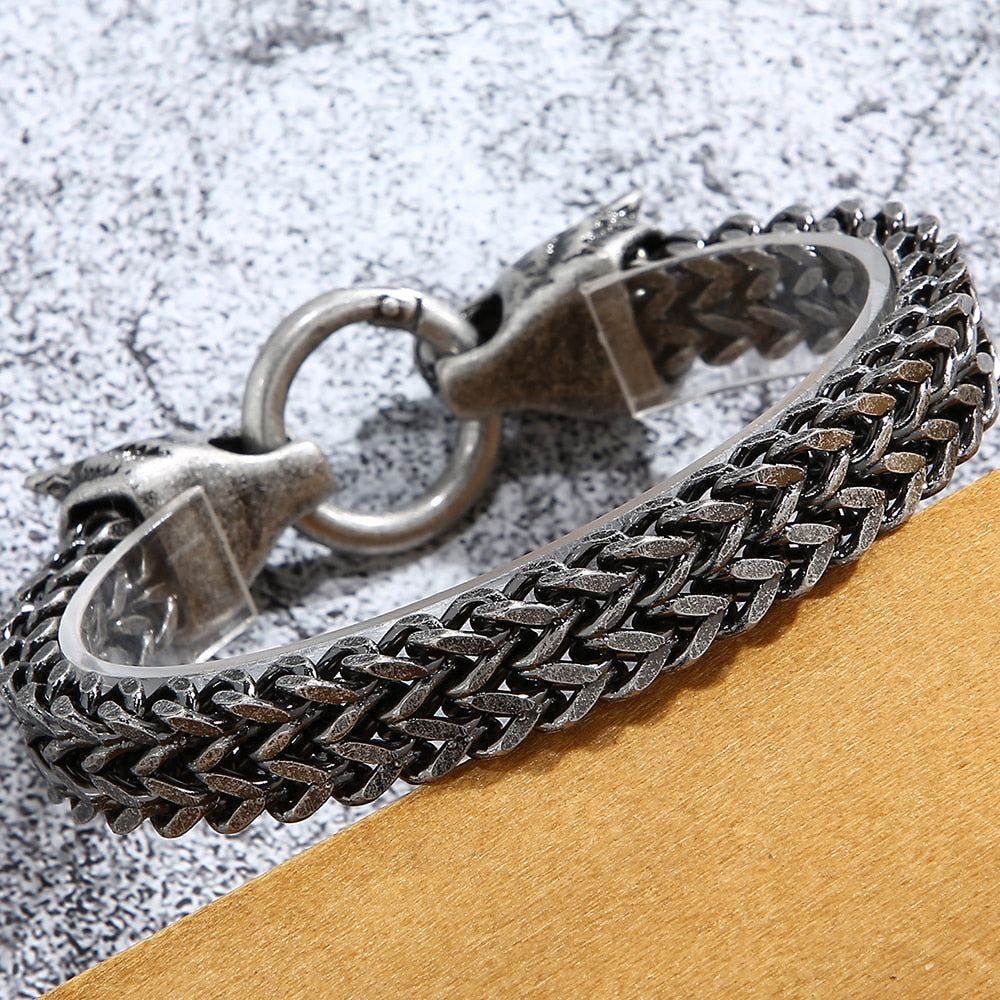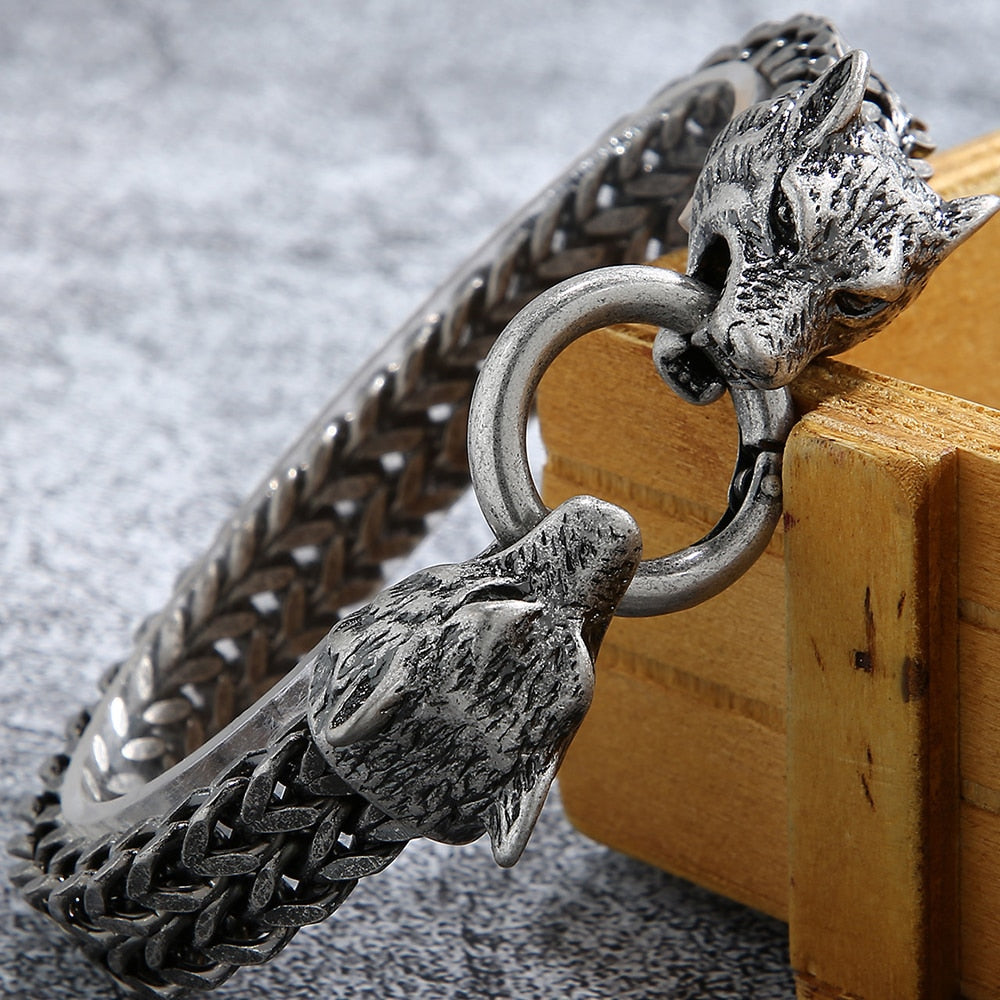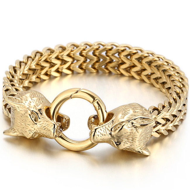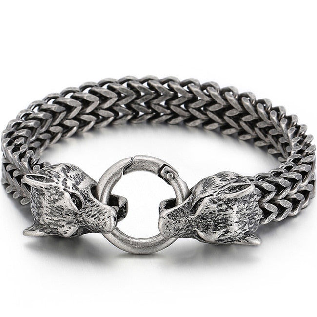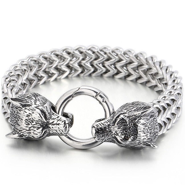 Pulsera gótica con cabeza de lobo para hombre, de acero inoxidable, de 19 a 23 cm, estilo vikingo rockero.