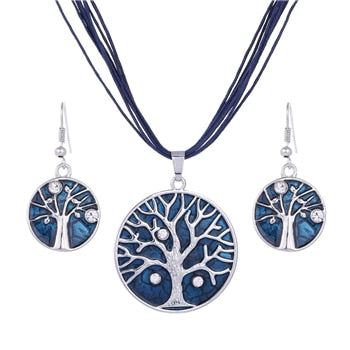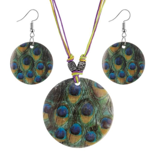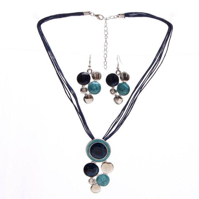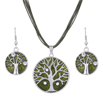 Conjuntos de joyas con colgante de cuentas redondas y cadena de cuerda verde