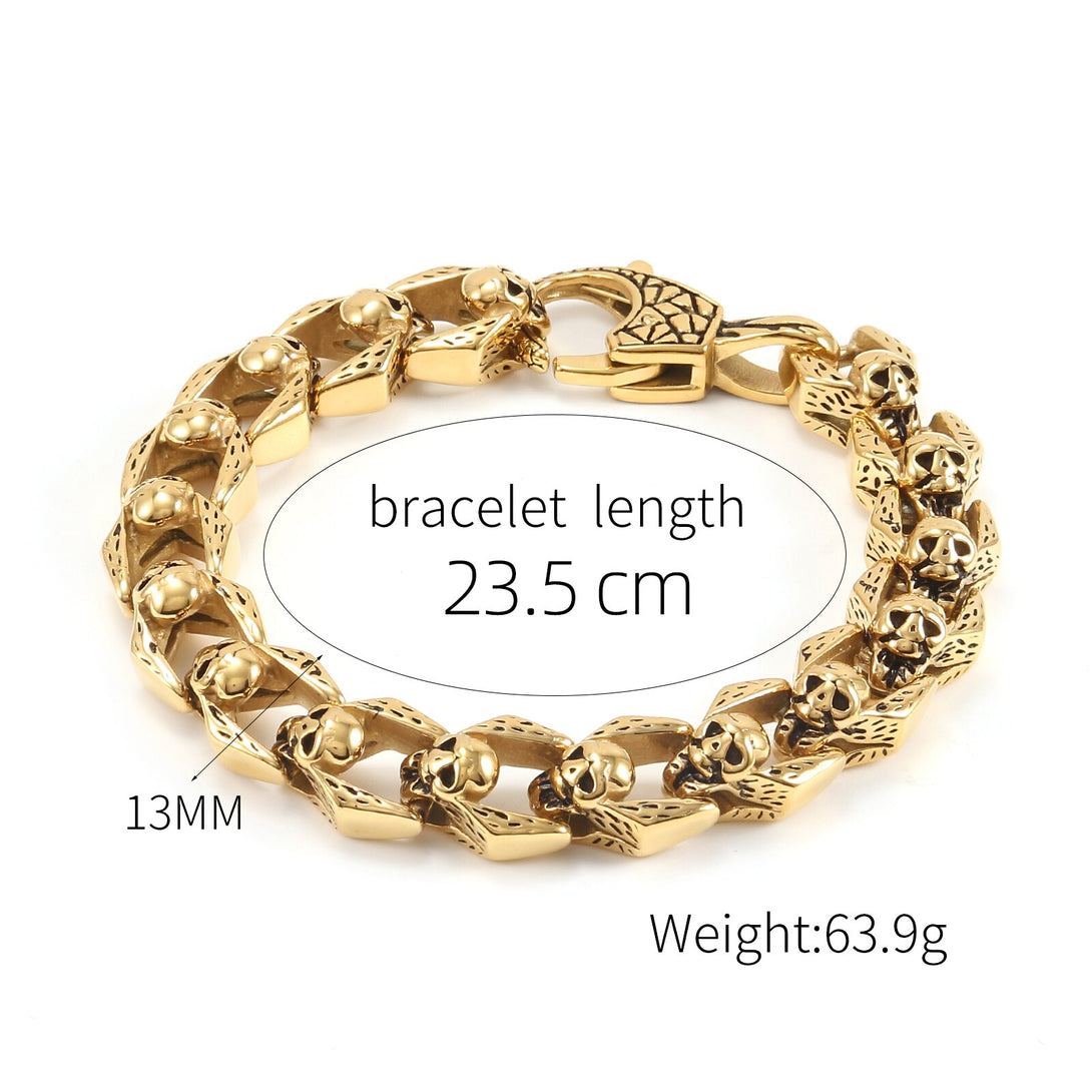 Pulsera de calavera de Halloween para hombres y mujeres, de acero inoxidable 316L, color dorado, estilo retro hip hop, accesorios de joyería de cadena de moda.