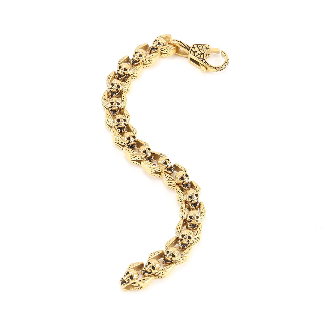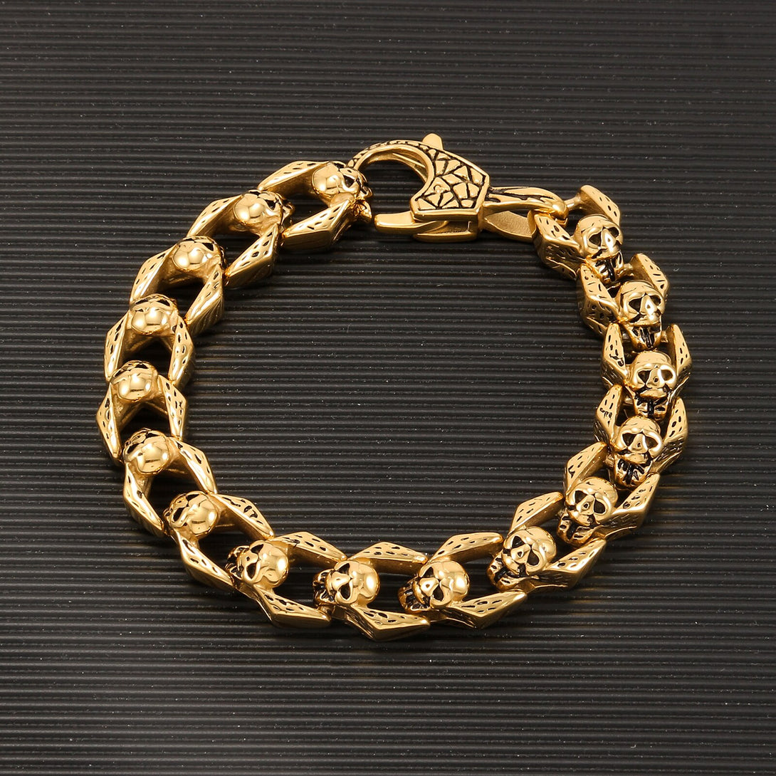 Pulsera de calavera de Halloween para hombres y mujeres, de acero inoxidable 316L, color dorado, estilo retro hip hop.