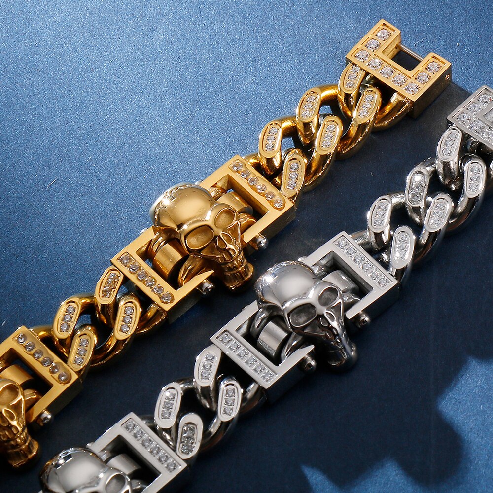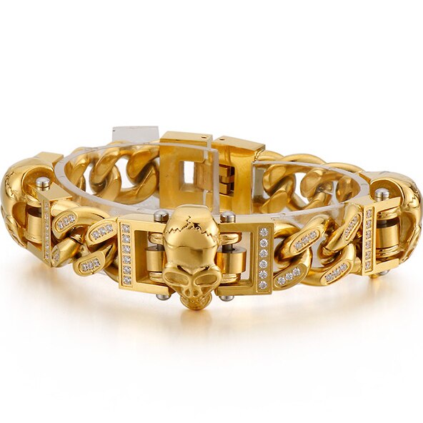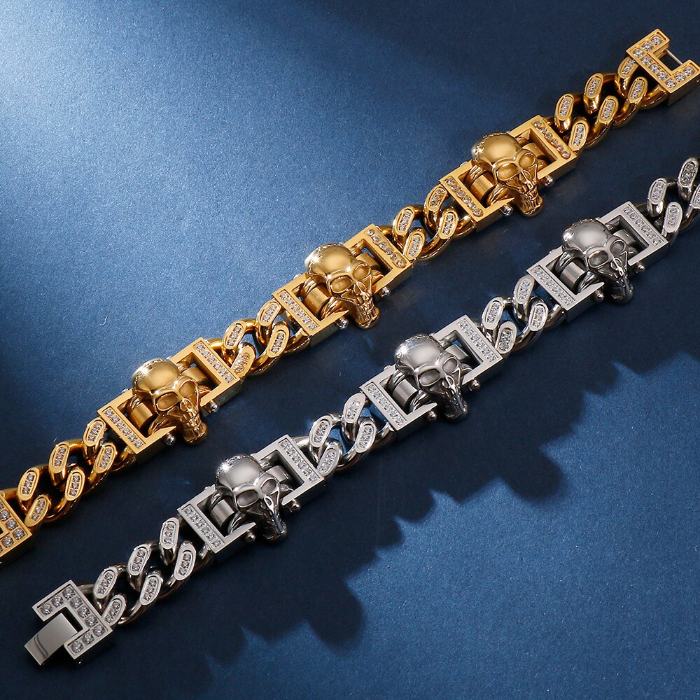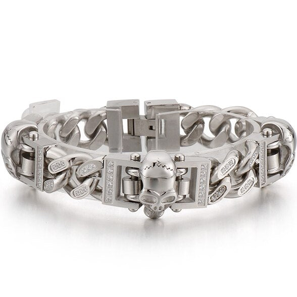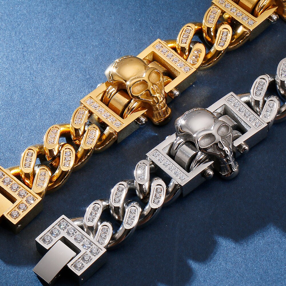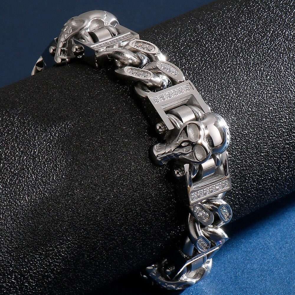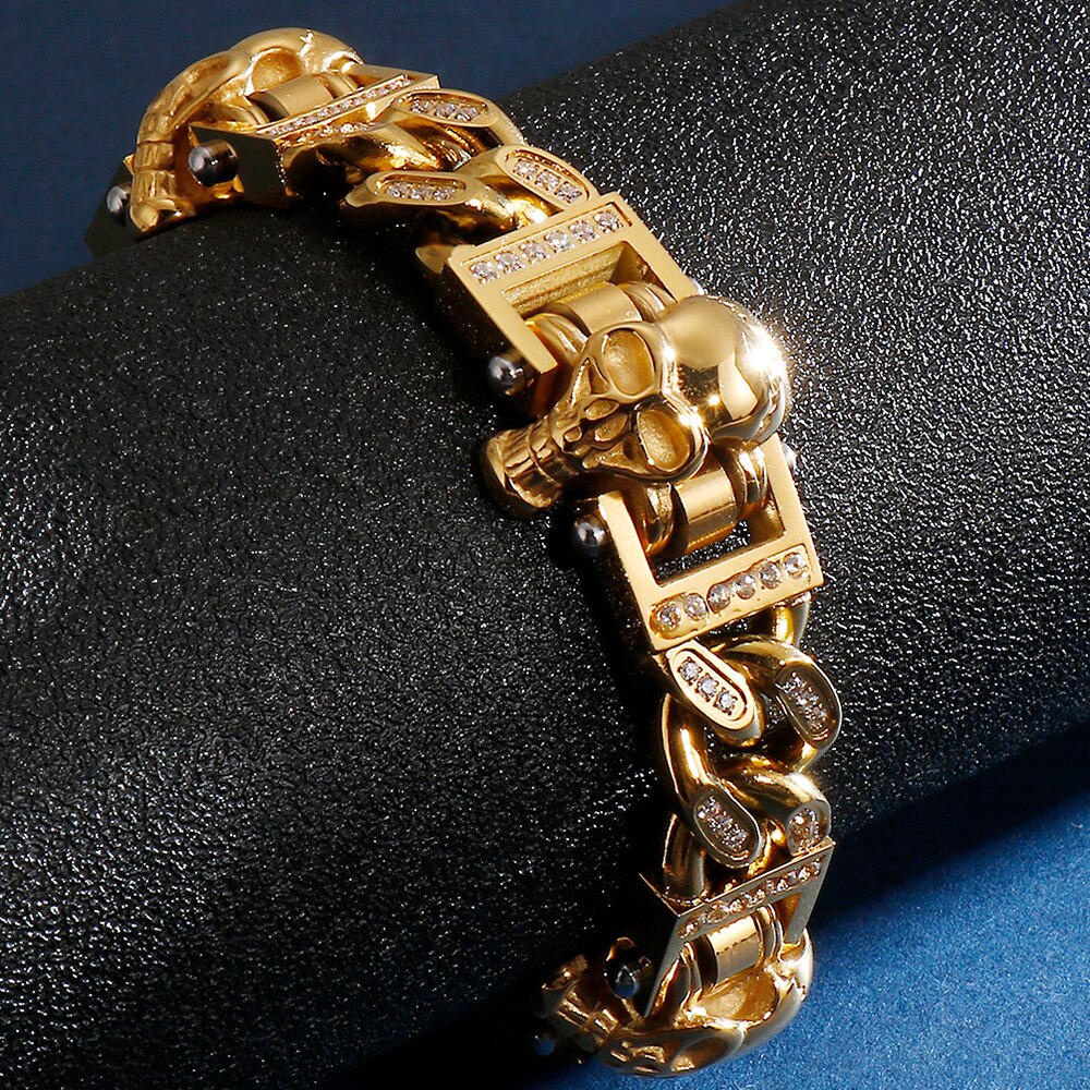 Pulseras de acero inoxidable de metal pesado para hombre con circonita cúbica, estilo steampunk rock, estilo gótico, con cabeza de calavera, joyería para fiesta, regalos.
