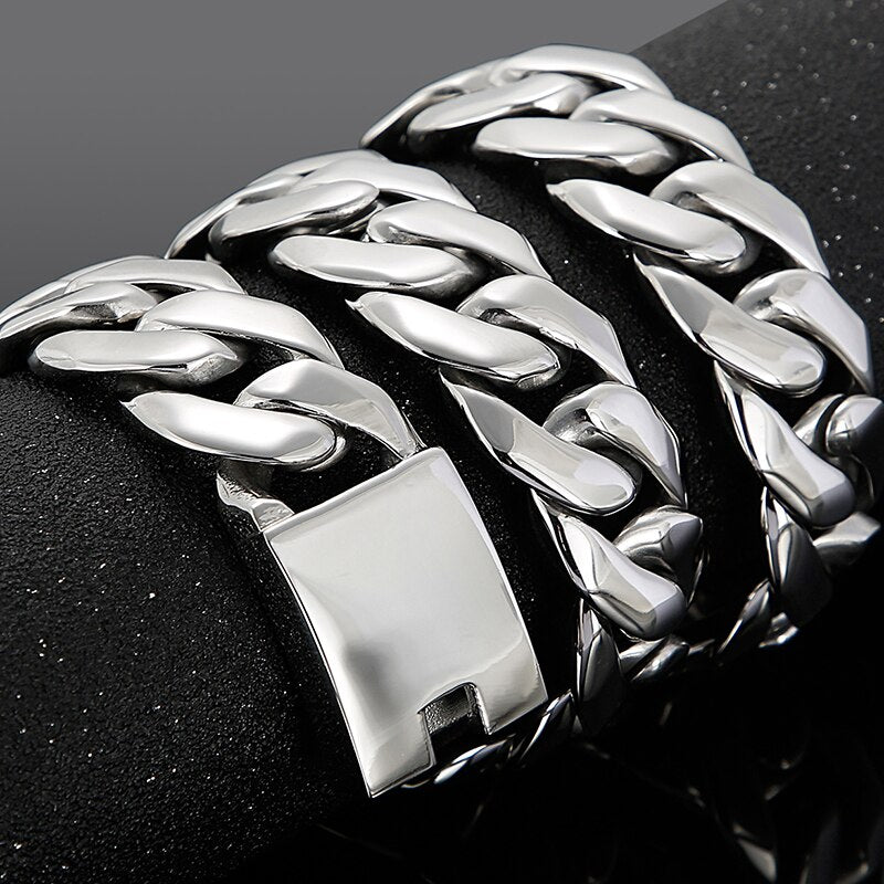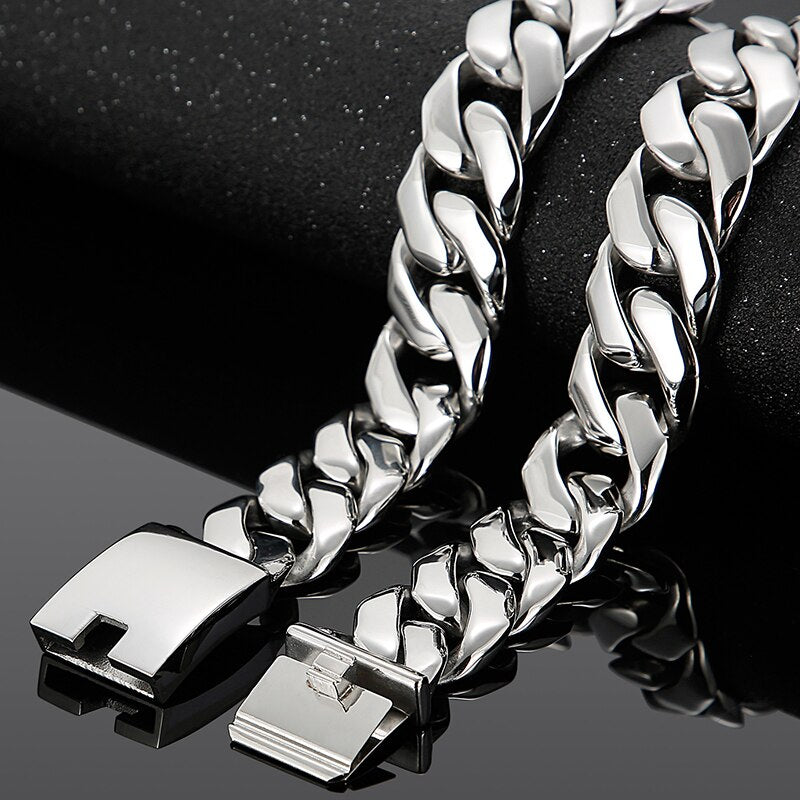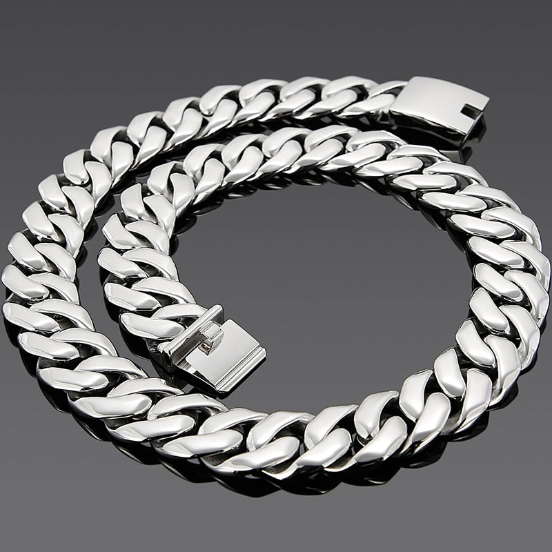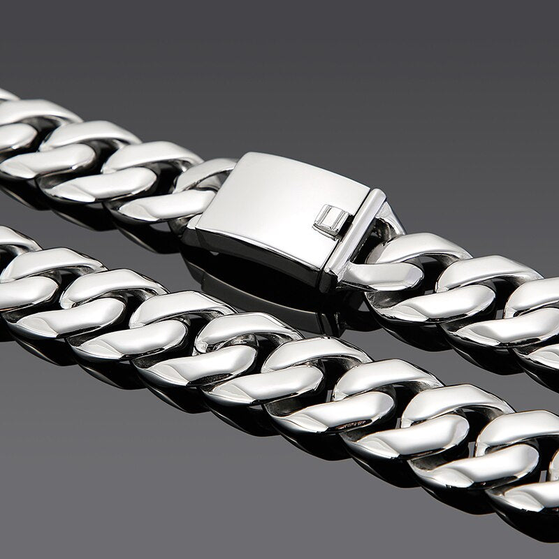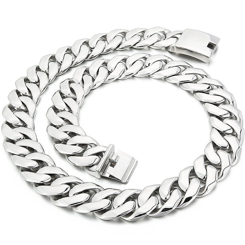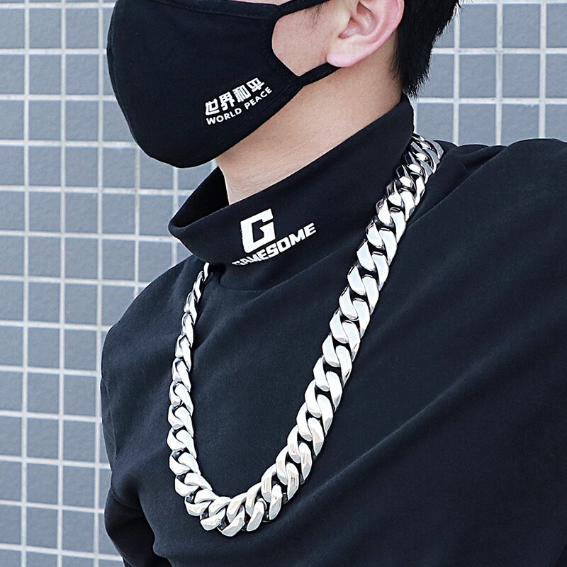 Cadena pesada de acero inoxidable de 25 mm y 27 pulgadas para hombre, color plateado, con eslabones cubanos dobles y gruesos, para hombre y niño, estilo punk.