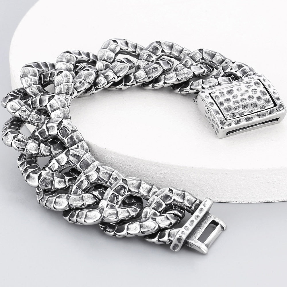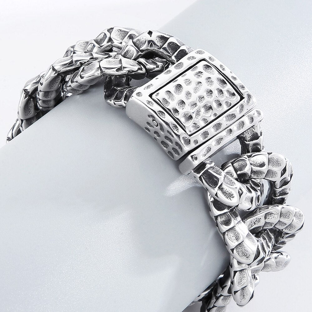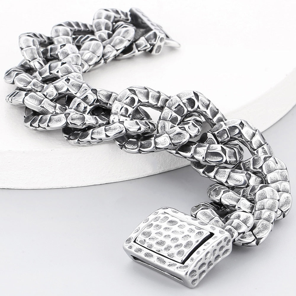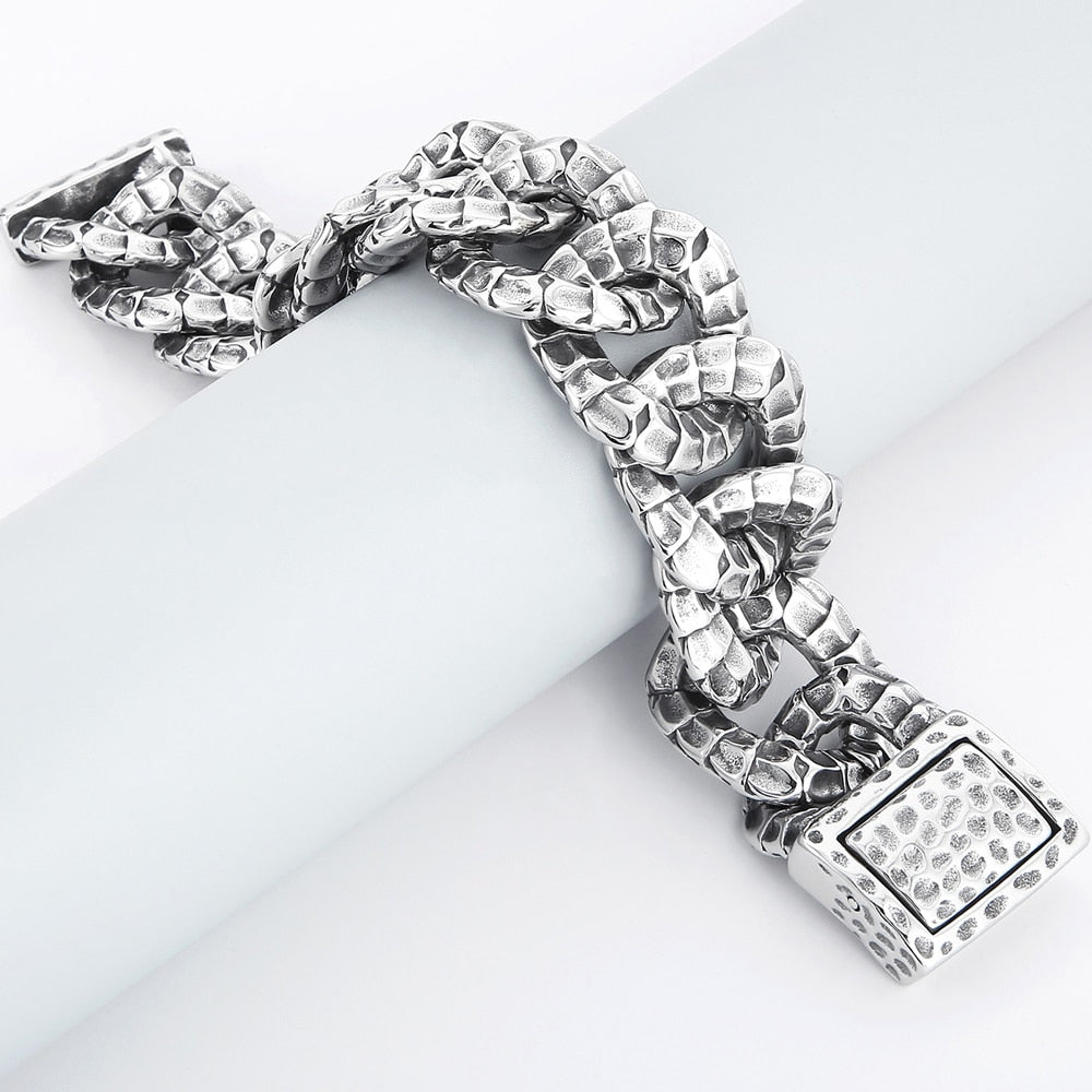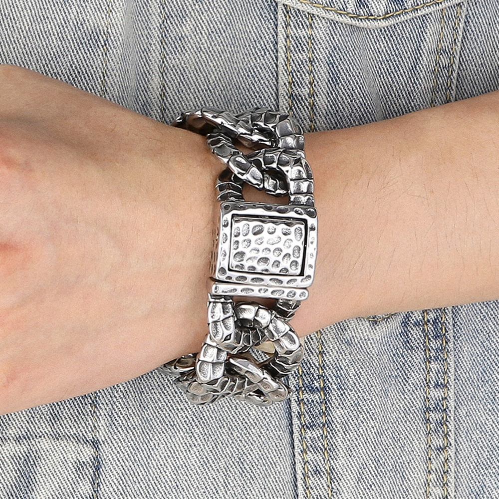 Pulsera de acero inoxidable de 30 mm de ancho con cadena cubana para hombre, con forma de serpiente, de 24 cm, estilo vintage.