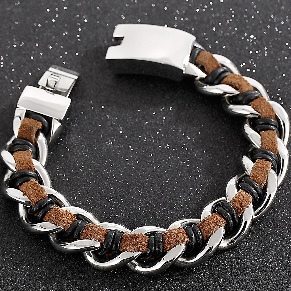 Pulsera de cuero vacuno de acero inoxidable resistente para hombre. Pulseras Leatherman.