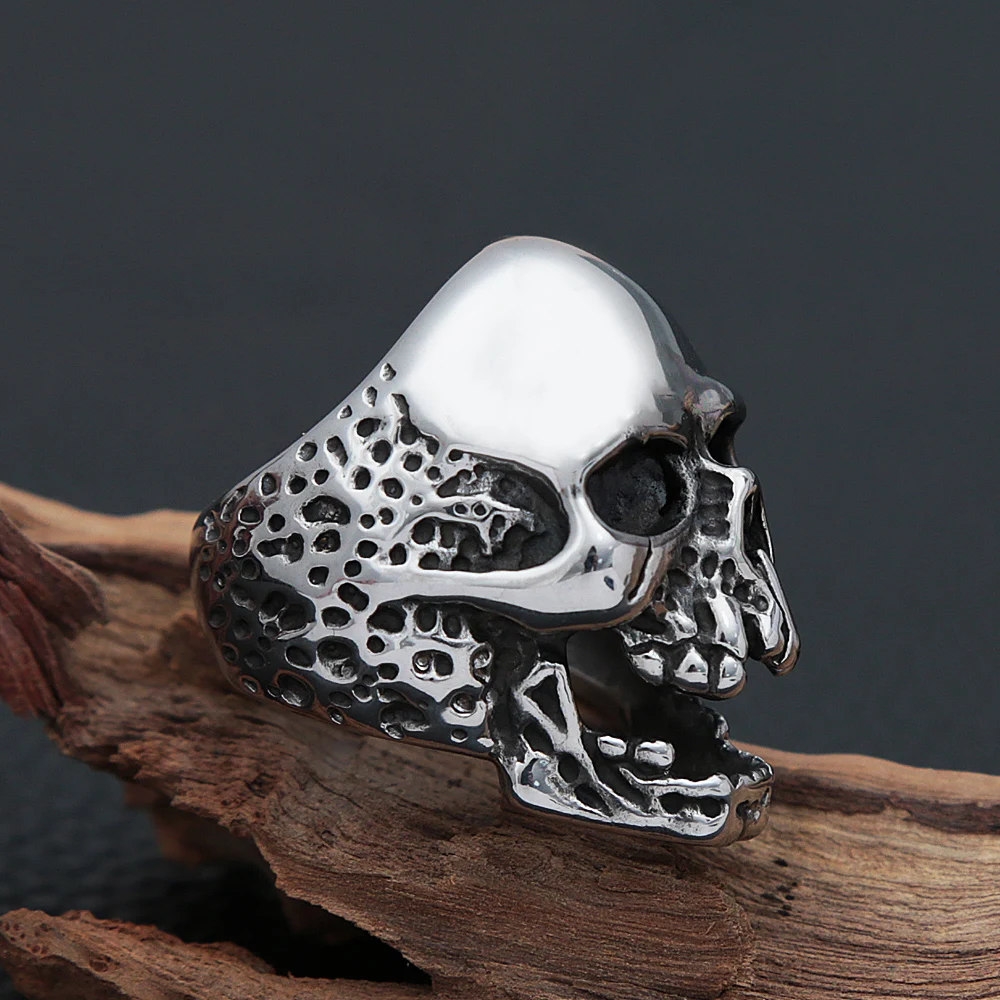 Joyería Vikinga: Anillo de calavera de acero inoxidable pulido de alta calidad para hombre, niño, gótico, metal pesado, estilo motero, joyería punk para discoteca.