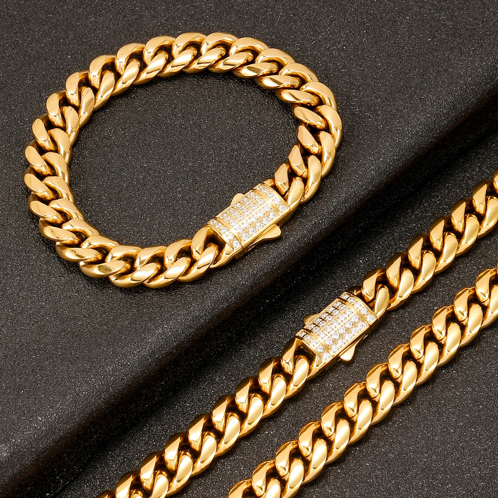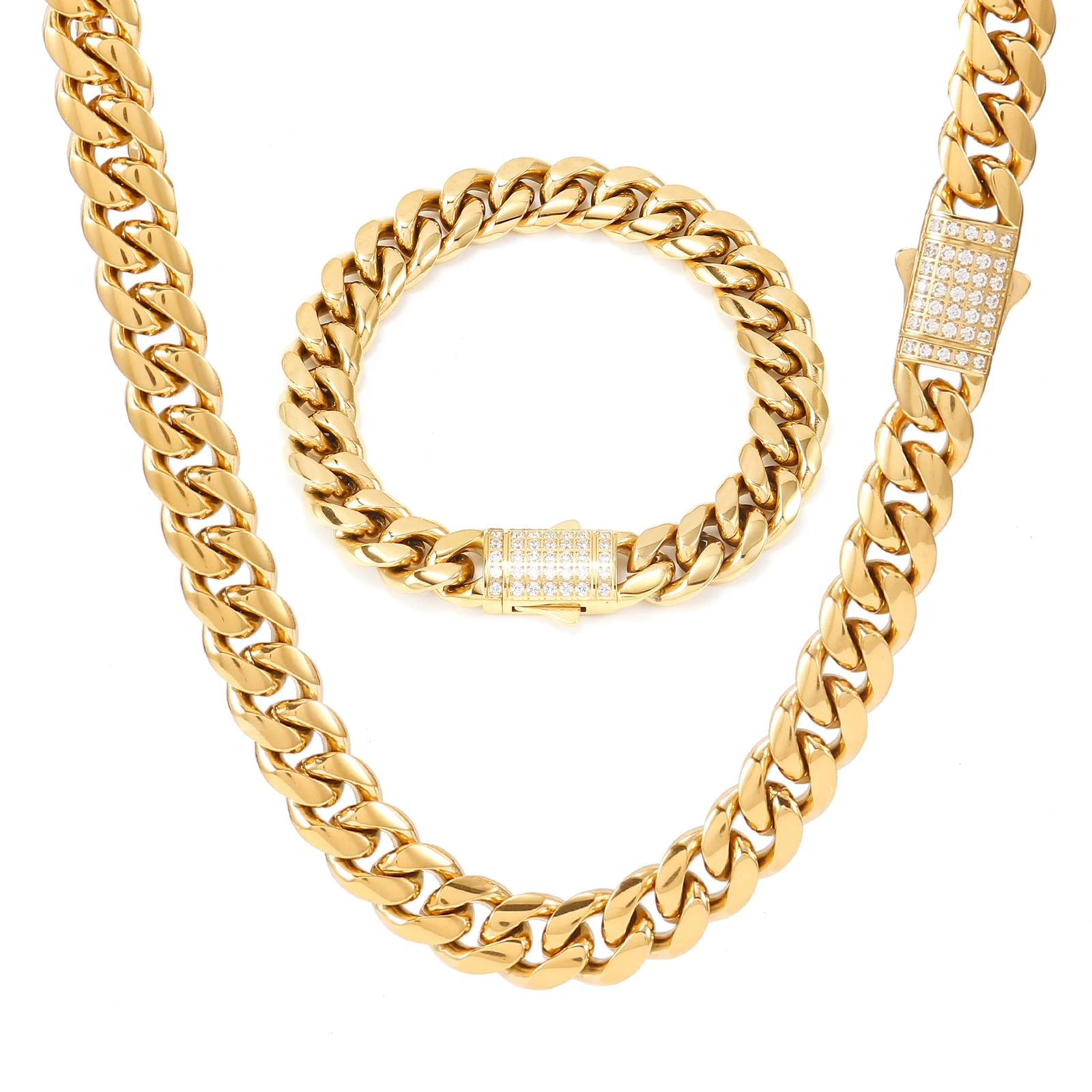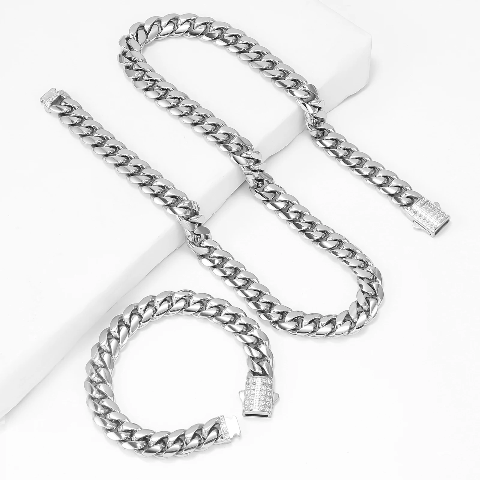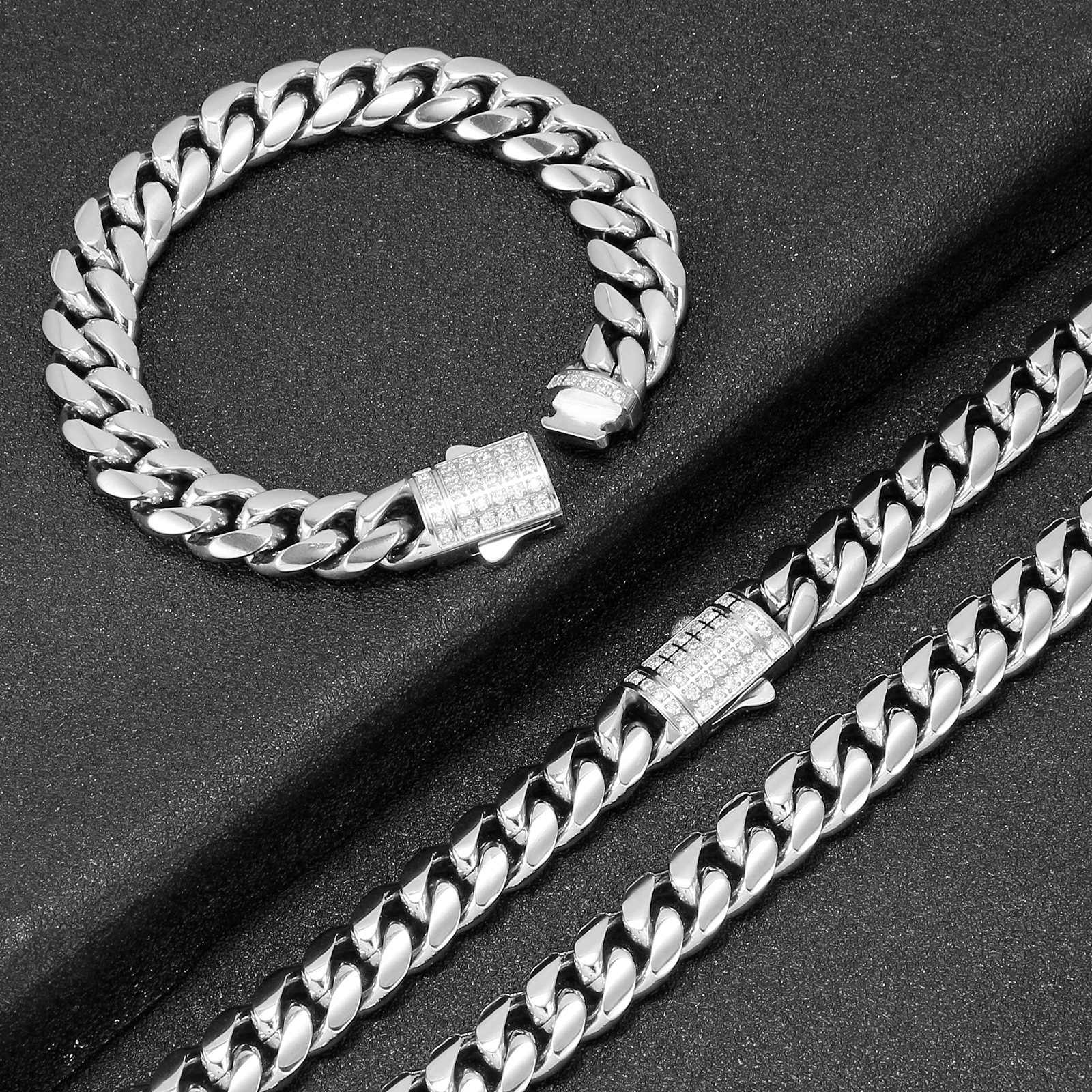 Cadena de eslabones cubanos Miami Curb de hip-hop para hombres y mujeres, collar de diamantes de acero inoxidable, pulsera de moda, accesorios de joyería