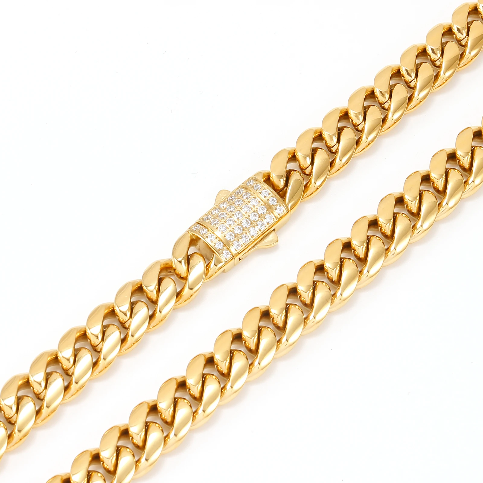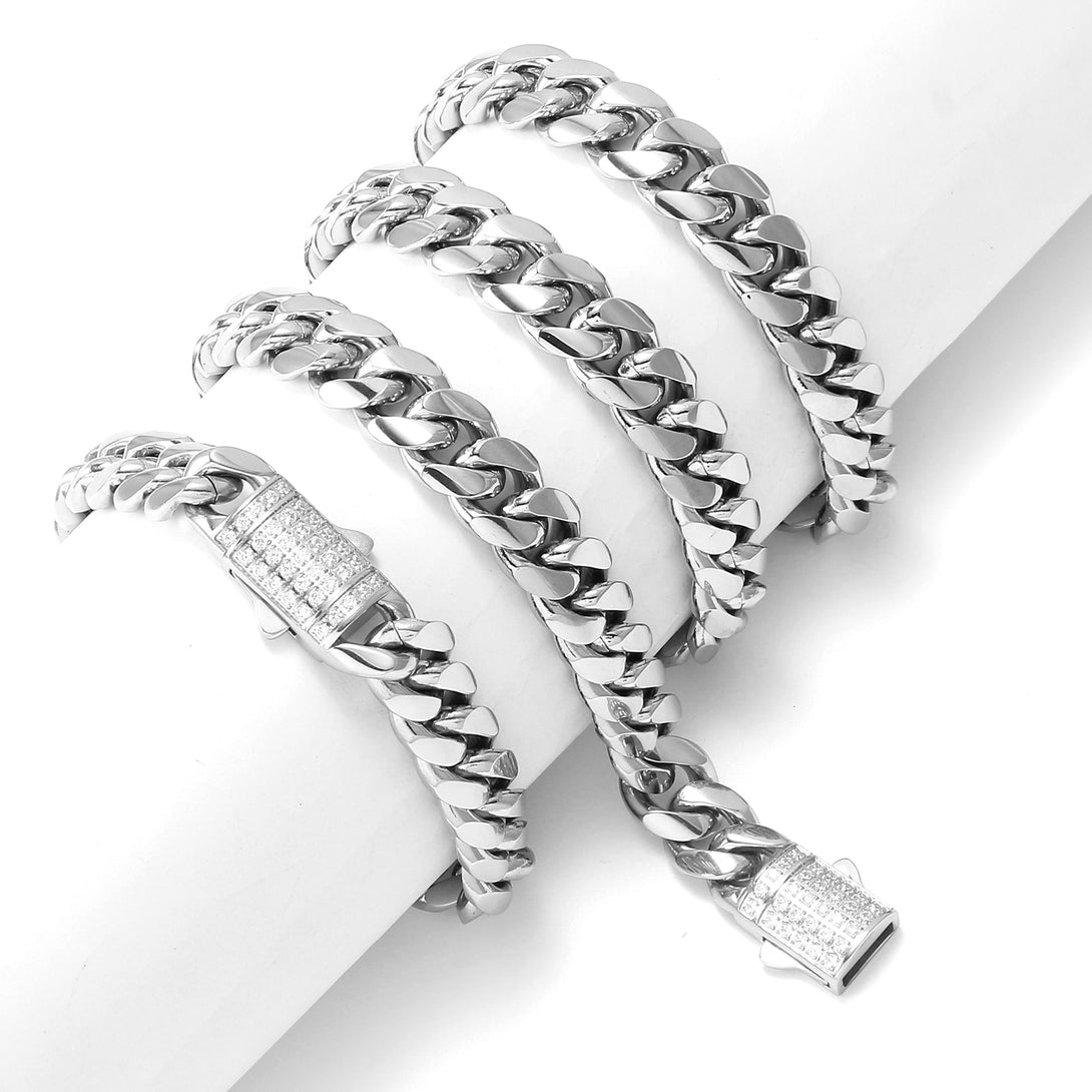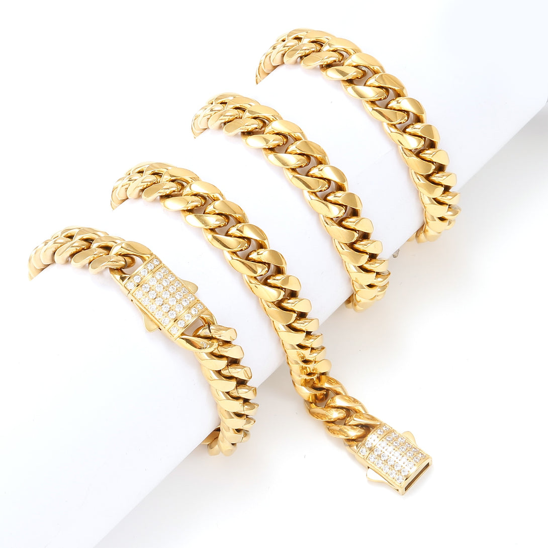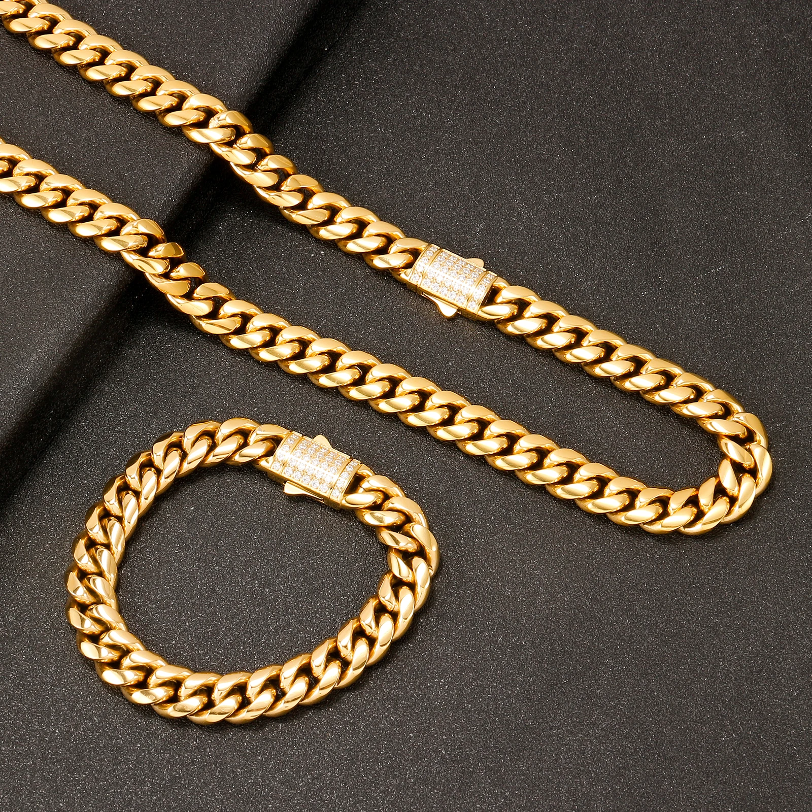Cadena de eslabones cubanos Miami Curb de hip-hop para hombres y mujeres, collar de diamantes de acero inoxidable, pulsera de moda, accesorios de joyería