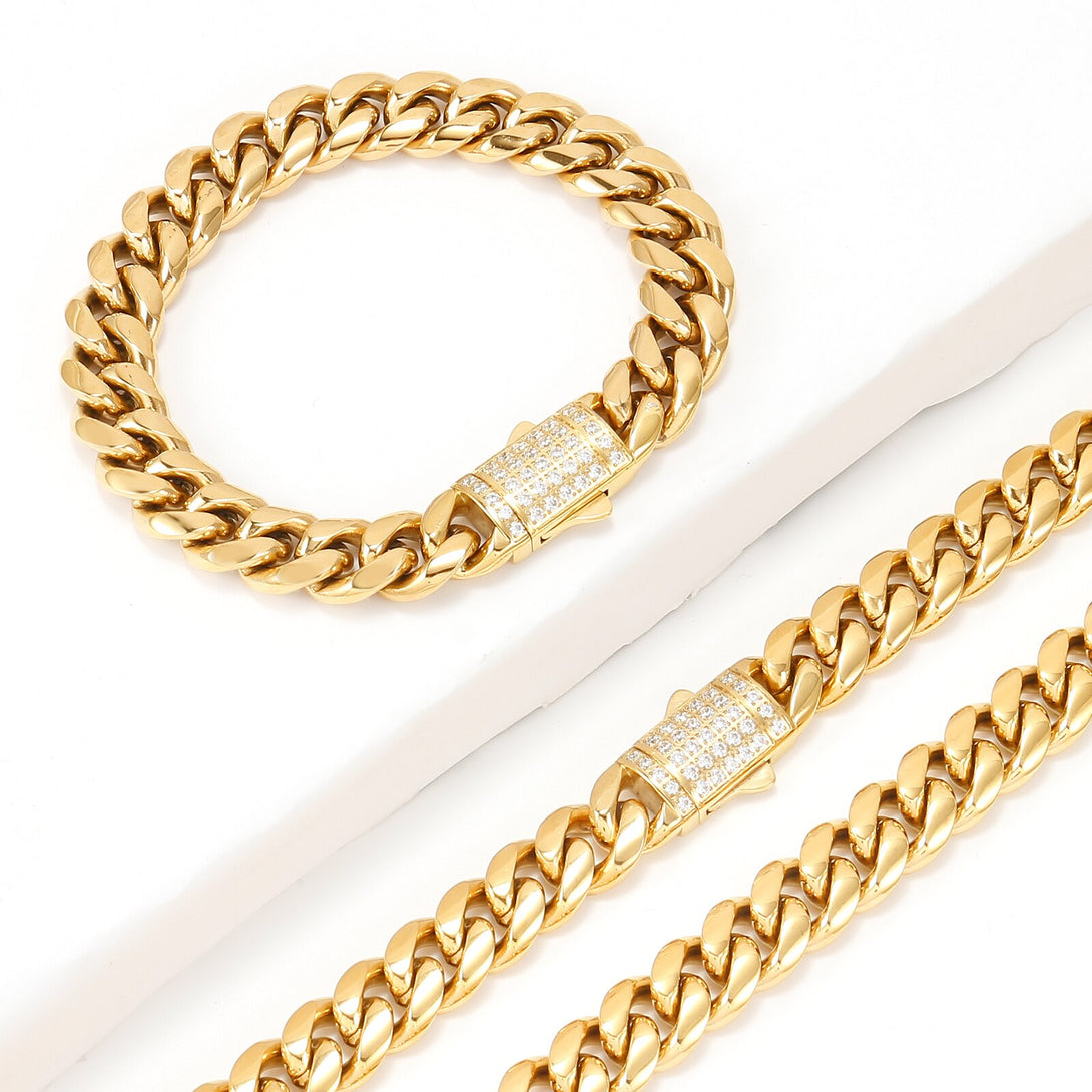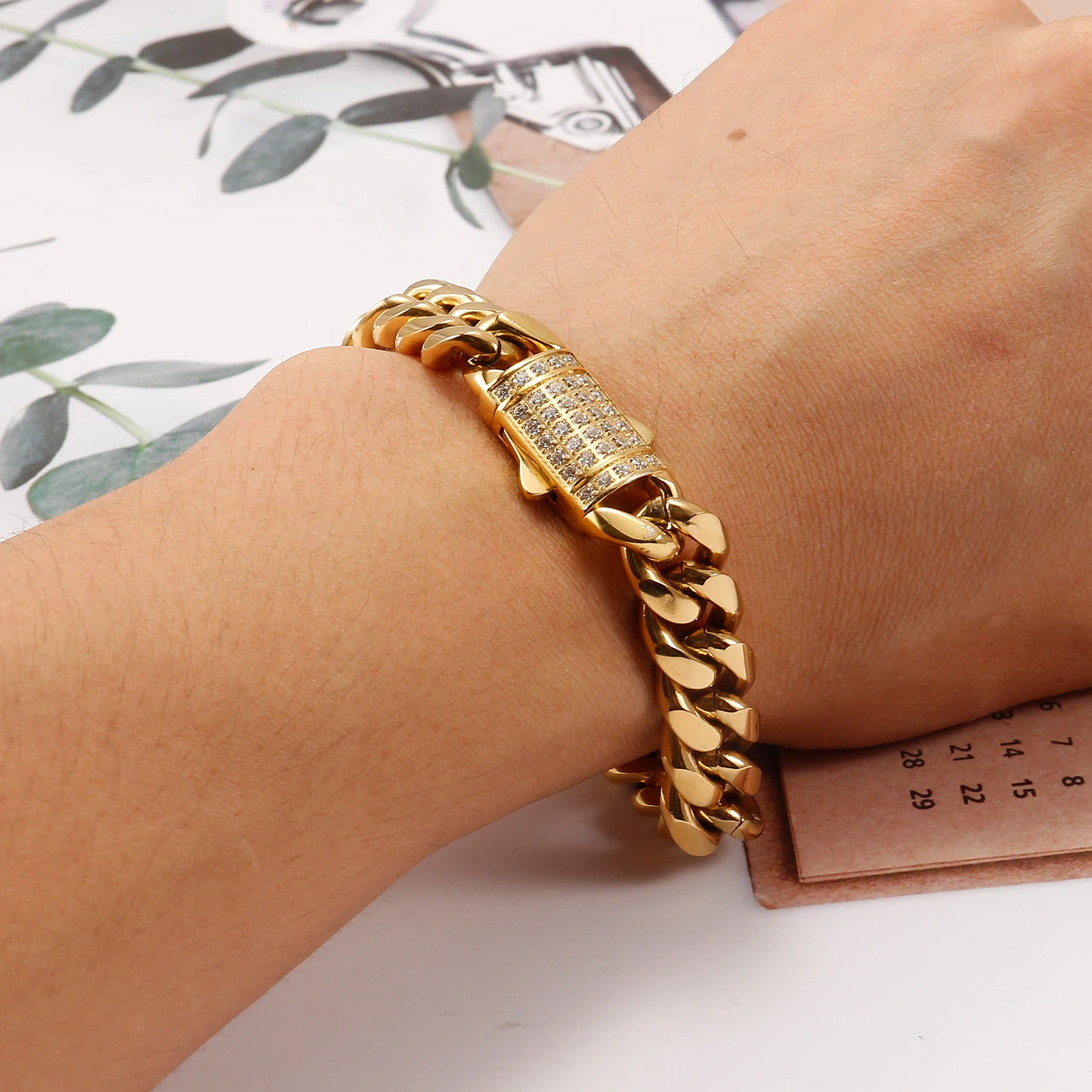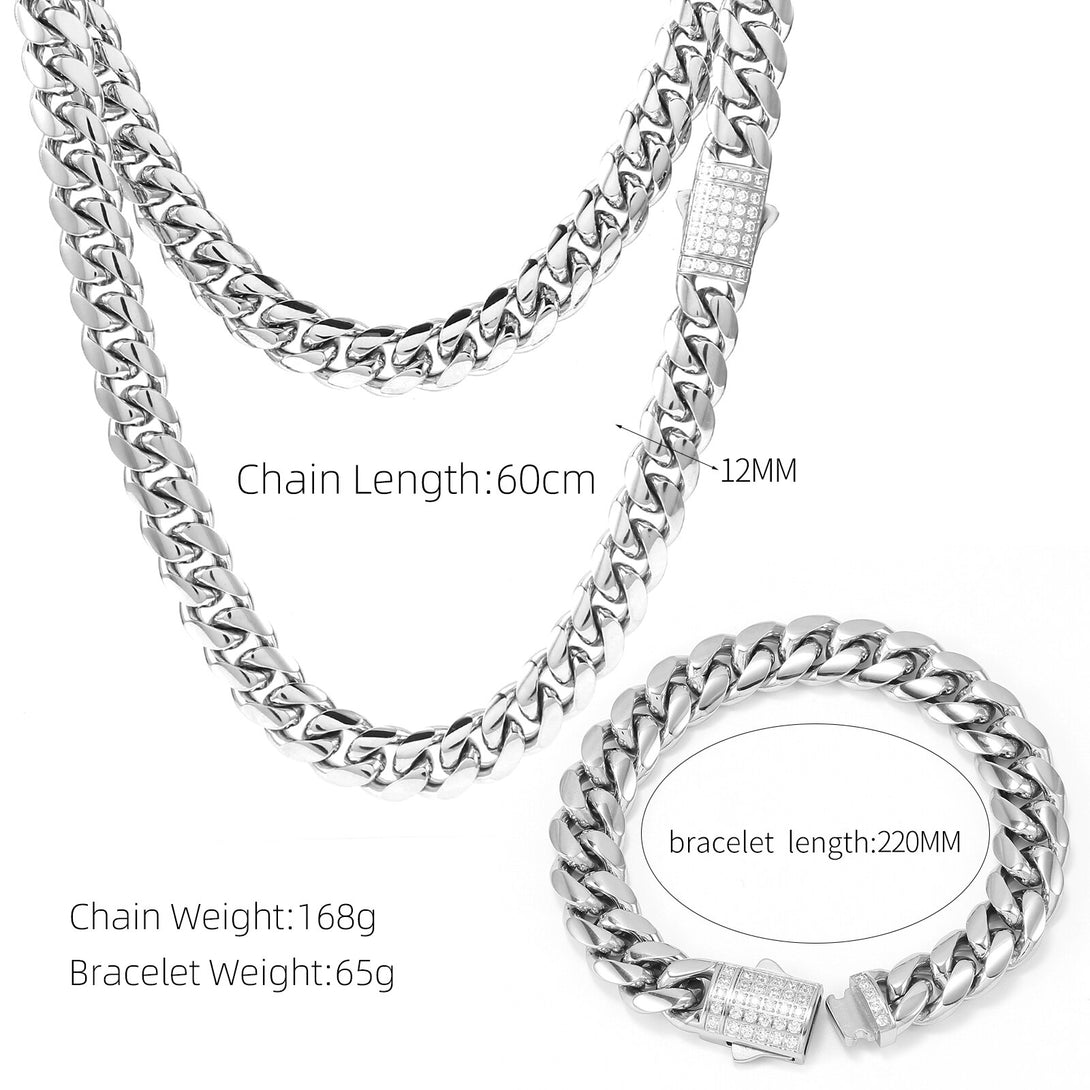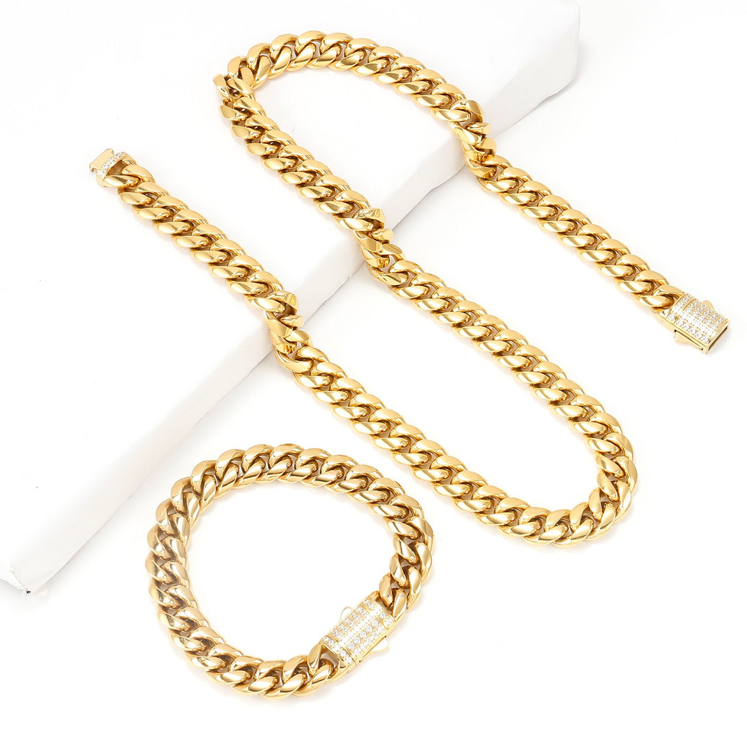 Cadena de eslabones cubanos Miami Curb de hip-hop para hombres y mujeres, collar de diamantes de acero inoxidable, pulsera de moda, accesorios de joyería