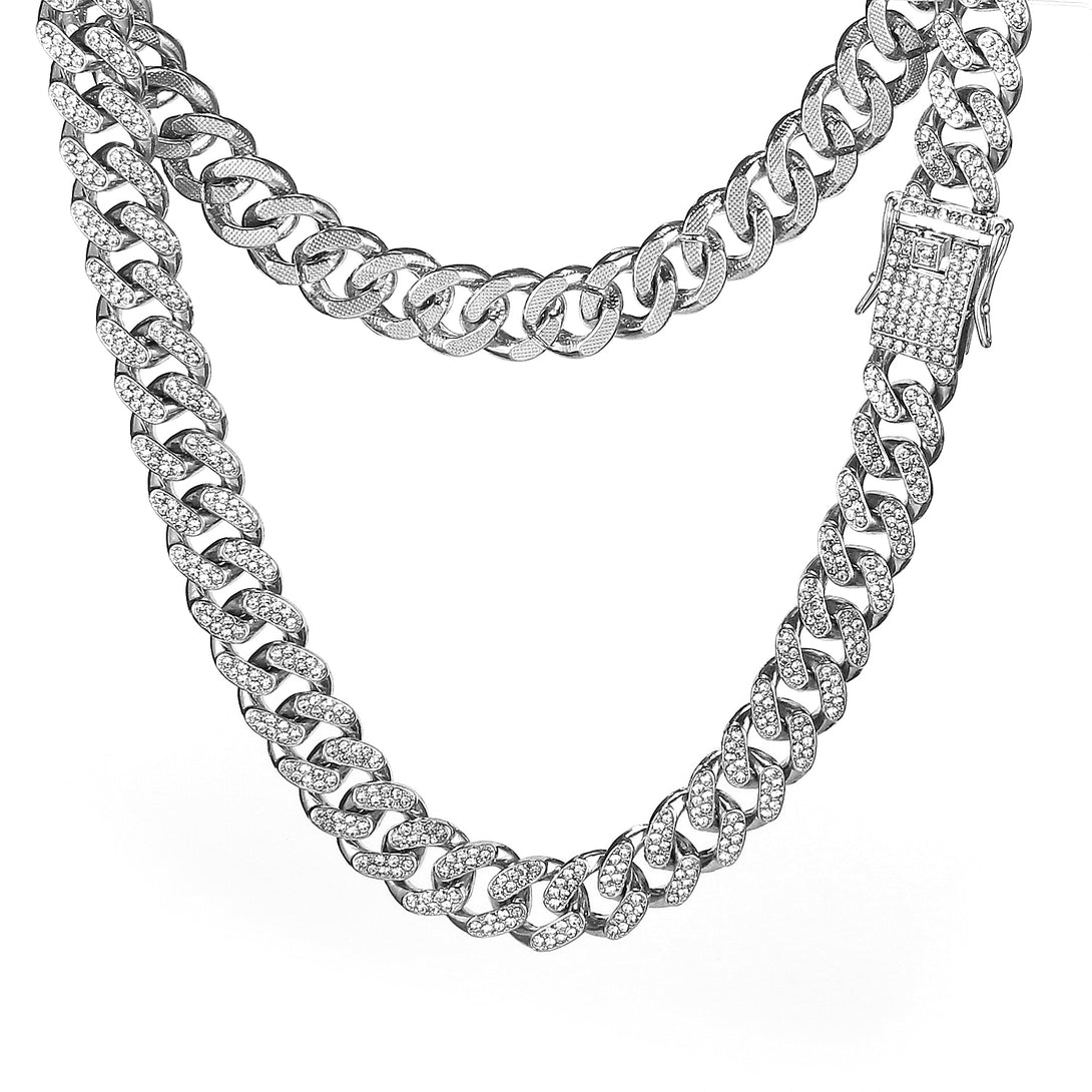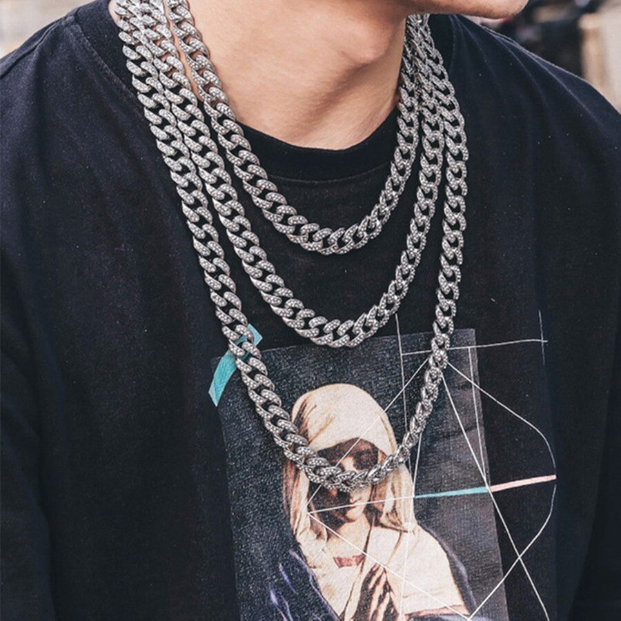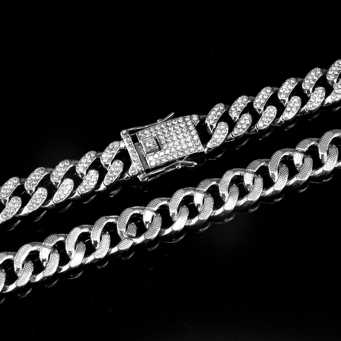 Collares de hip hop con diamantes de imitación pavimentados y estrás, cadena cubana Miami de 13 mm, con circonitas brillantes, joyería de rapero para hombres